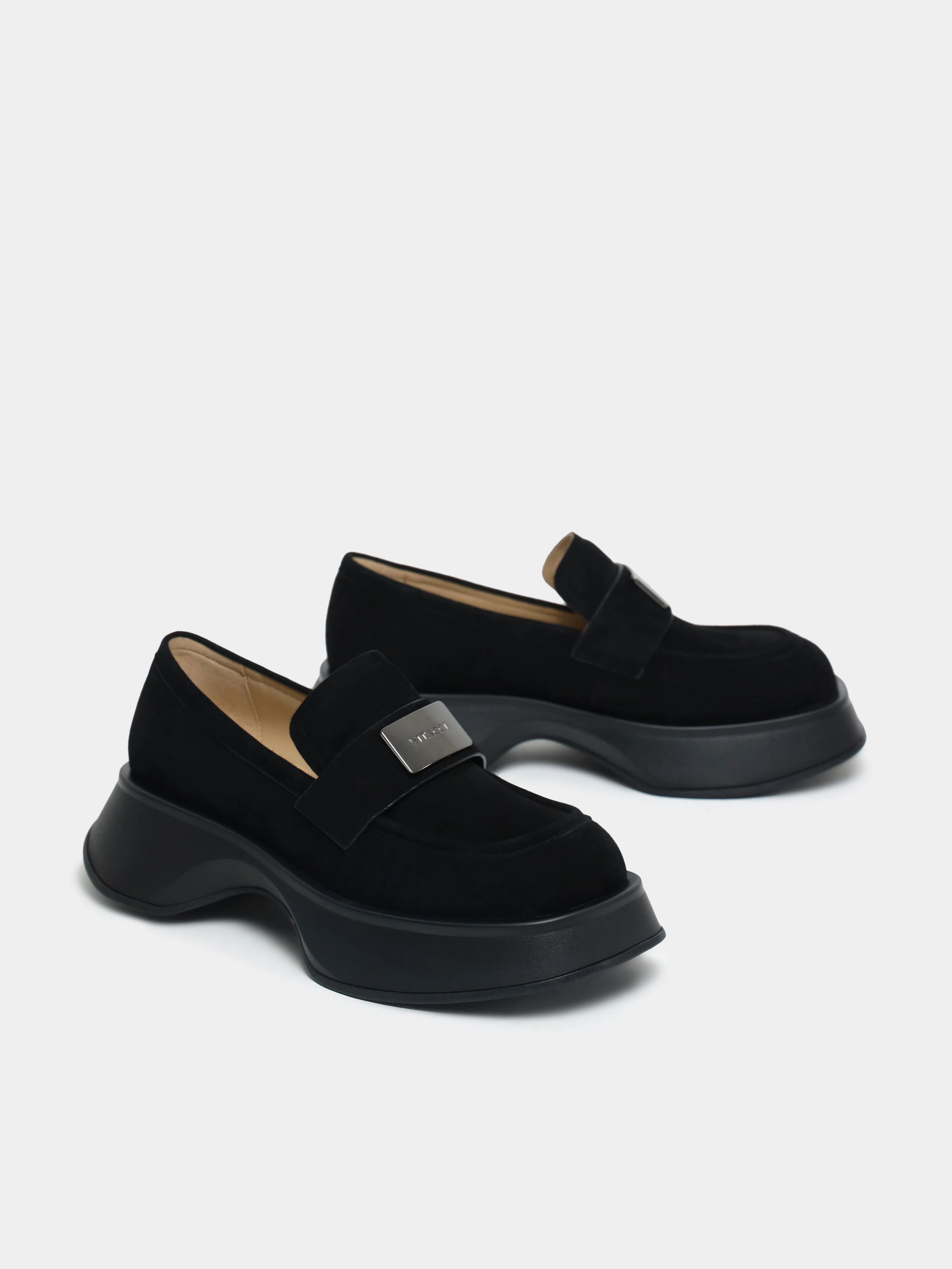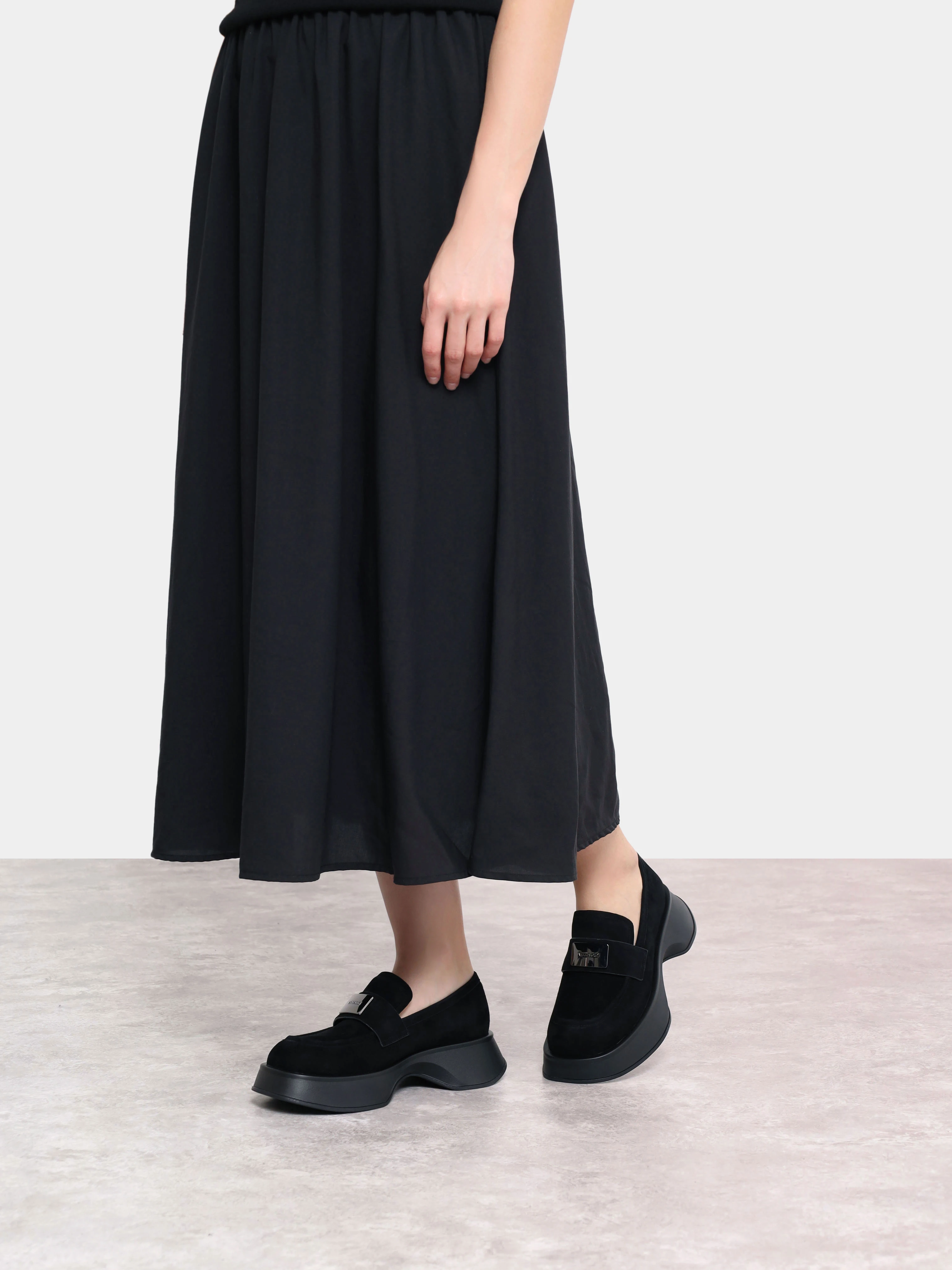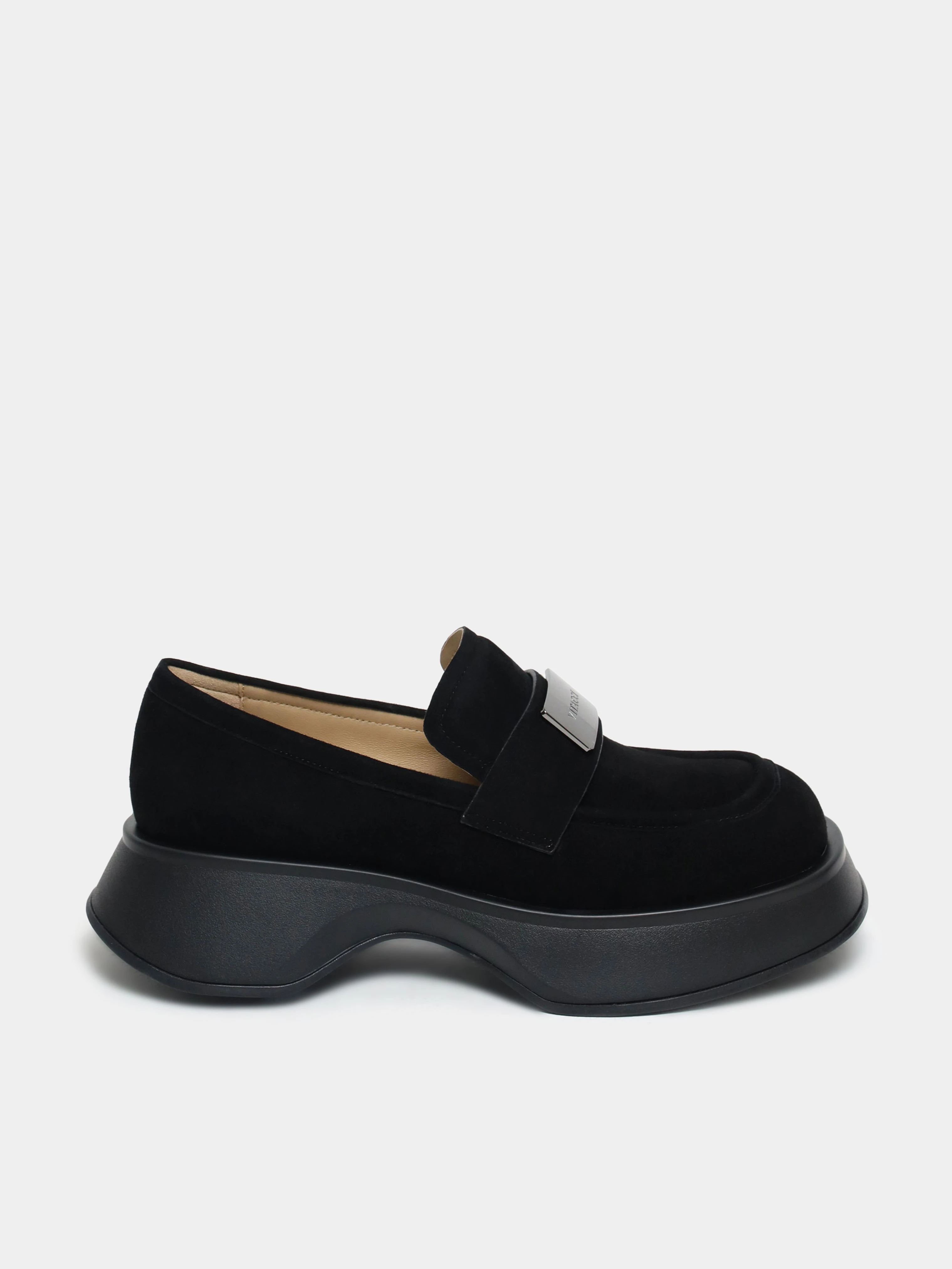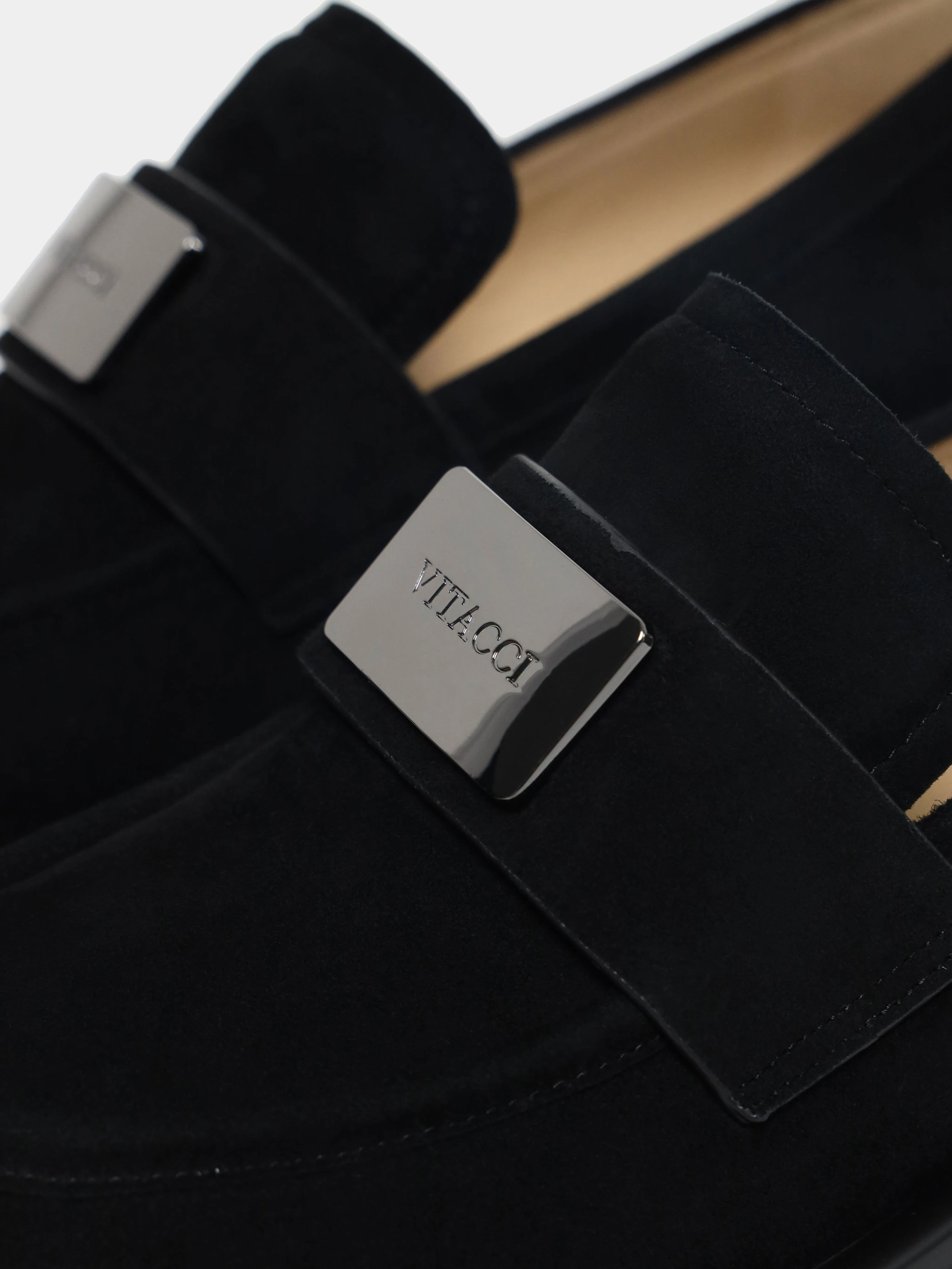 Лоферы женские всесезонные, цвет черный, натуральный велюр