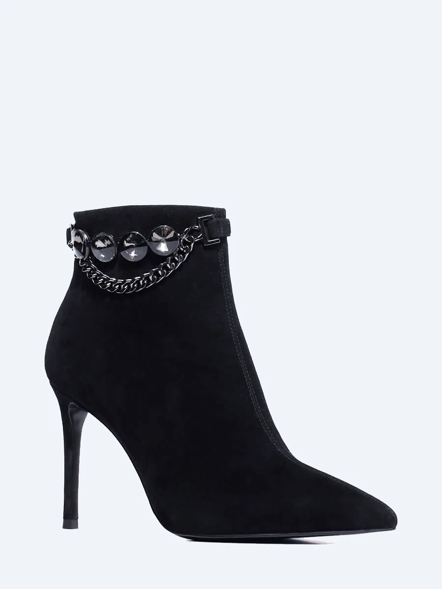 Ботильоны женские демисезонные, цвет черный, натуральный велюр