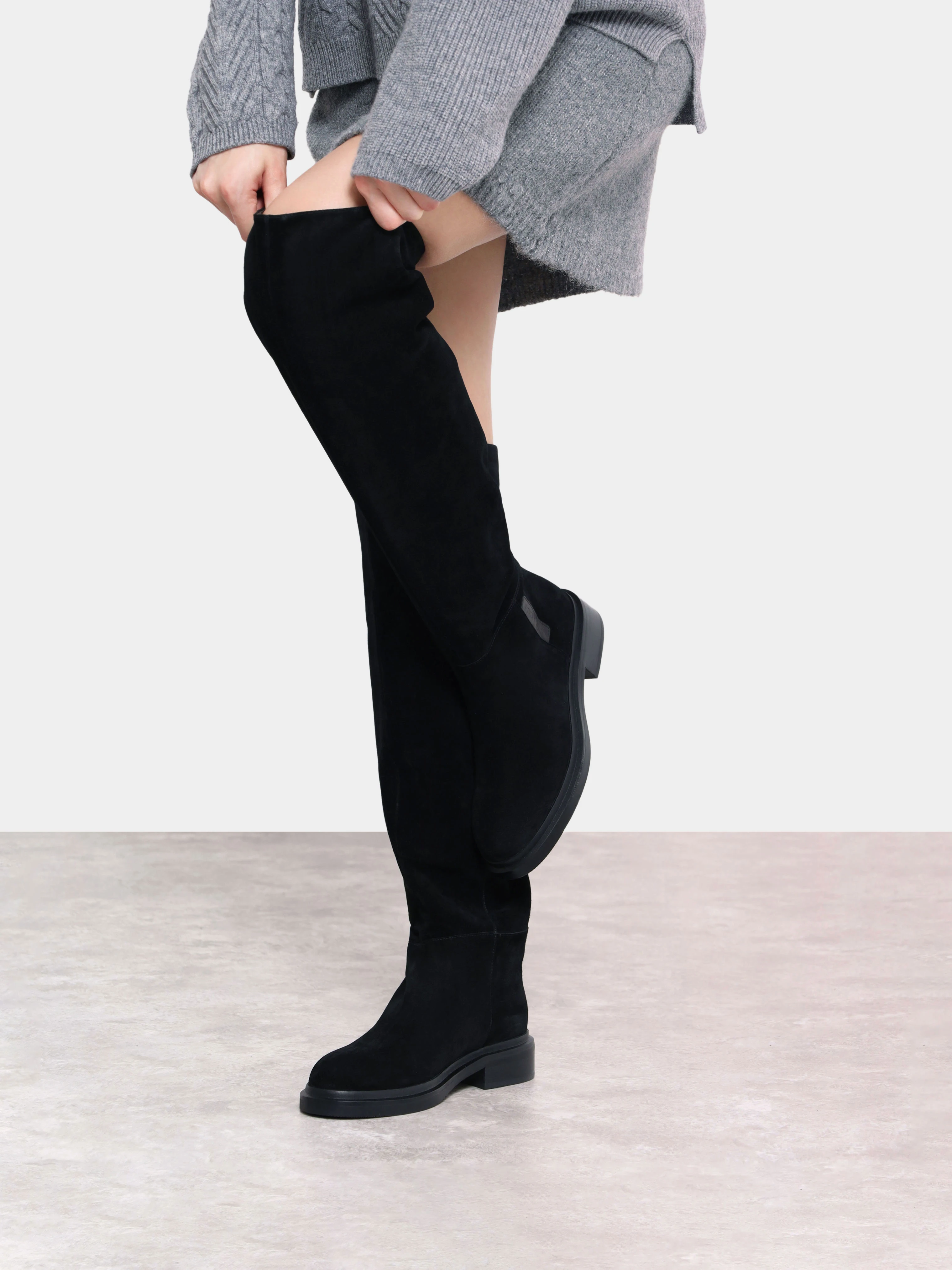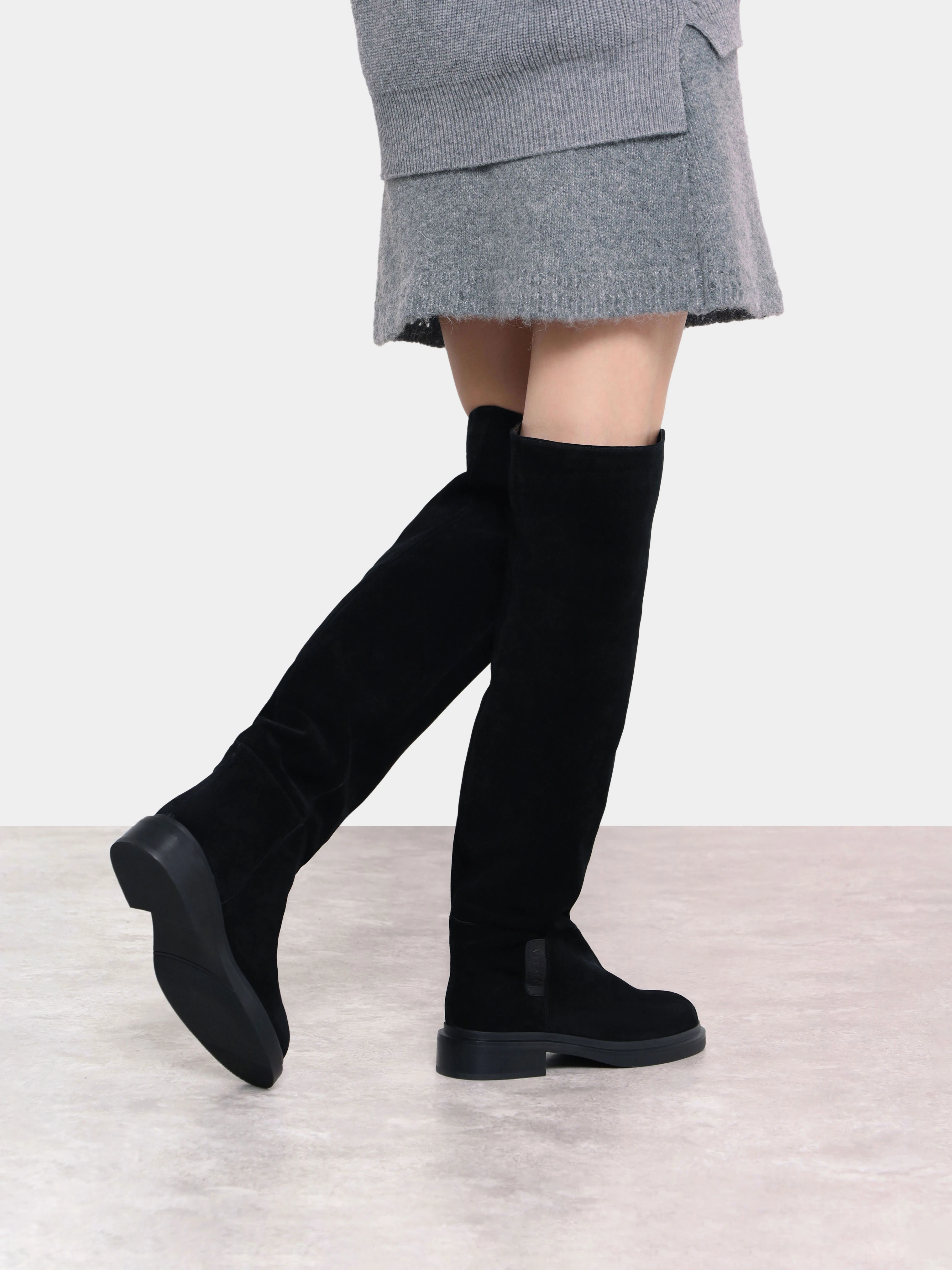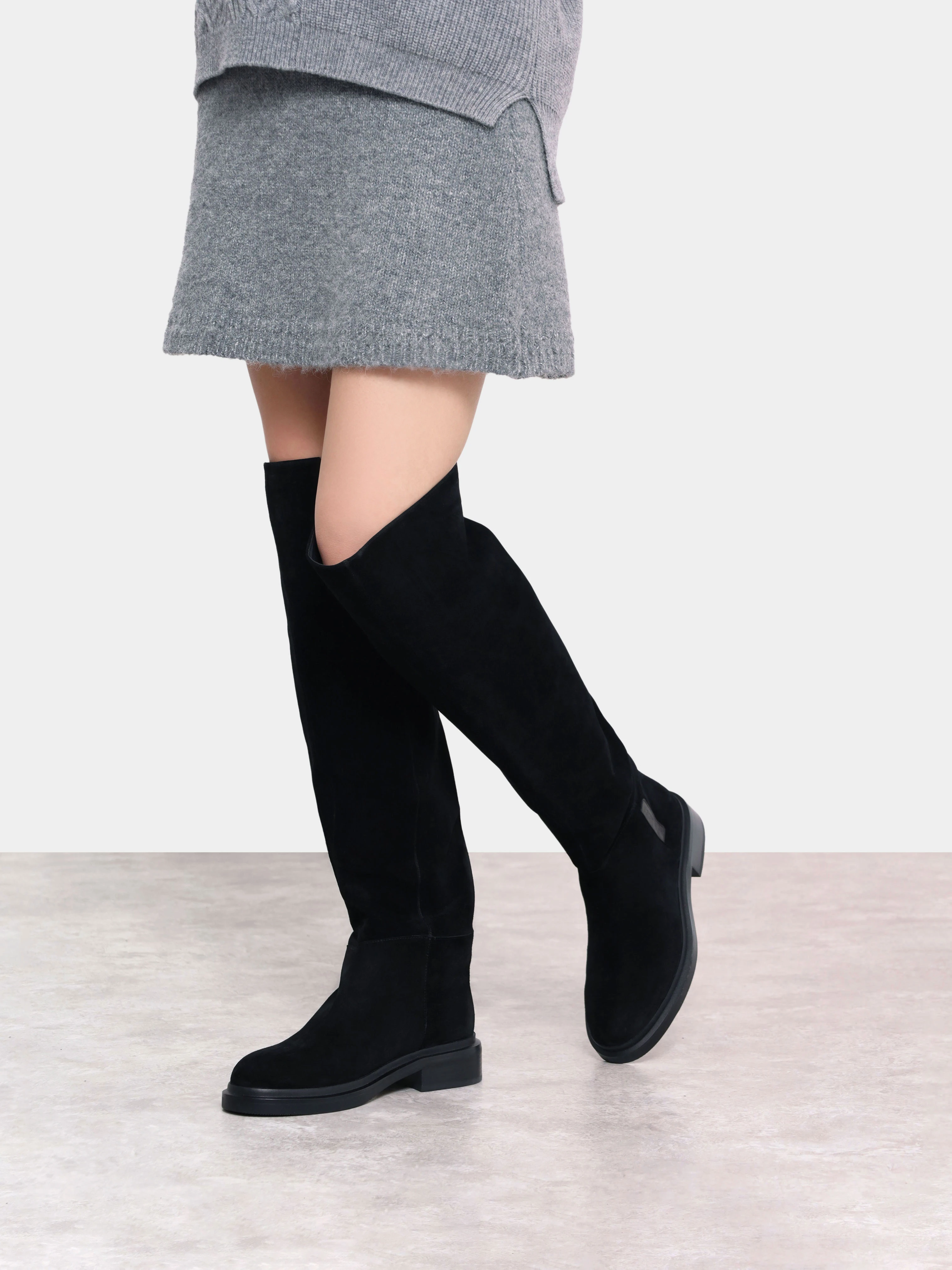 Ботфорты женские демисезонные, цвет черный, натуральный спилок