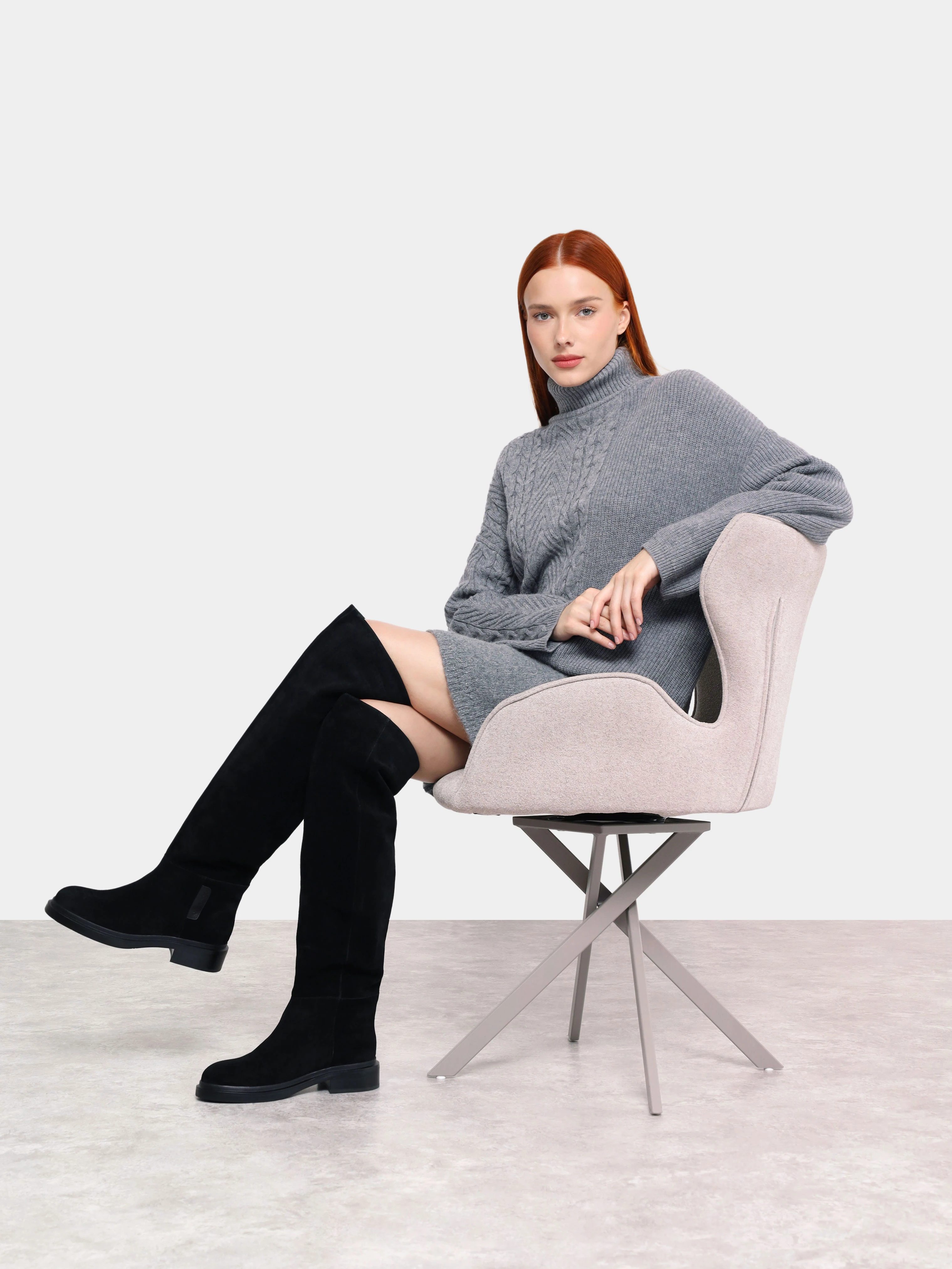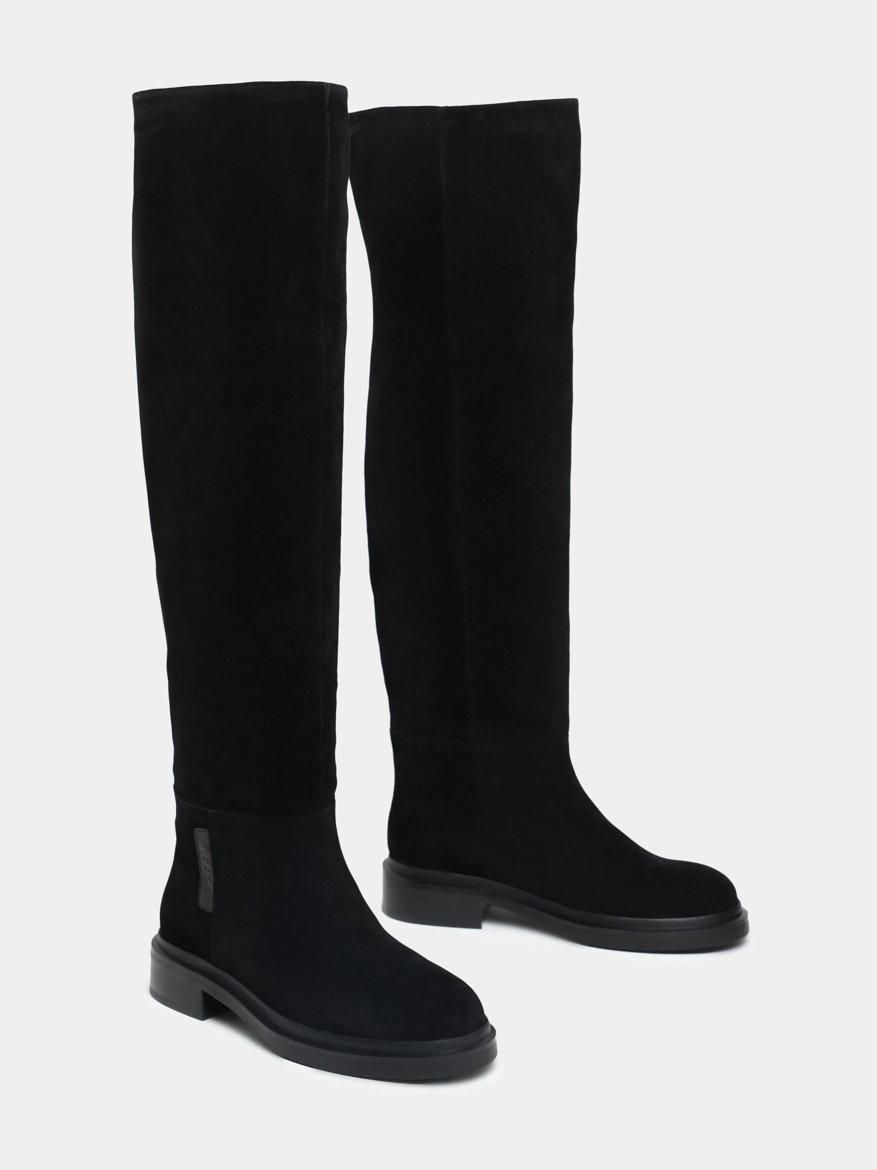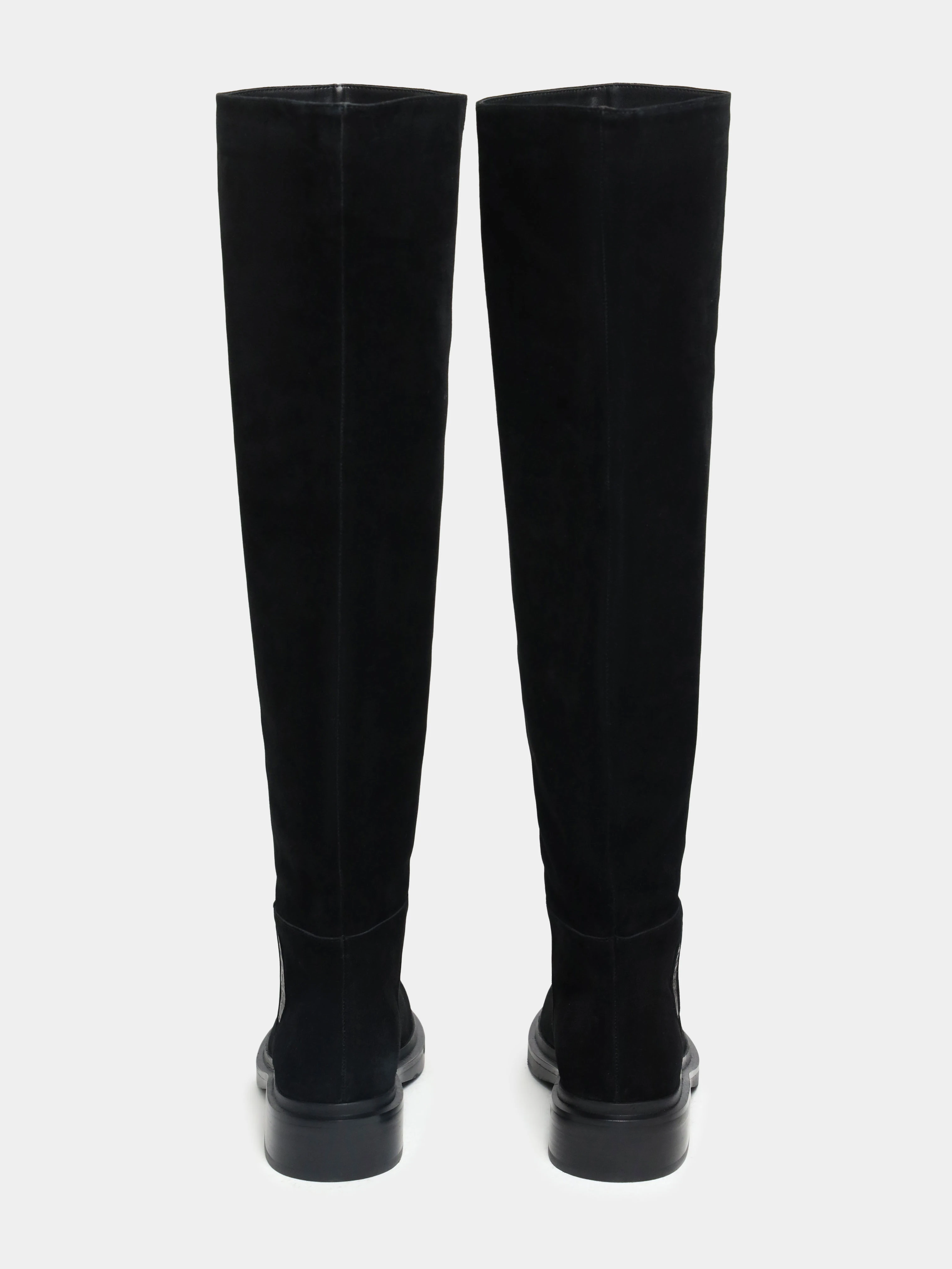 Ботфорты женские демисезонные, цвет черный, натуральный спилок