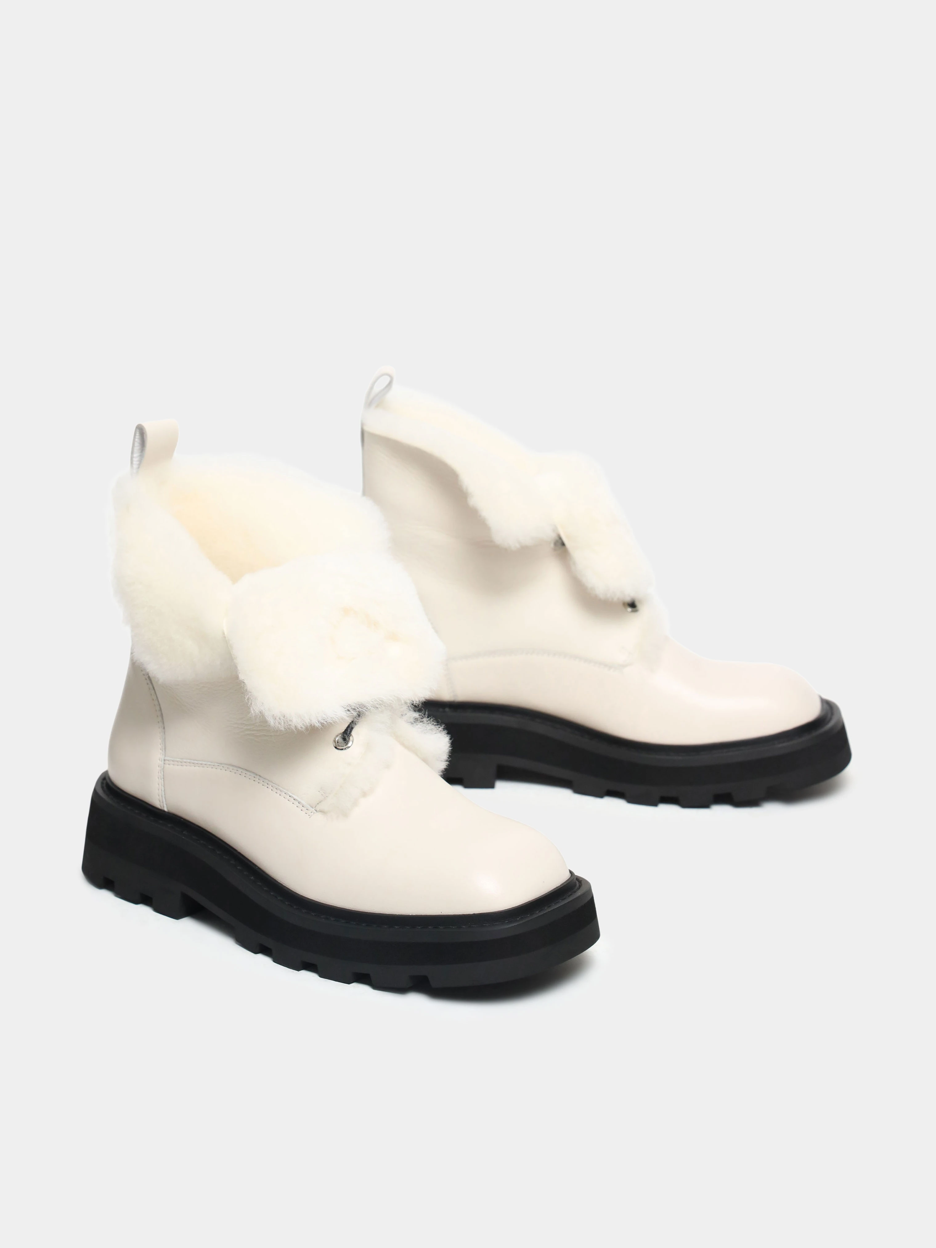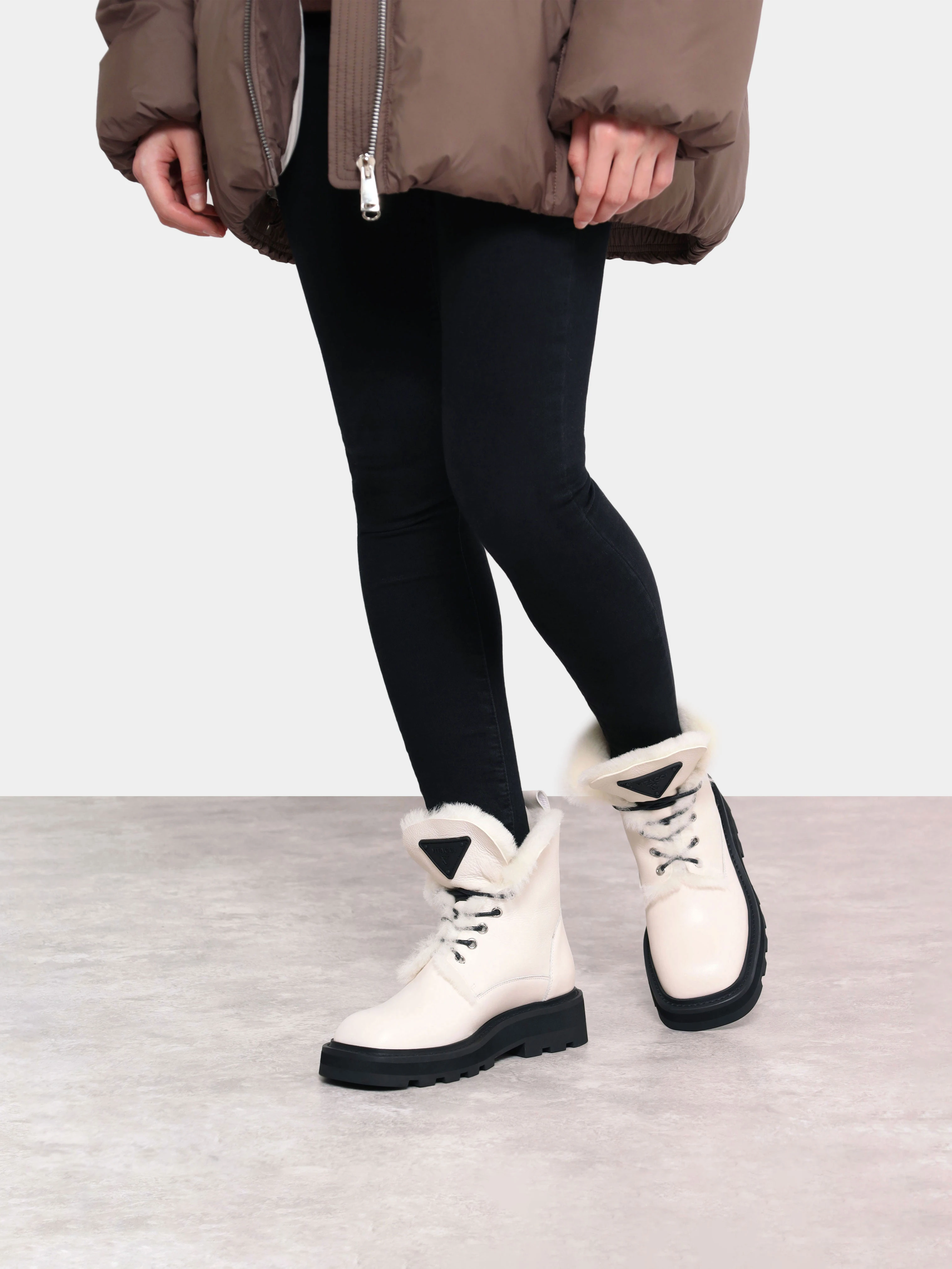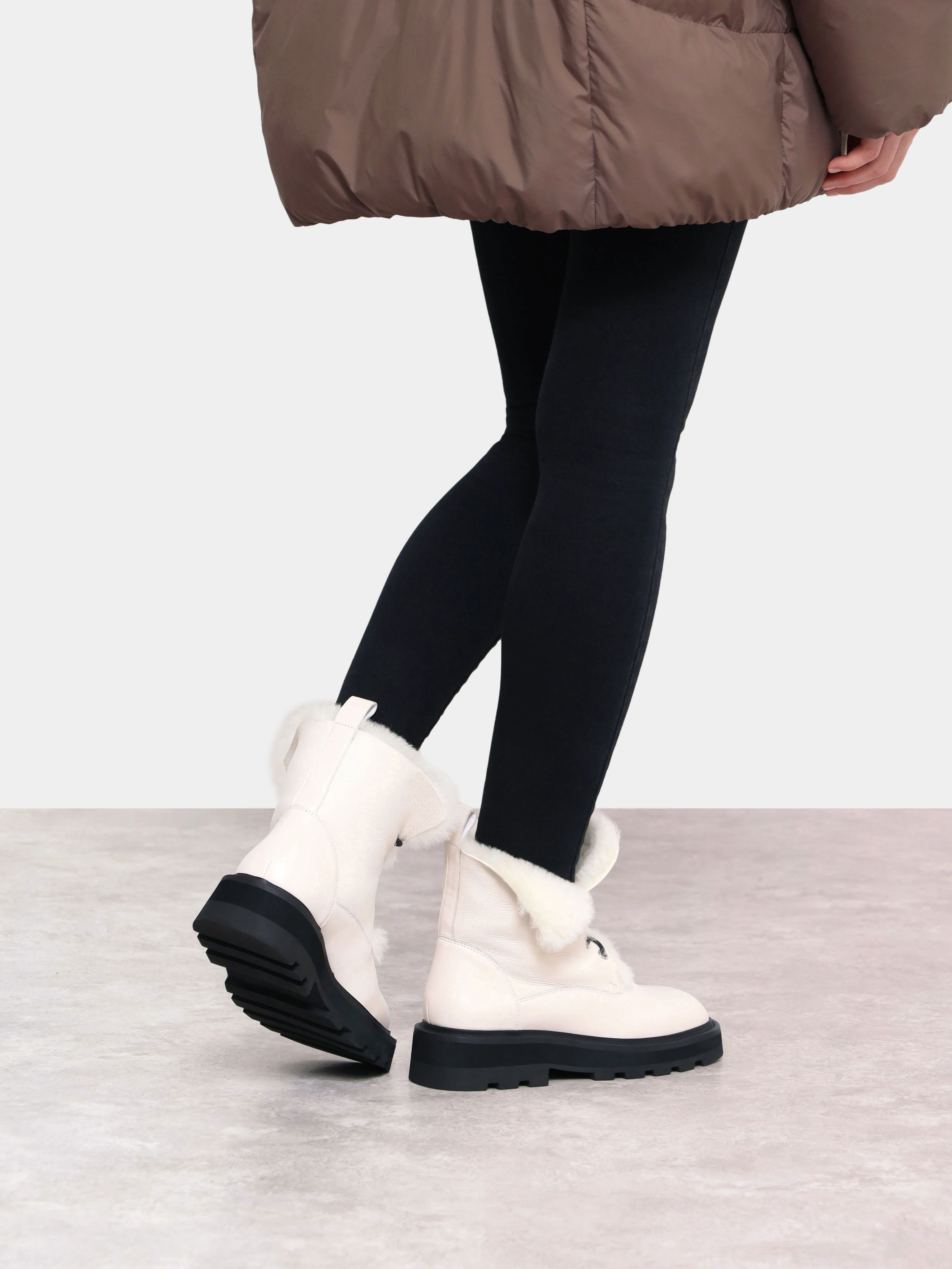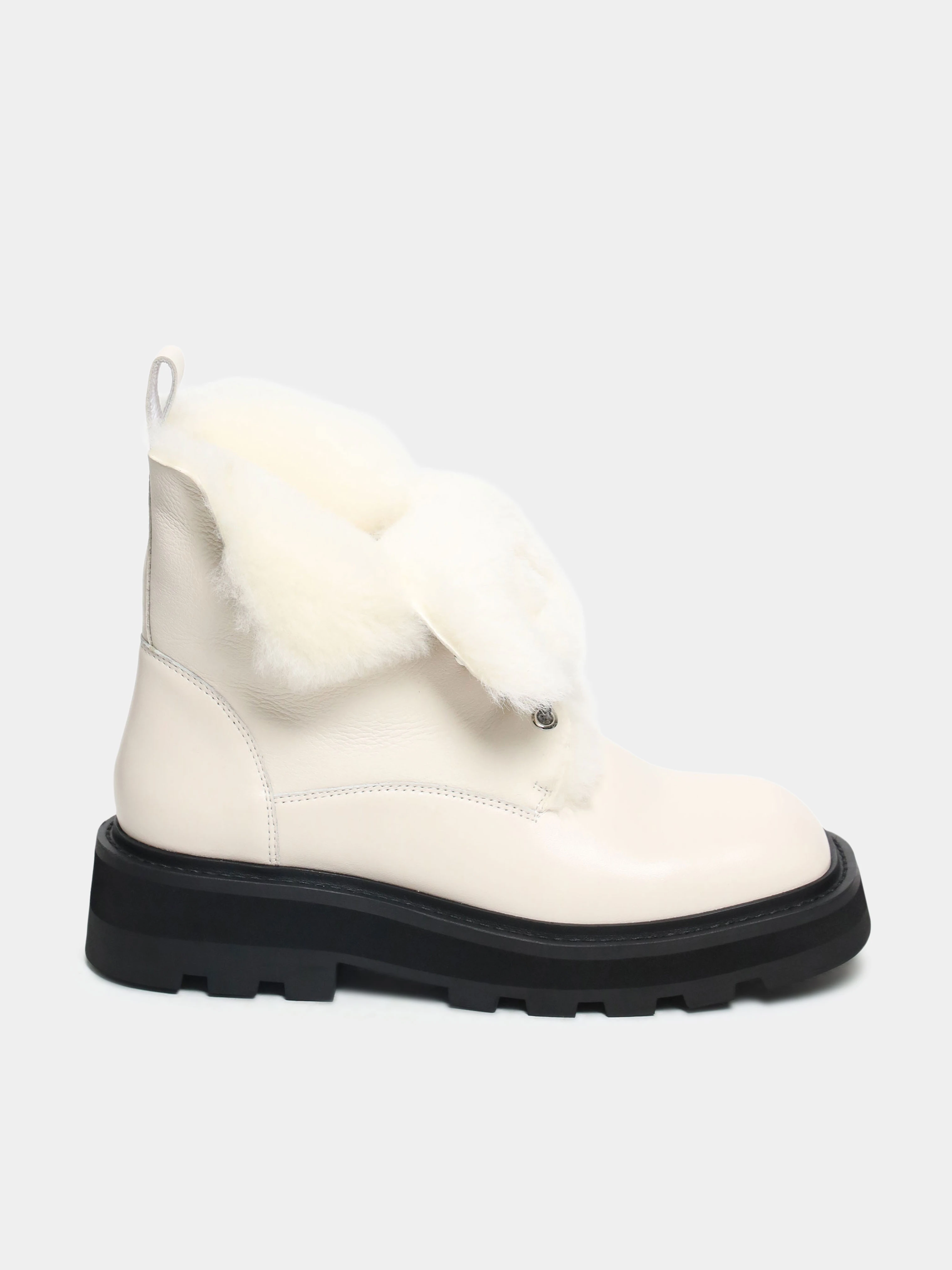 Ботинки женские зимние, цвет молочный, натуральная кожа