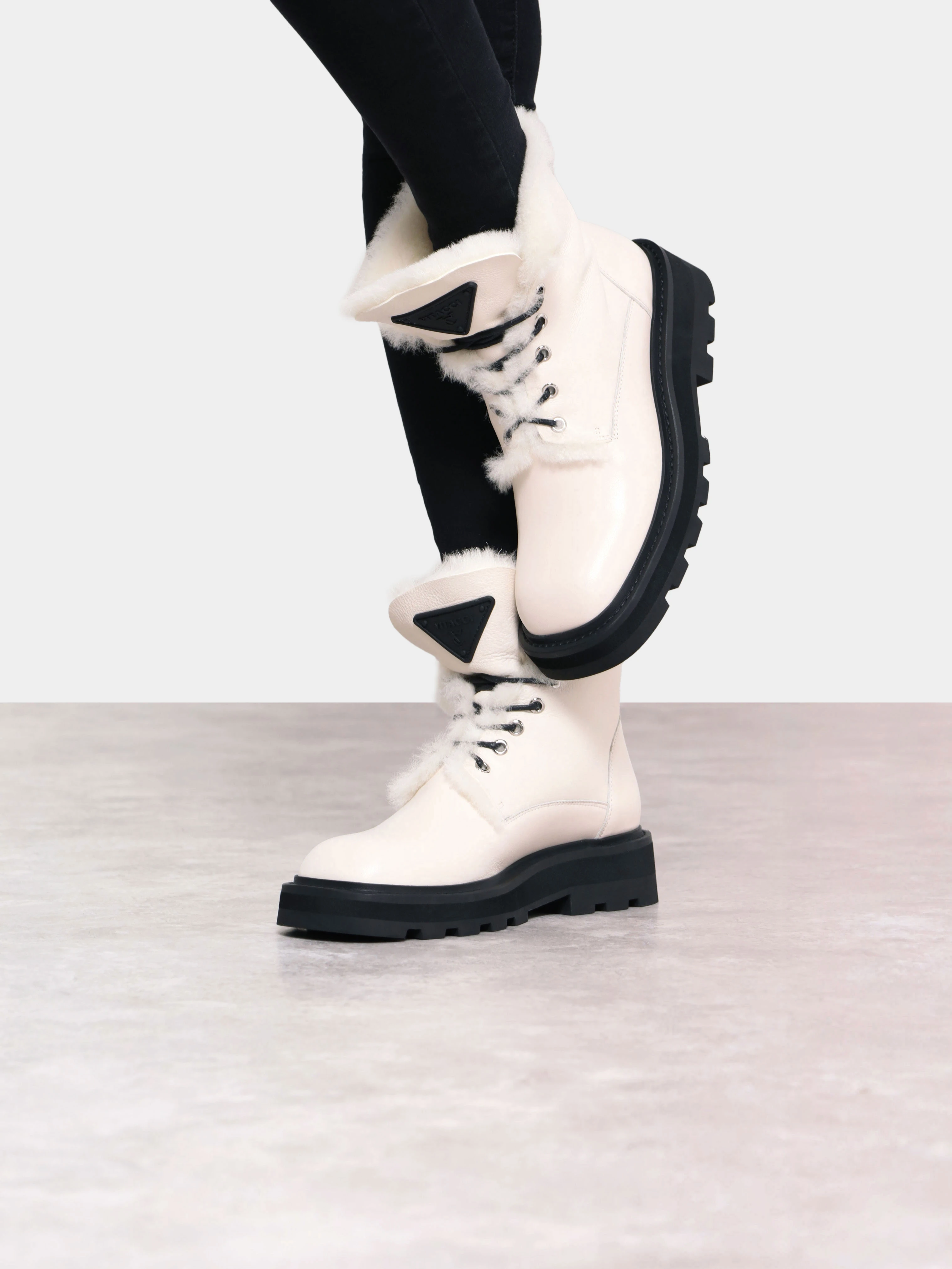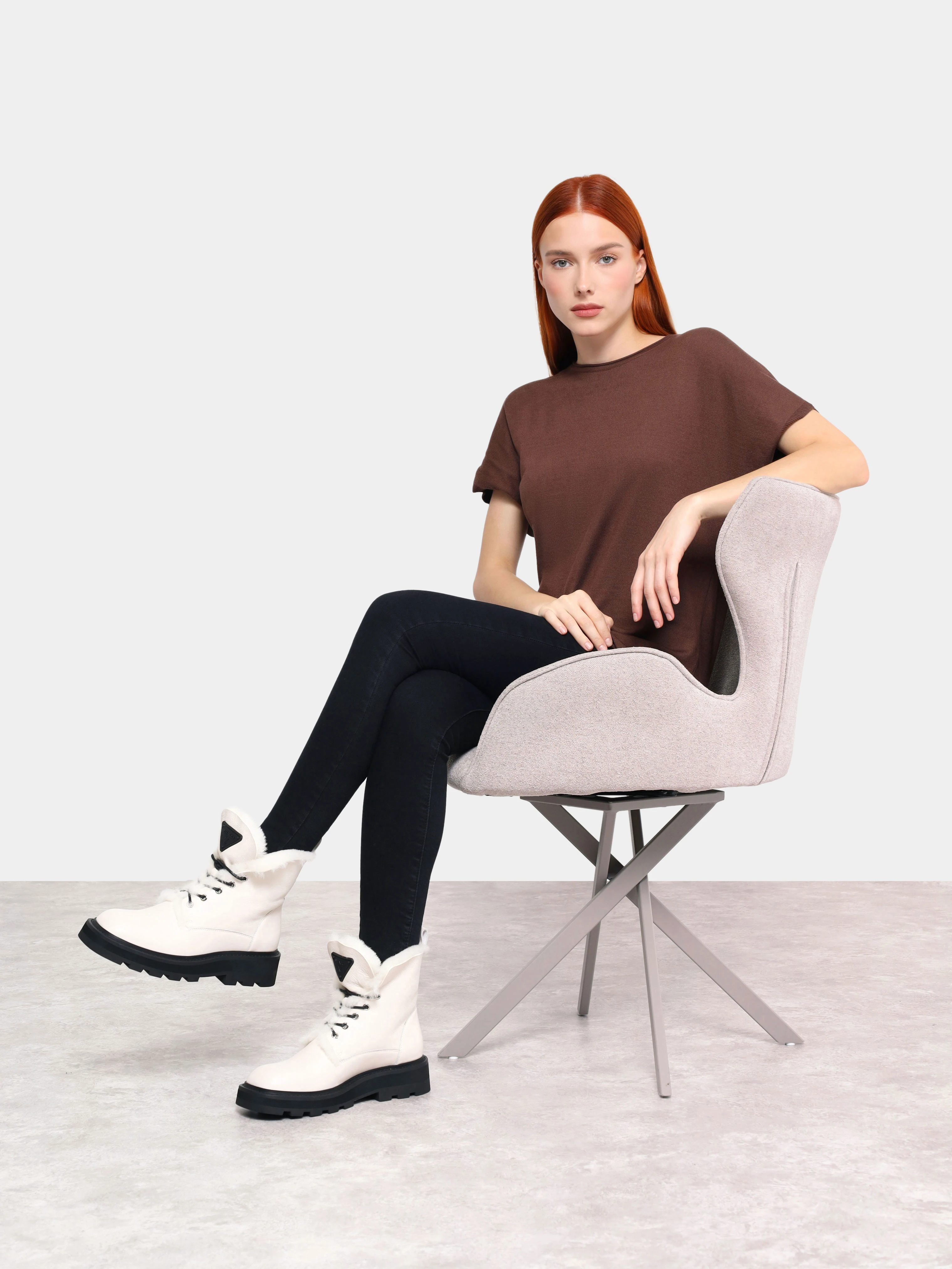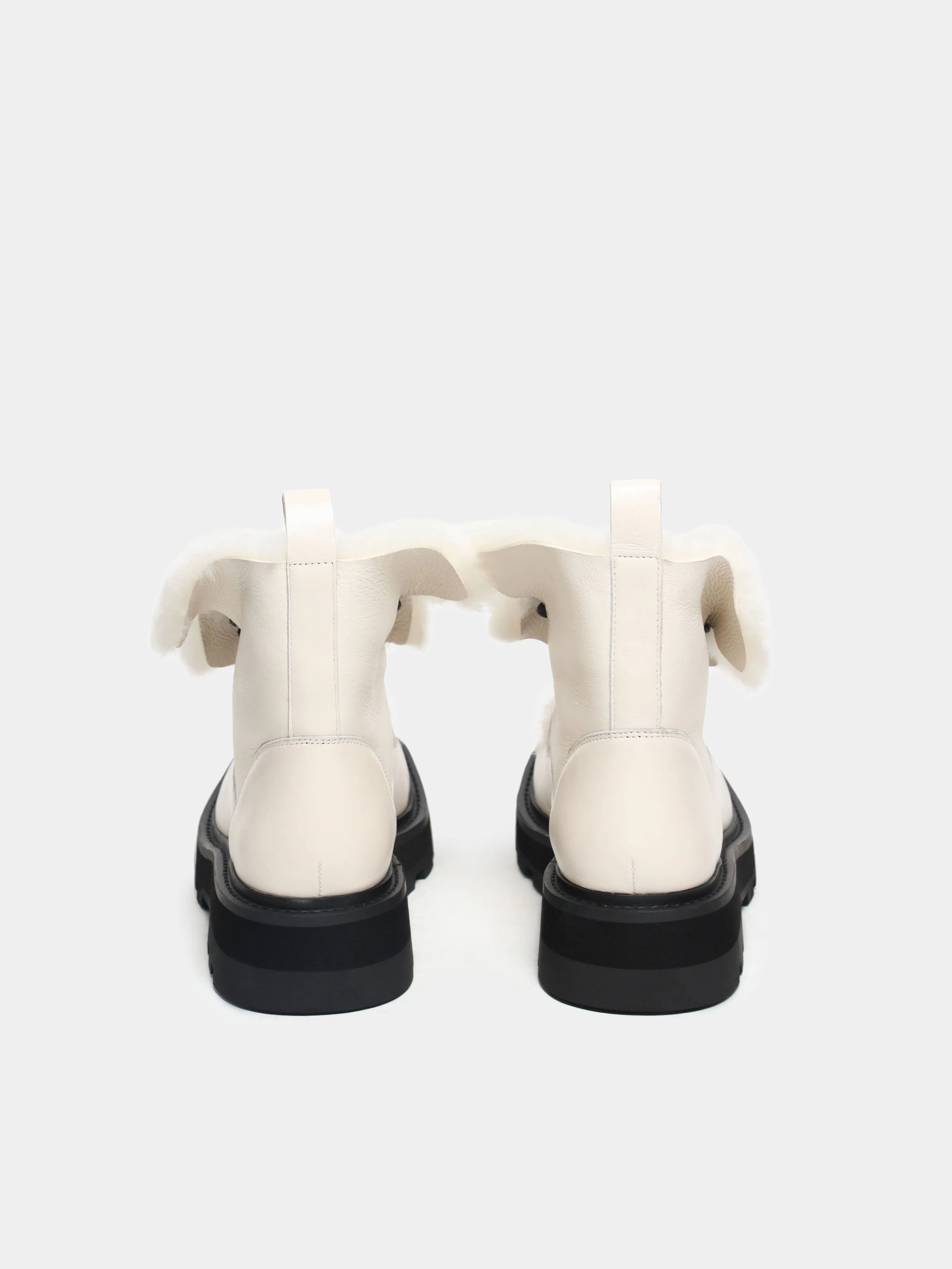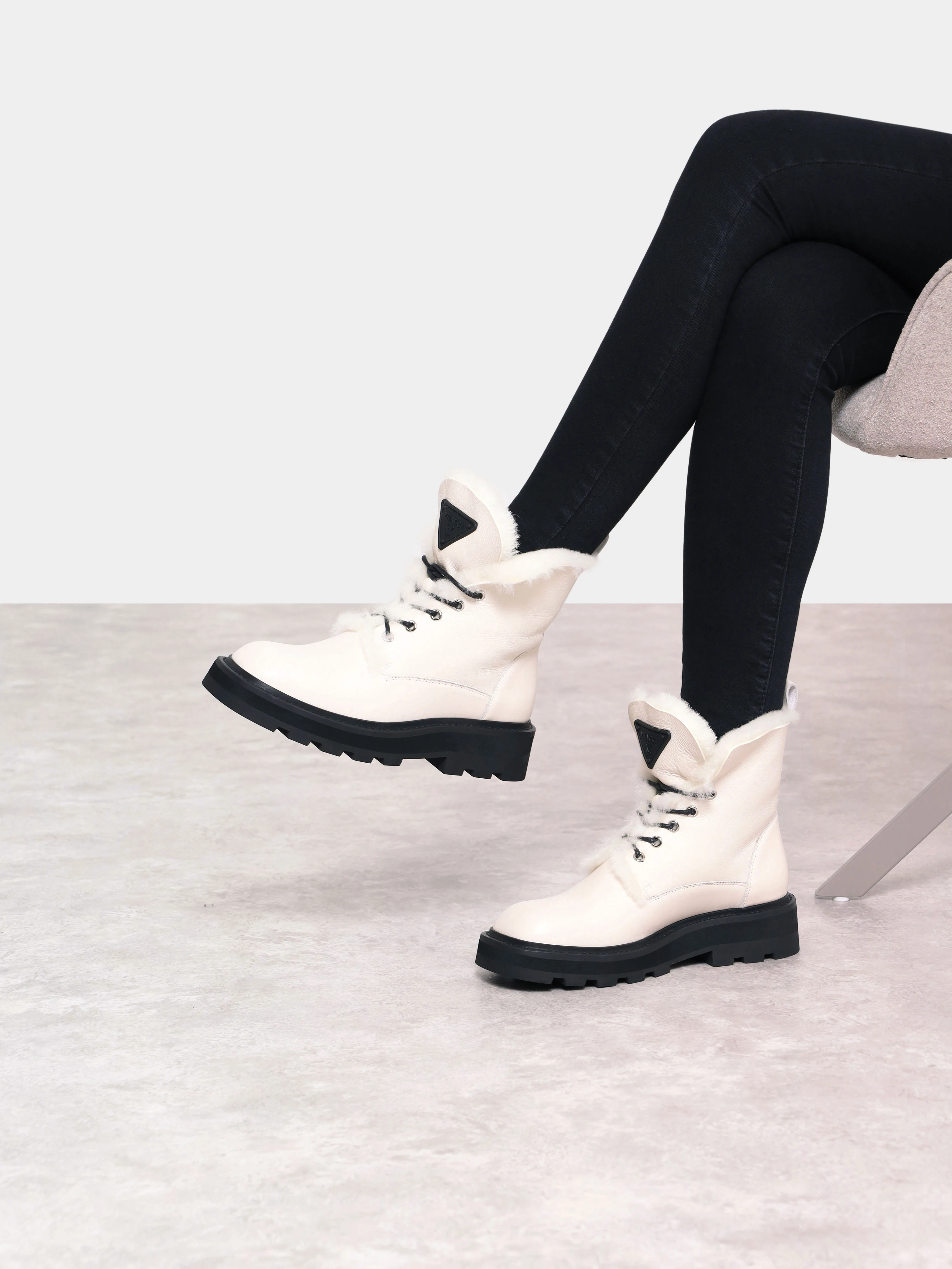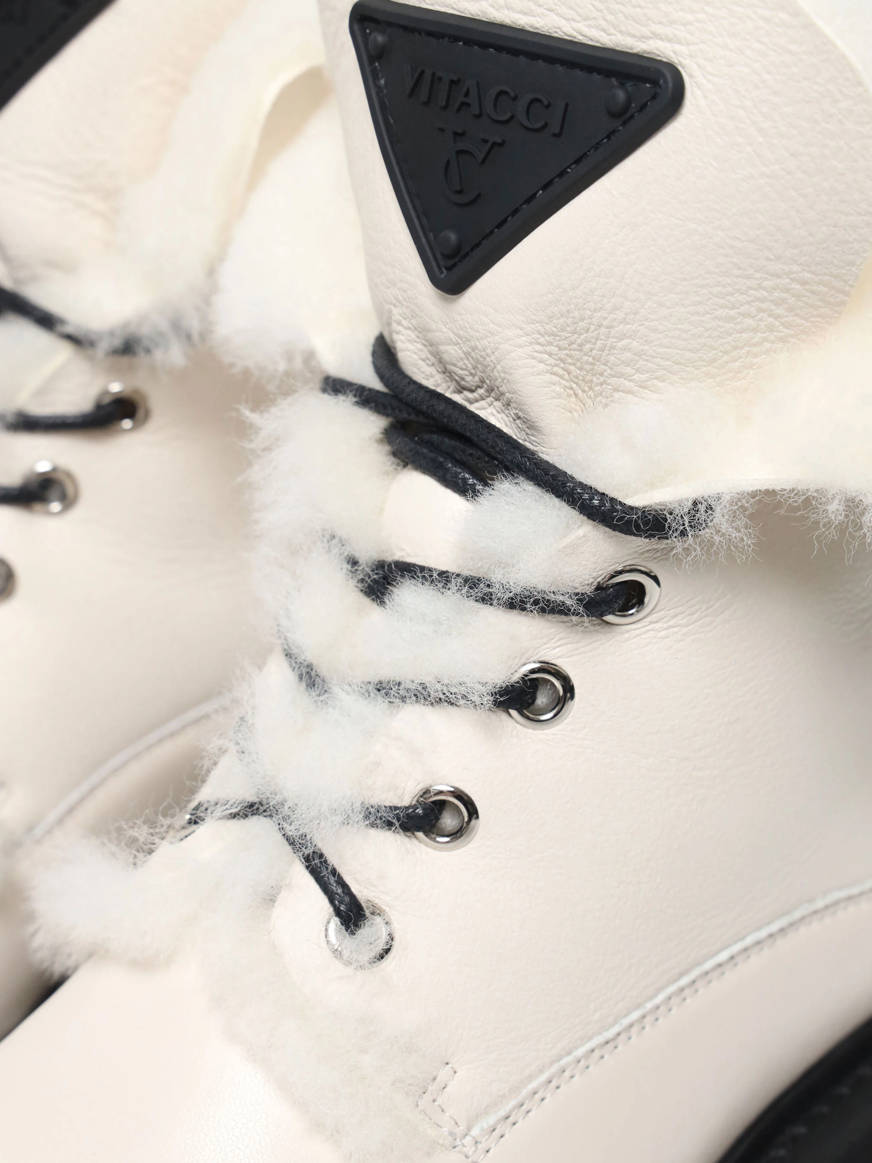 Ботинки женские зимние, цвет молочный, натуральная кожа