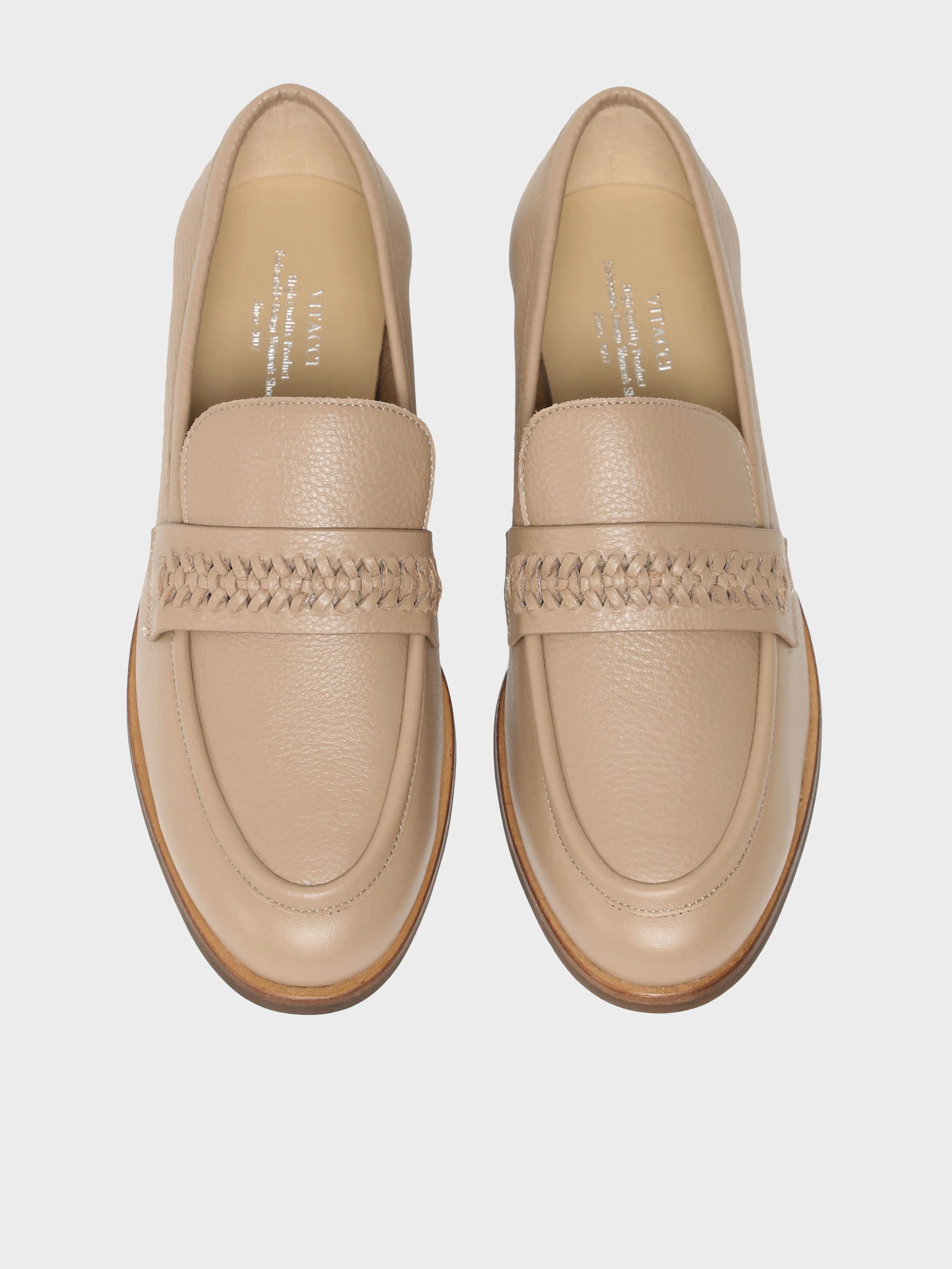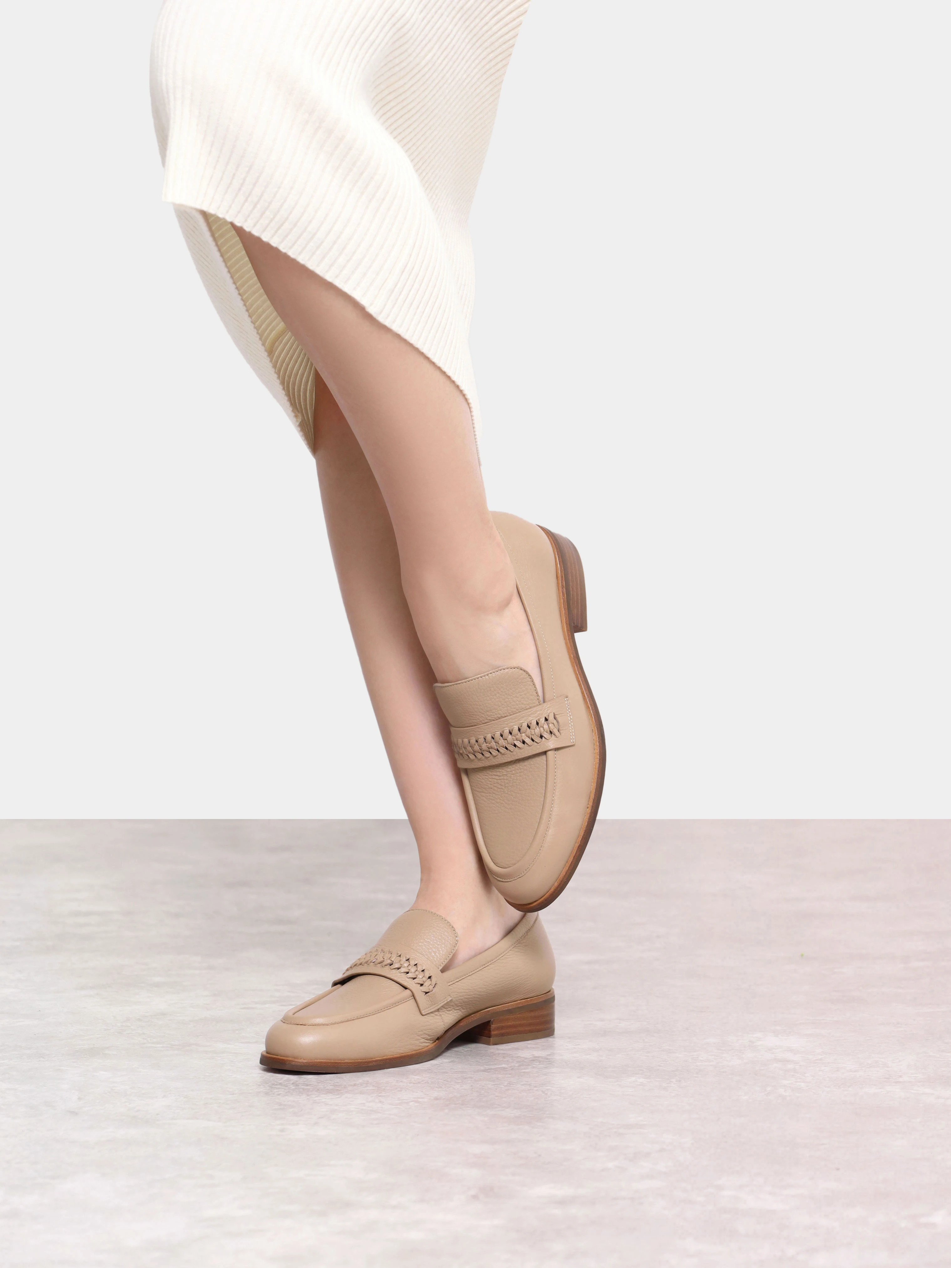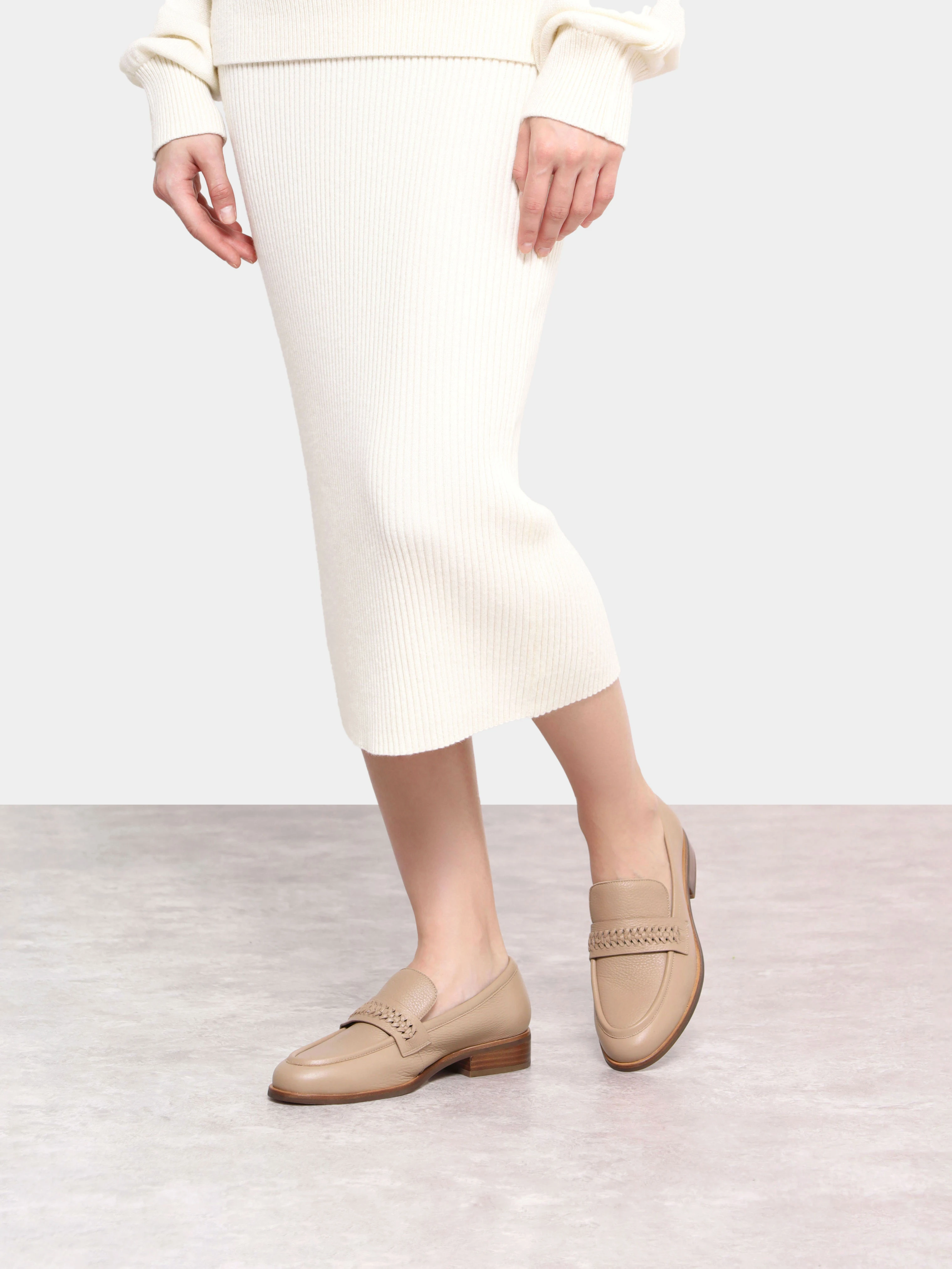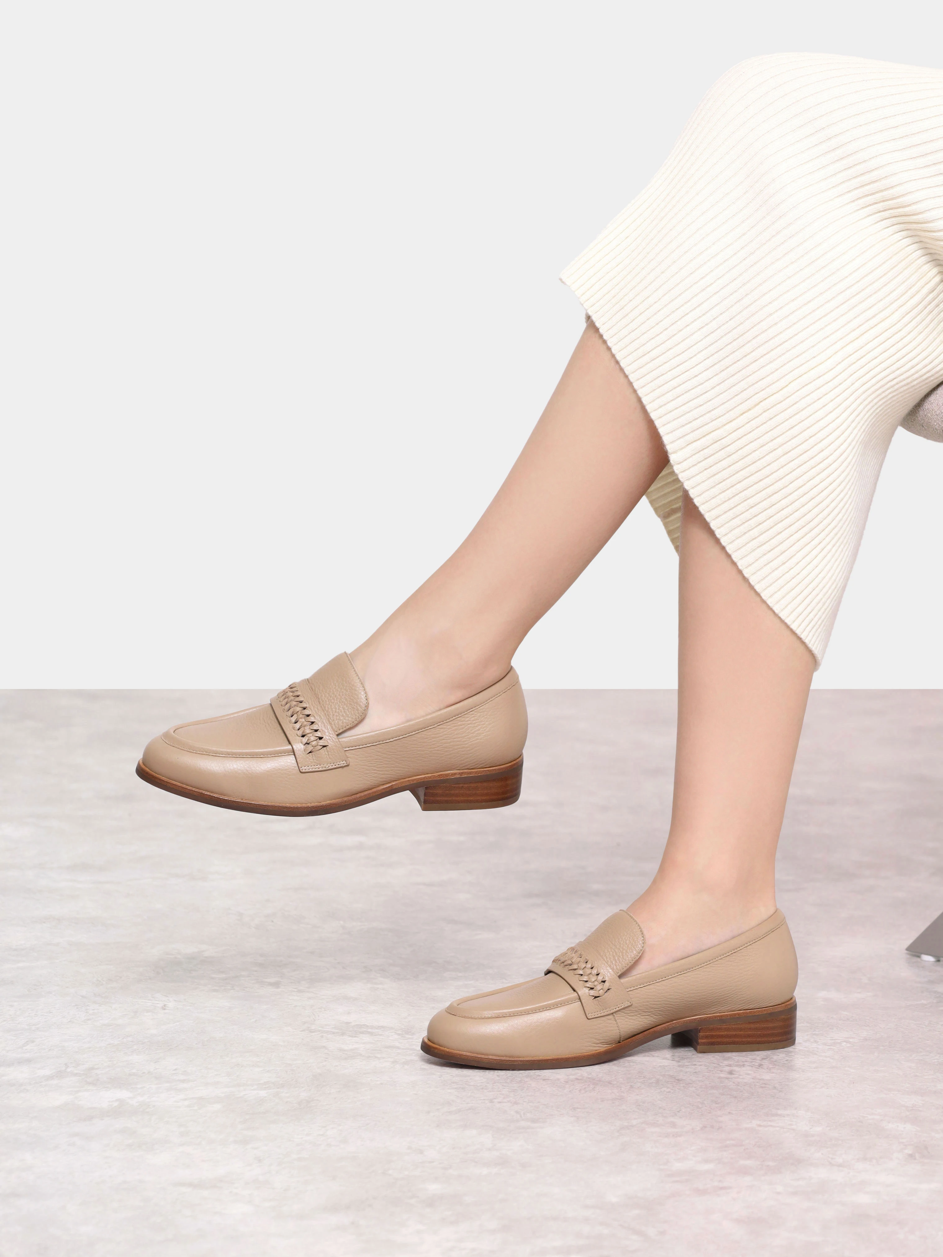 Лоферы женские всесезонные, цвет бежевый, натуральная кожа