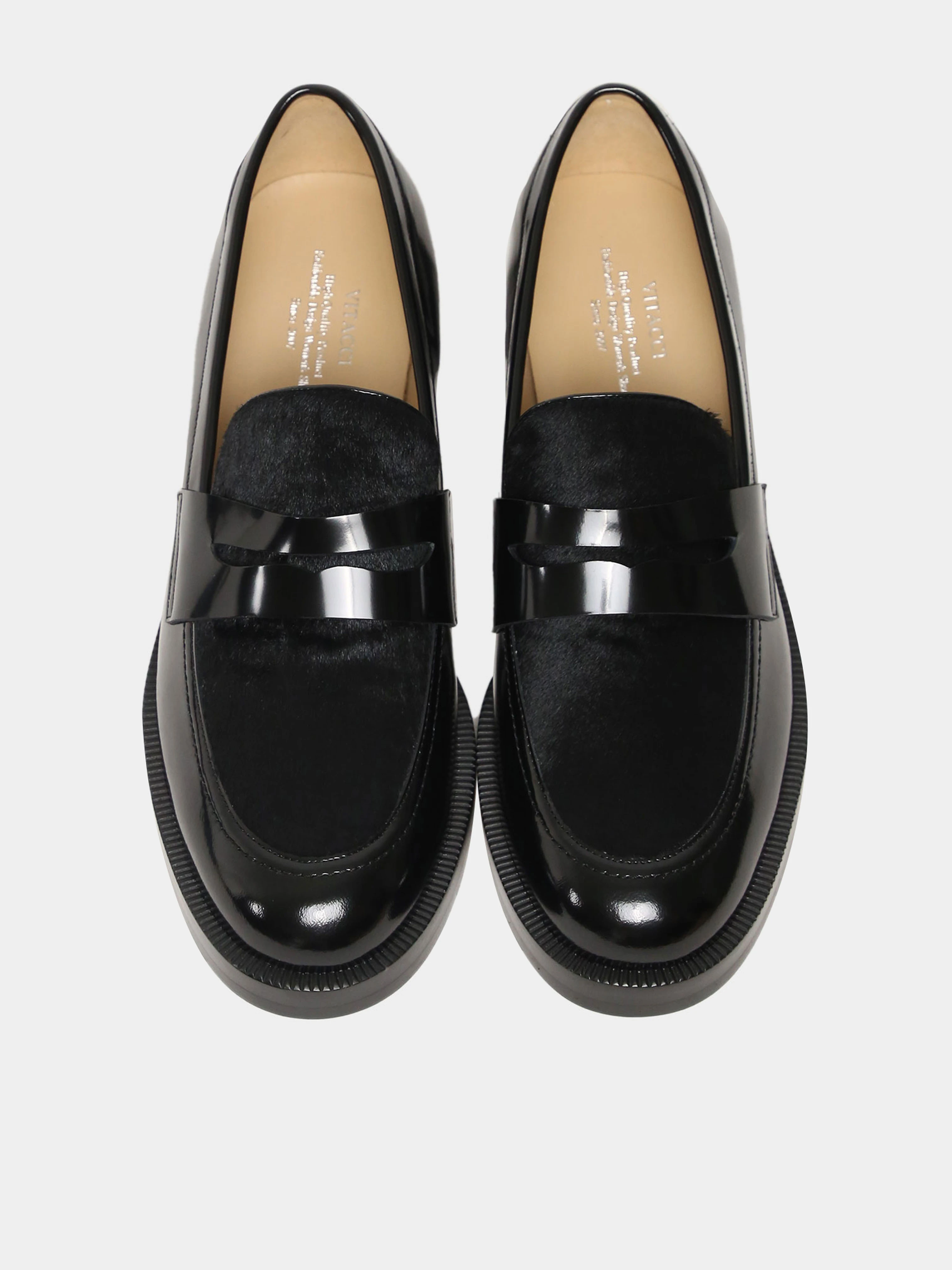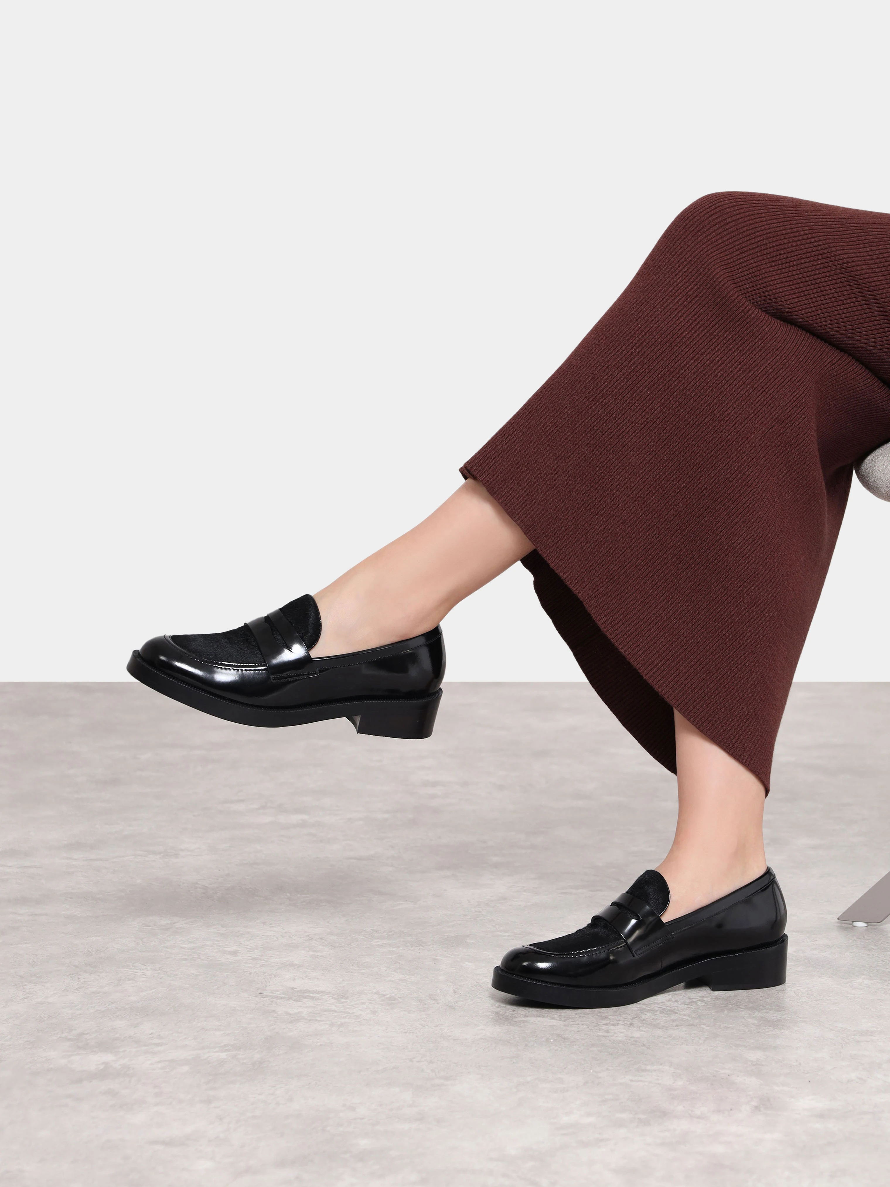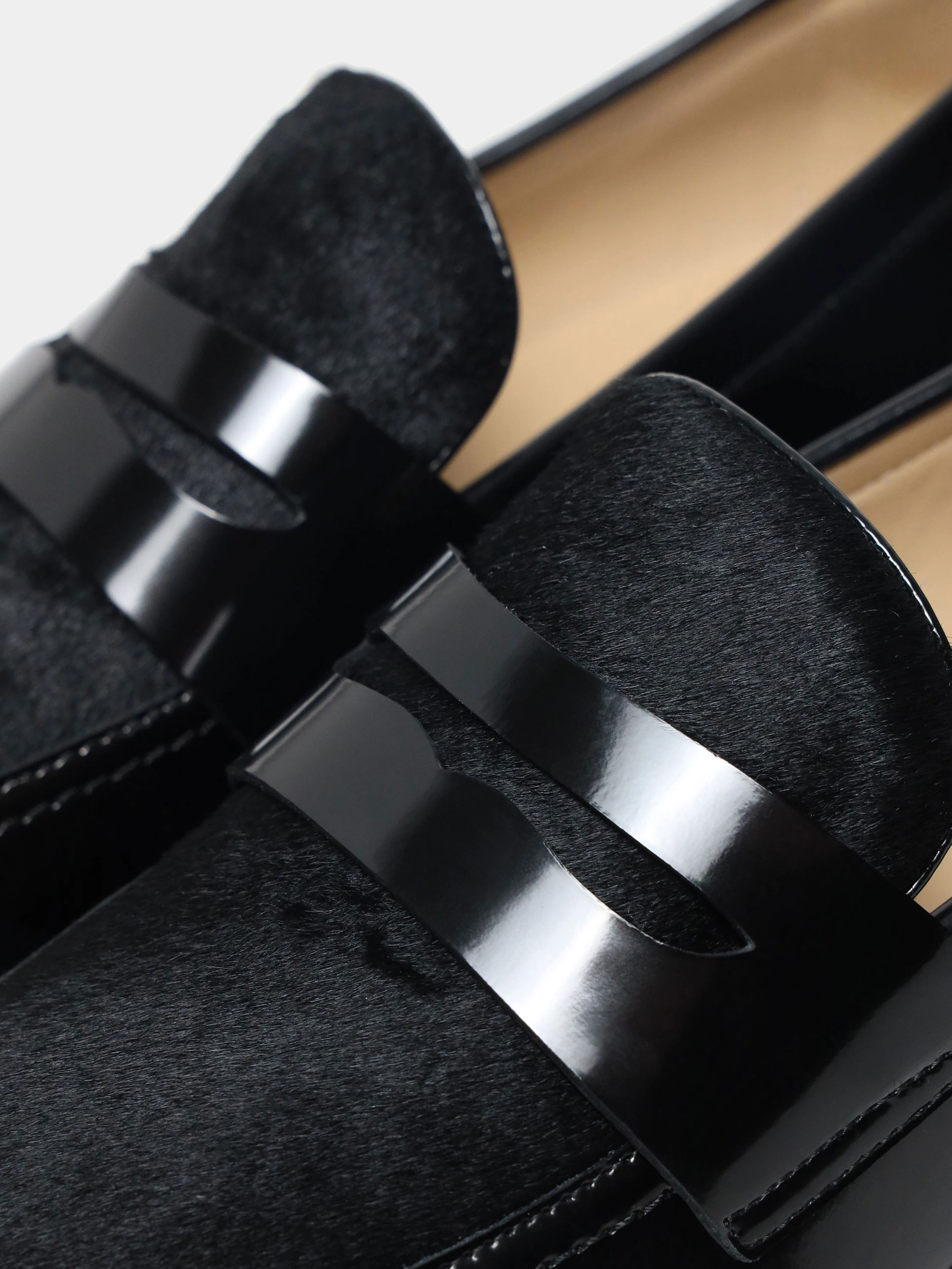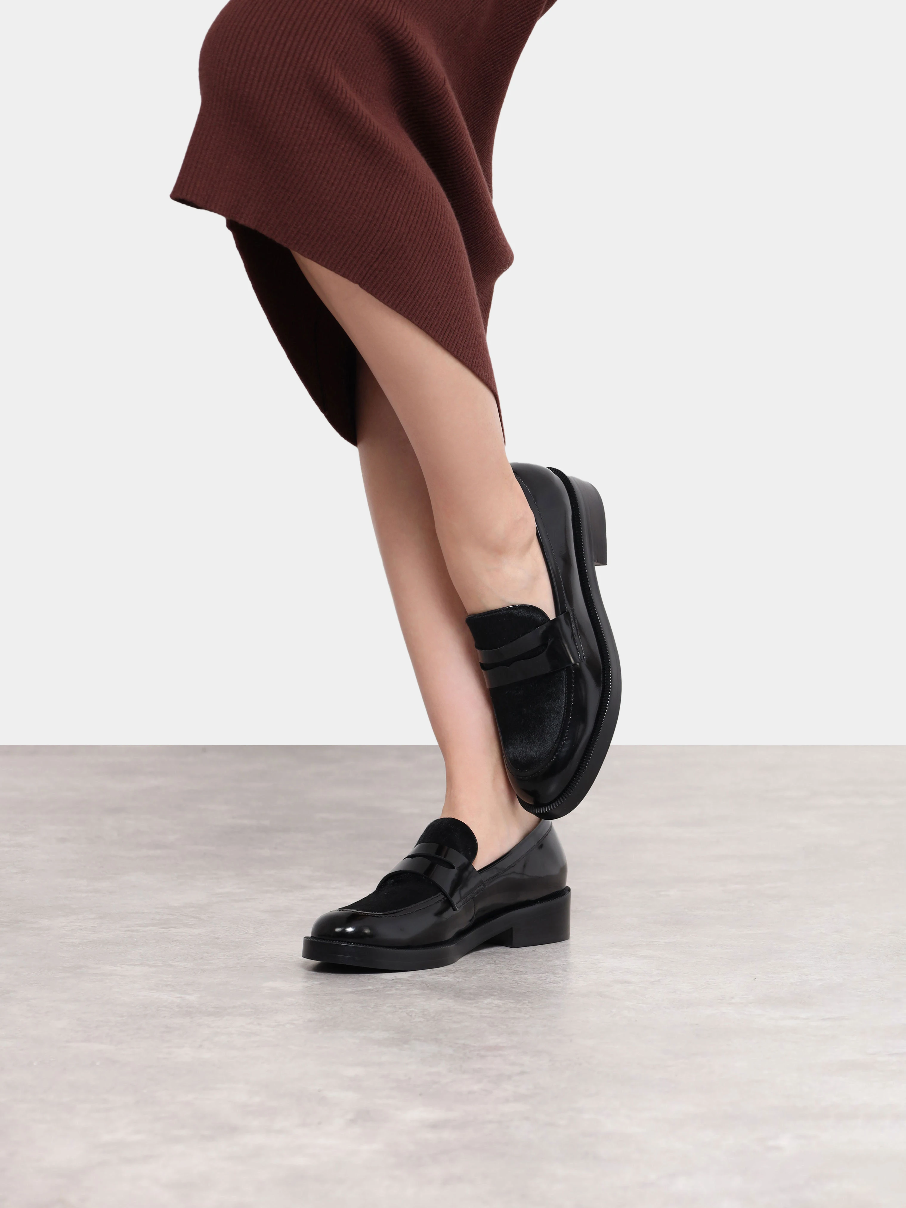 Лоферы женские всесезонные, цвет черный, натуральная кожа/натуральный мех (пони)