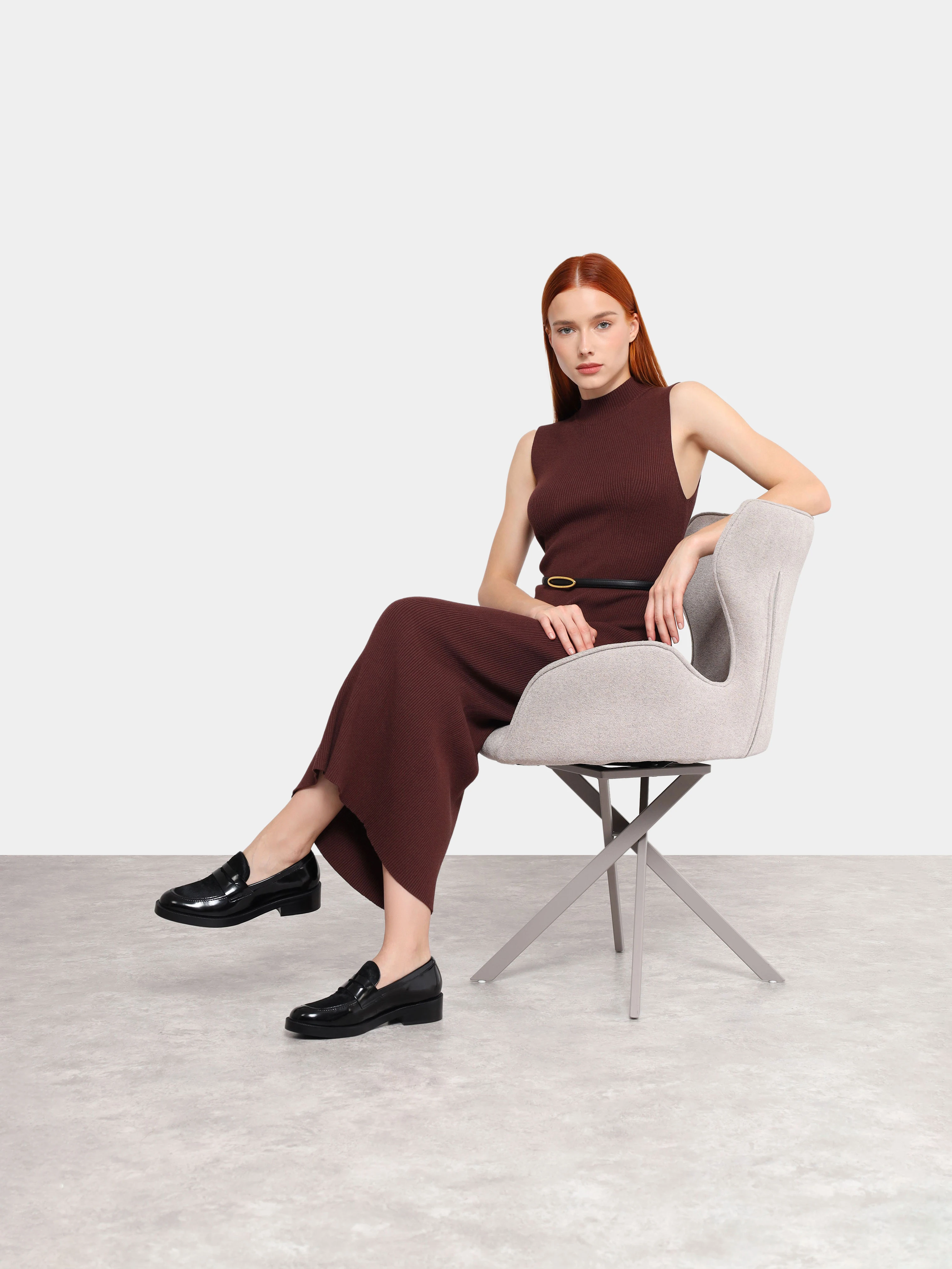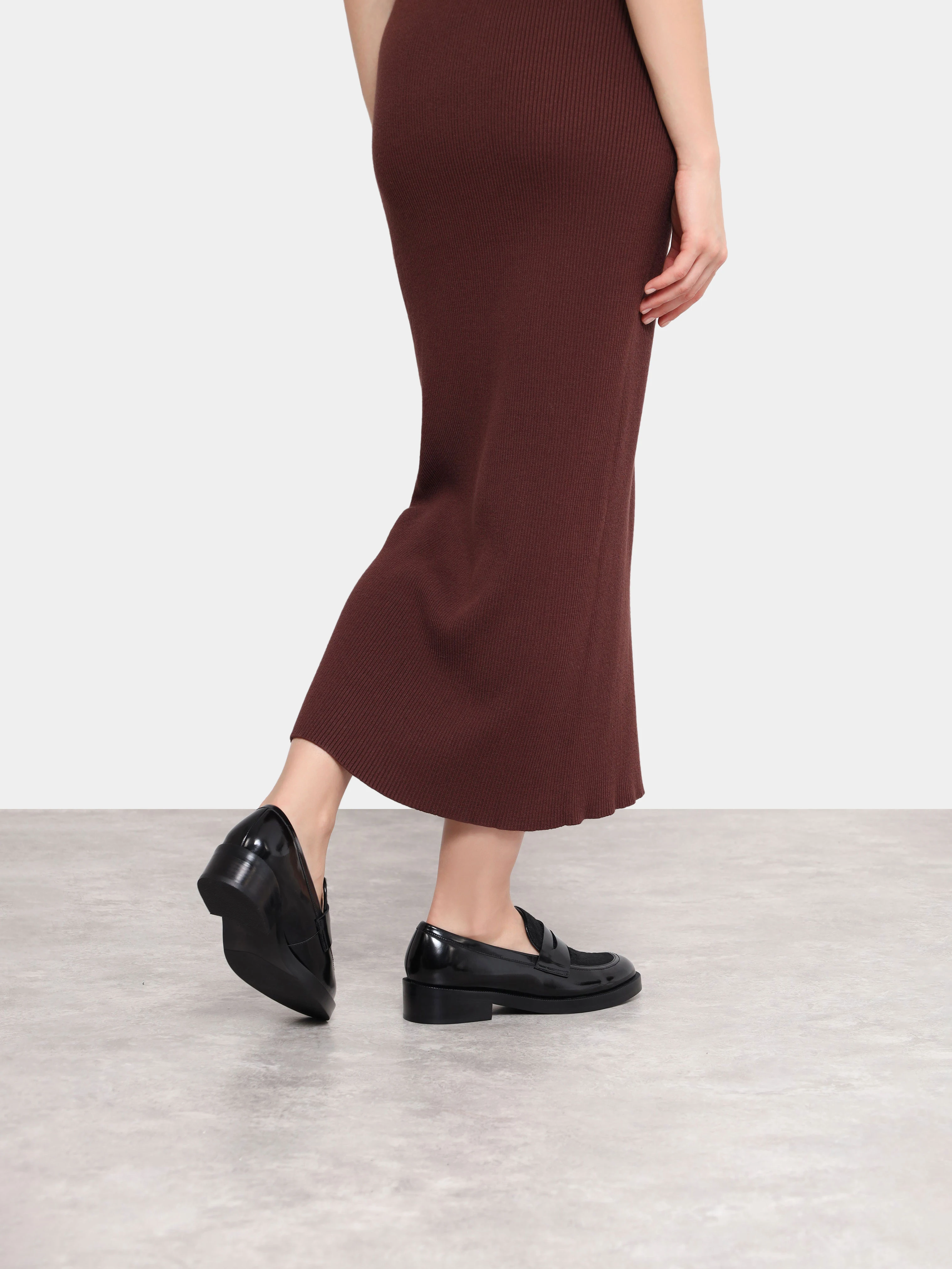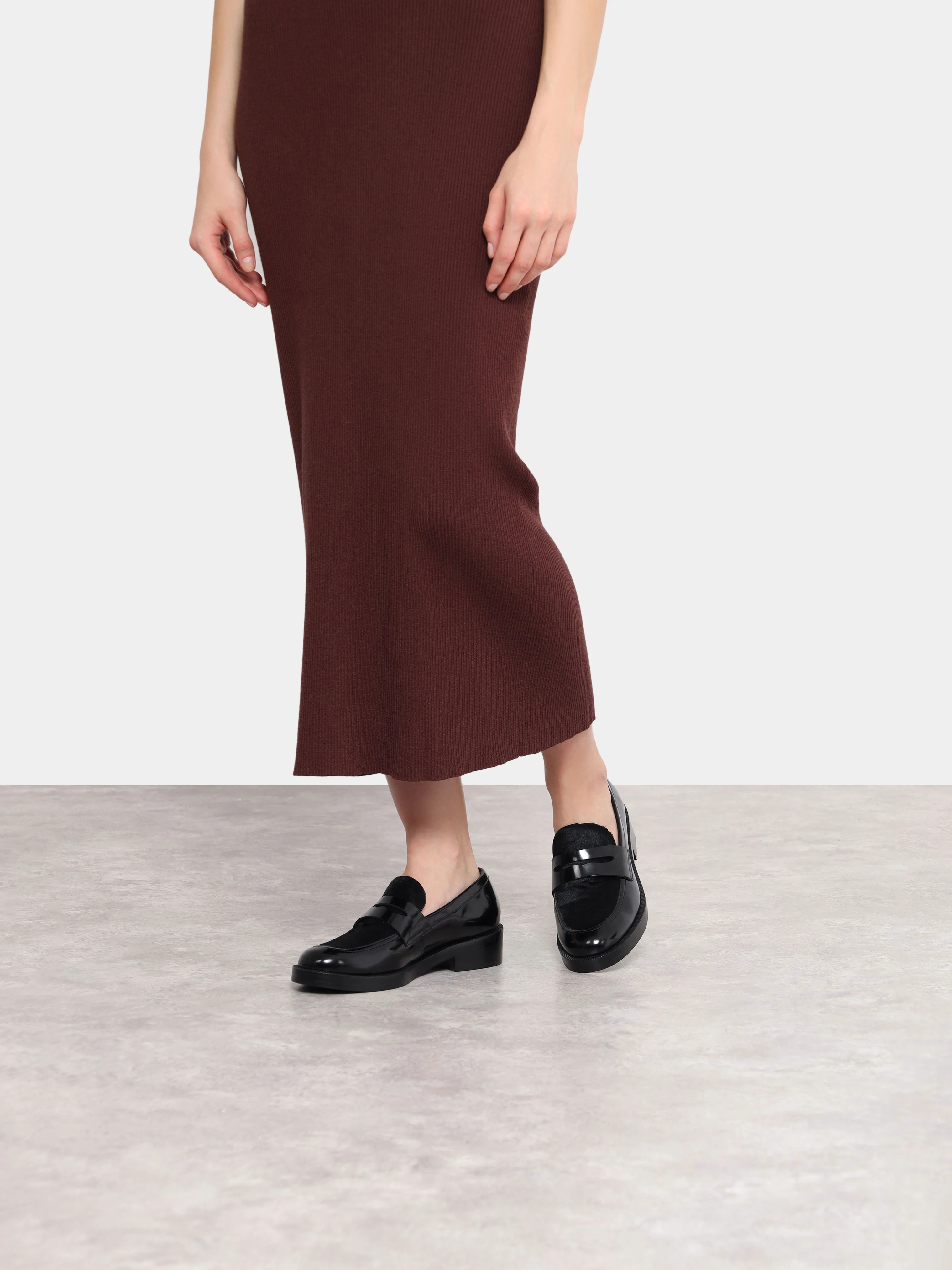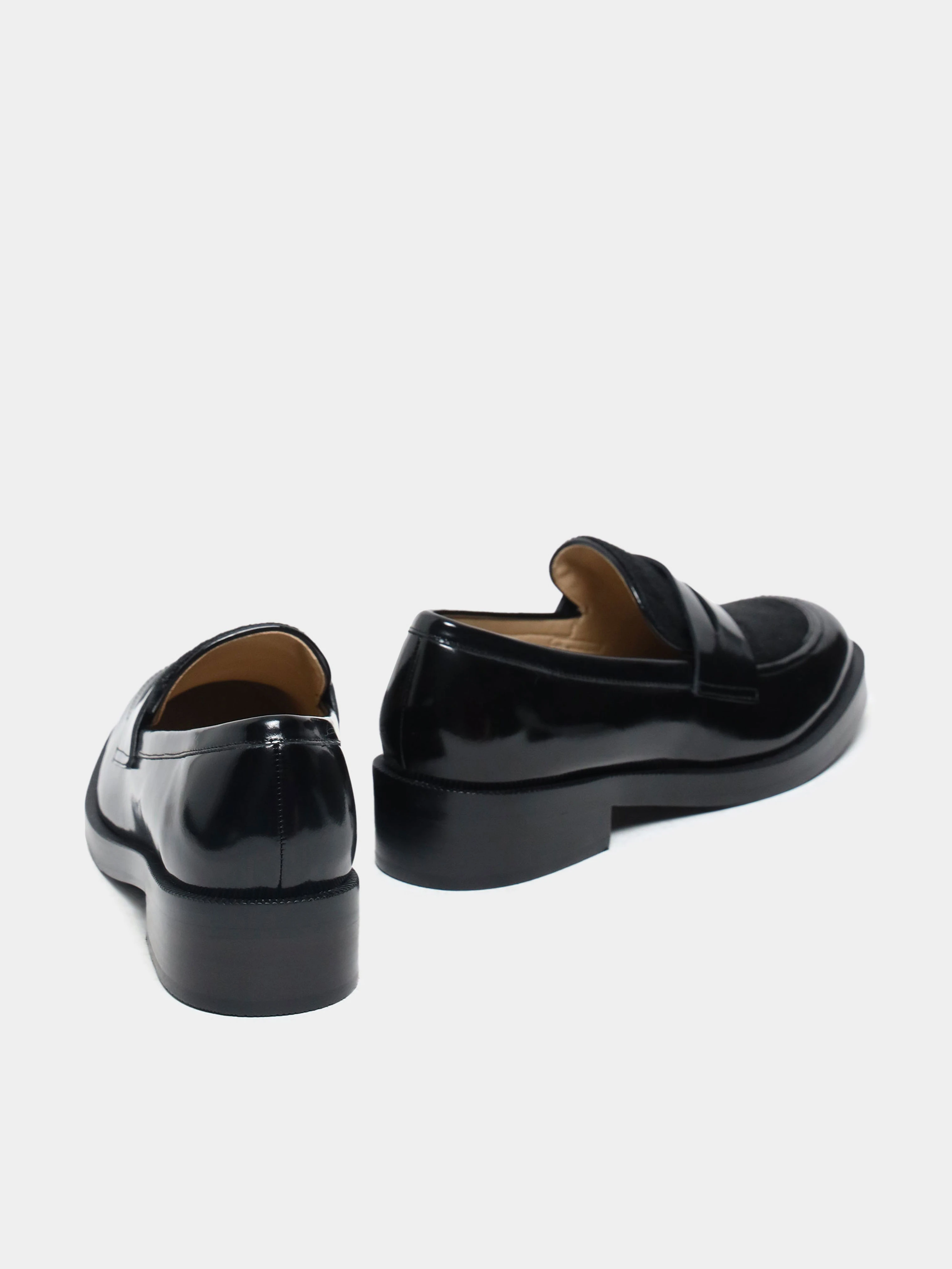 Лоферы женские всесезонные, цвет черный, натуральная кожа/натуральный мех (пони)