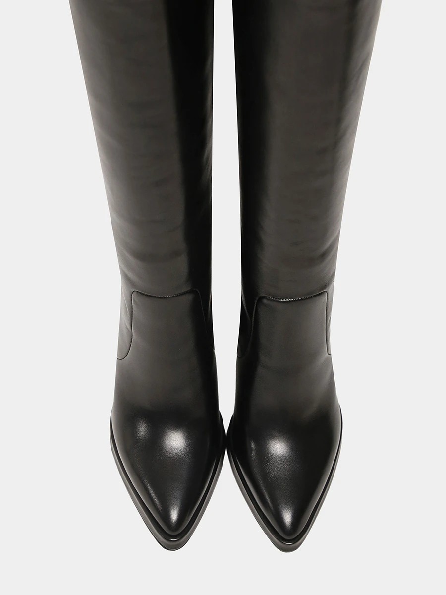 Сапоги женские зимние, цвет черный, натуральная кожа