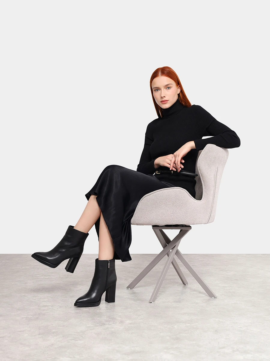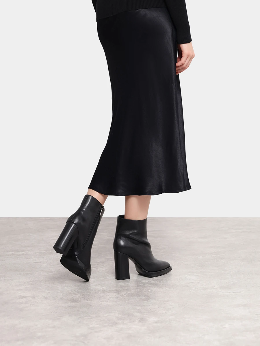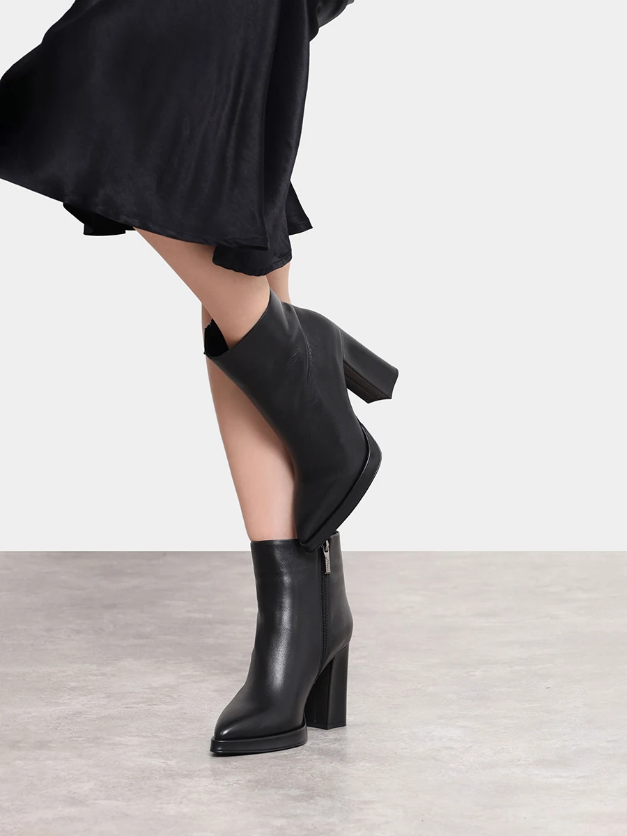 Ботильоны женские зимние, цвет черный, натуральная кожа