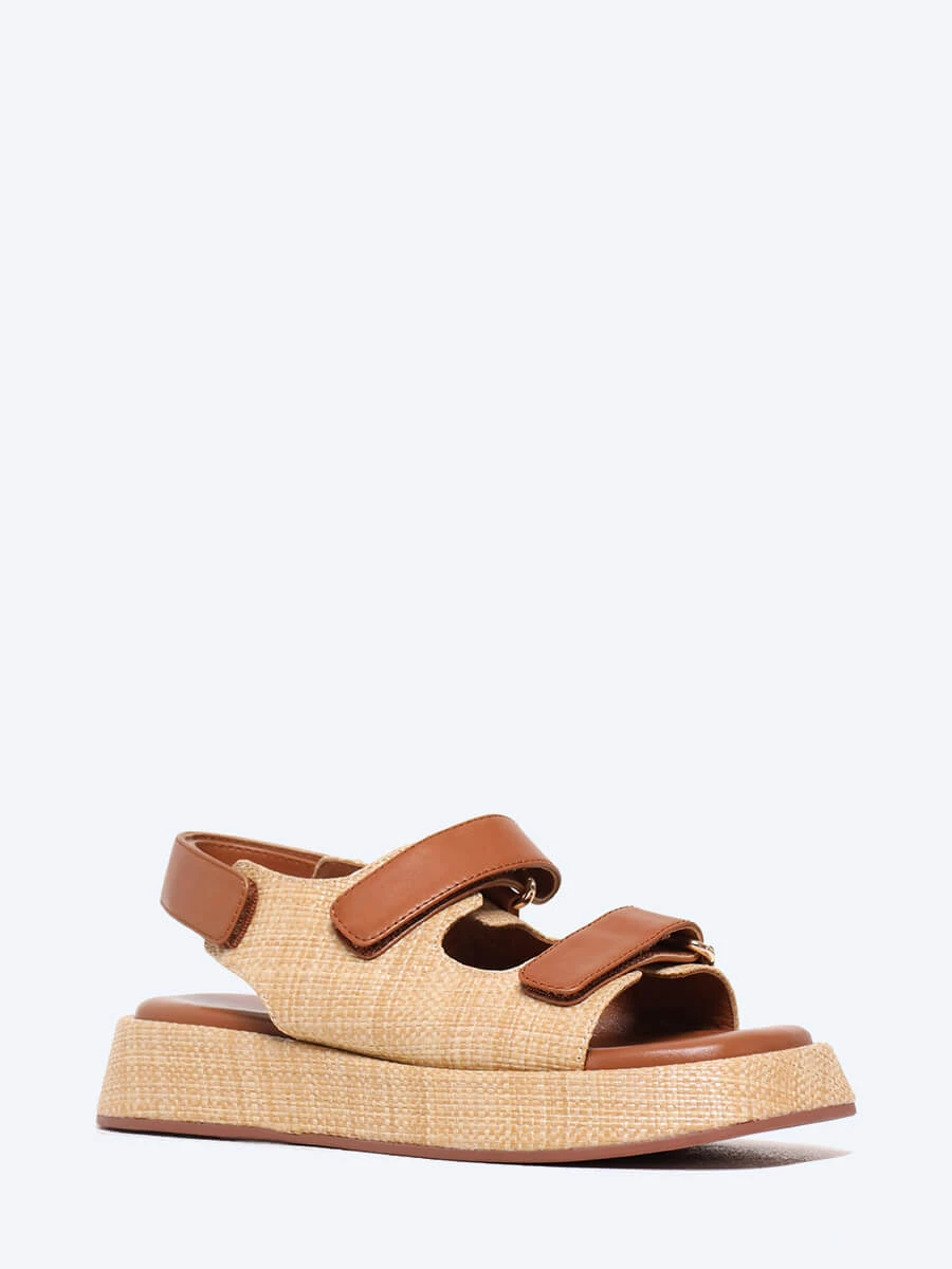 Сандалии женские летние, цвет рыжий, текстиль/натуральная кожа