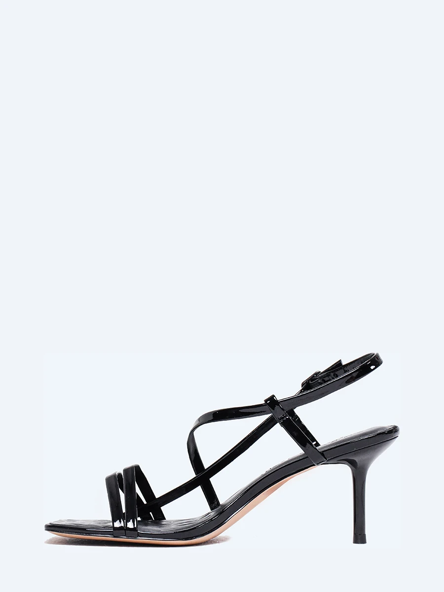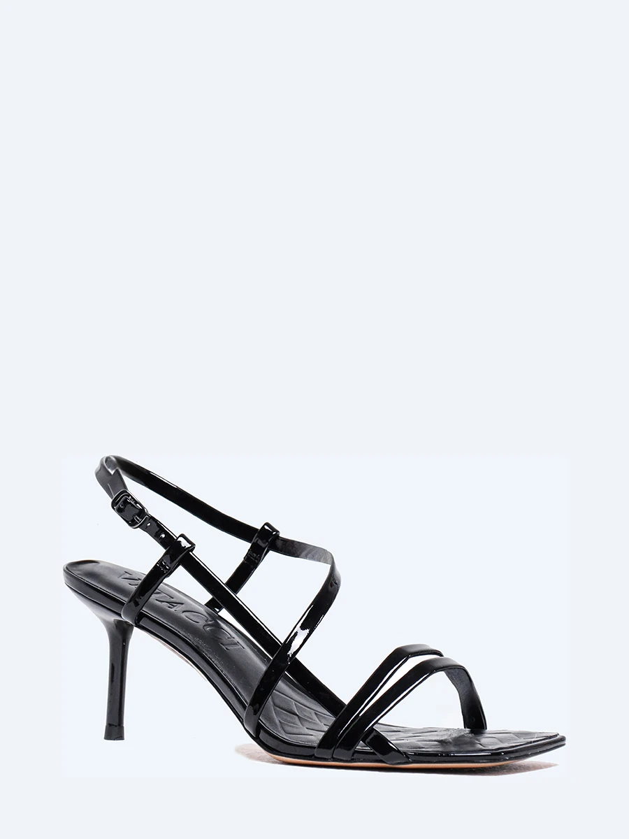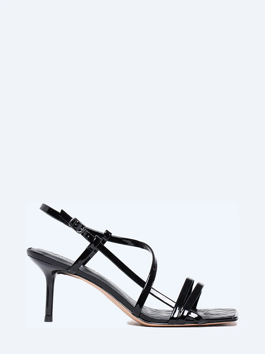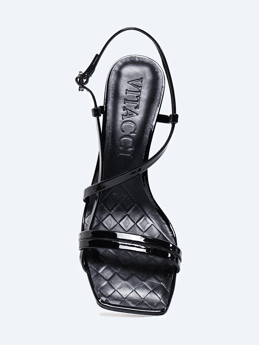 Босоножки женские летние, цвет черный, натуральная лаковая кожа