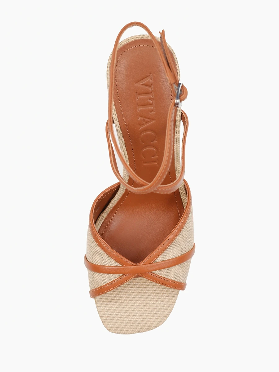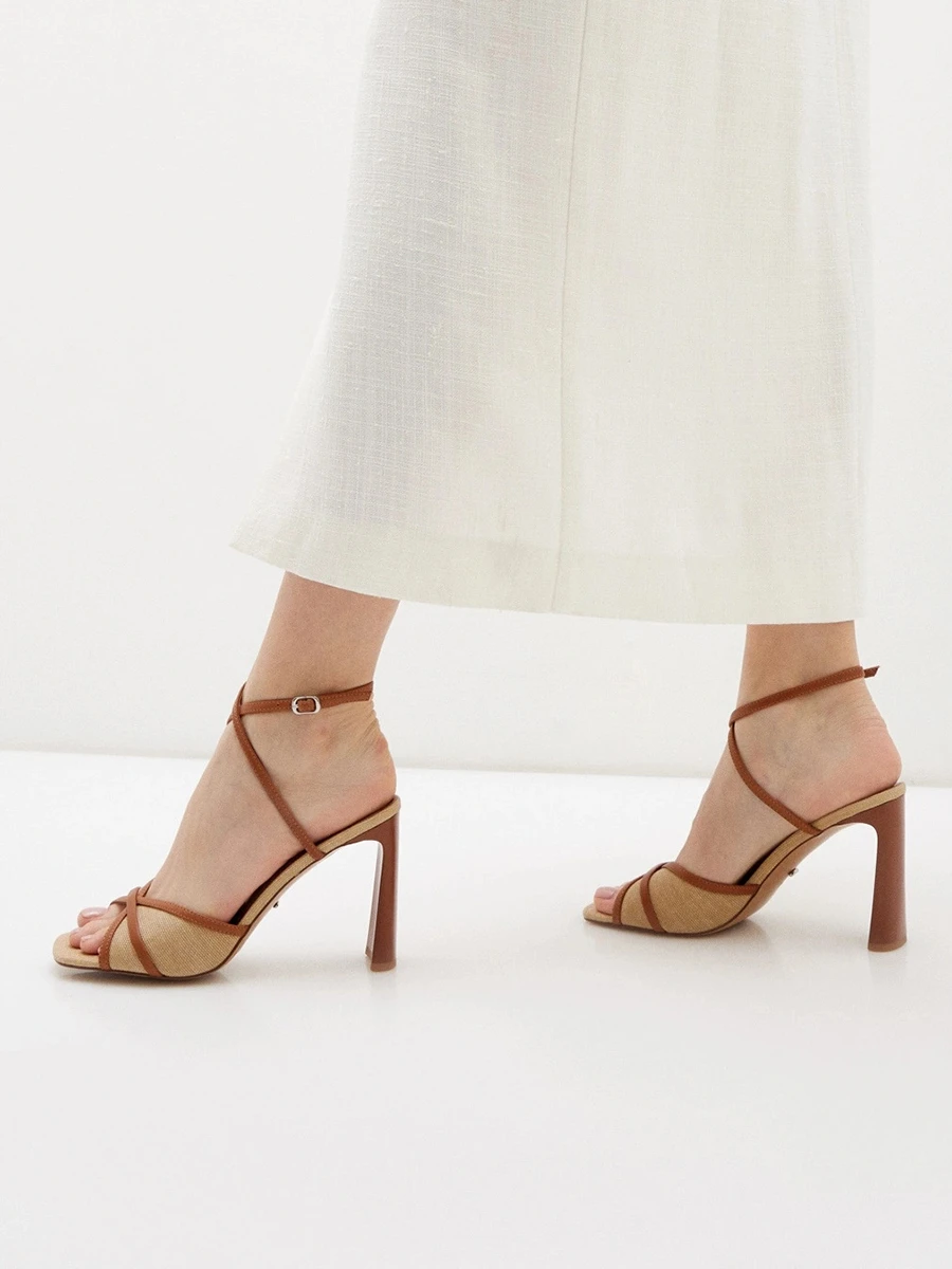Босоножки женские летние, цвет рыжий, натуральная кожа/текстиль
