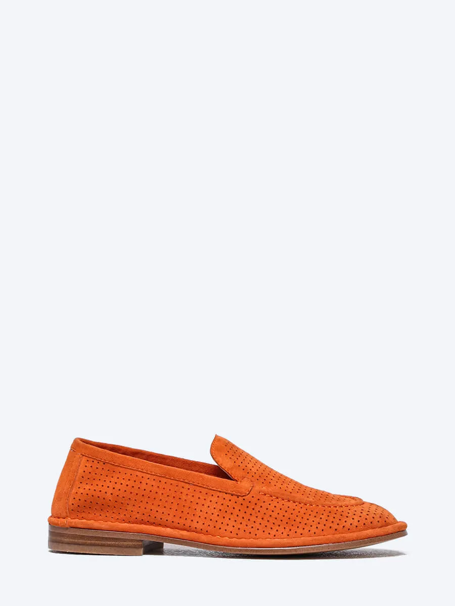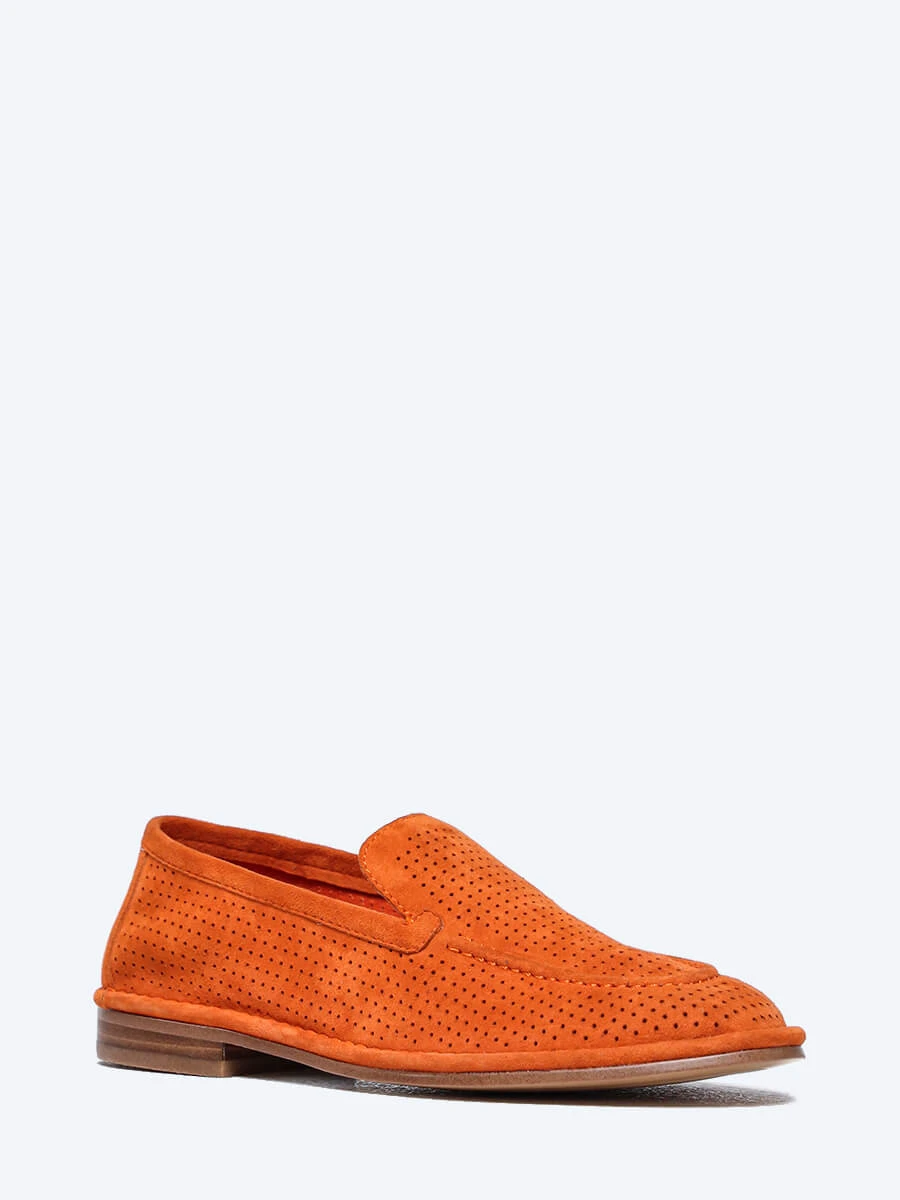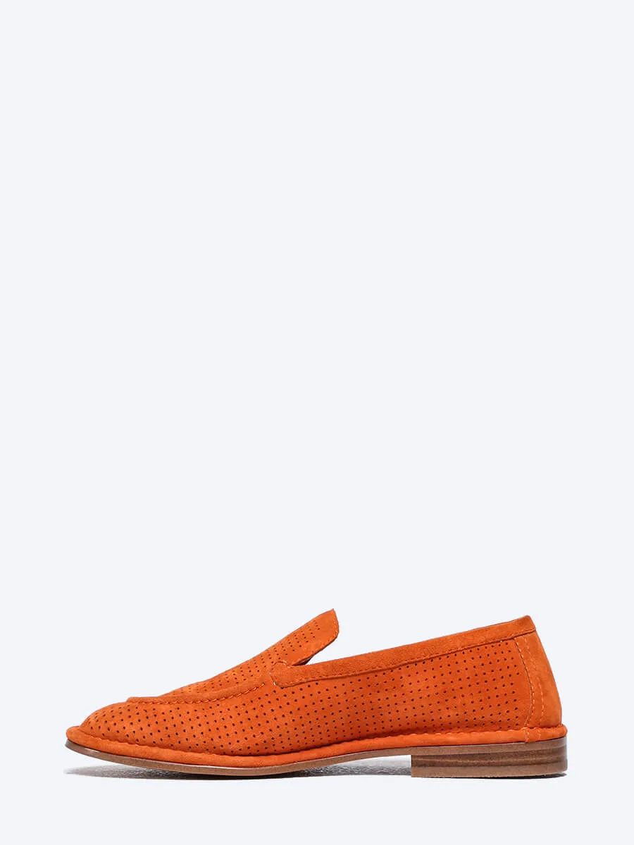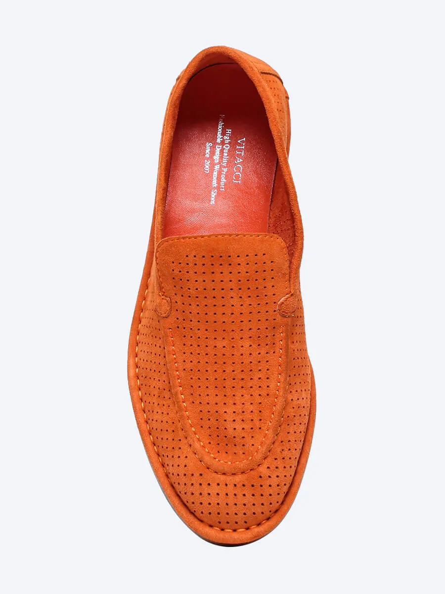 Лоферы женские летние, цвет оранжевый, натуральный велюр