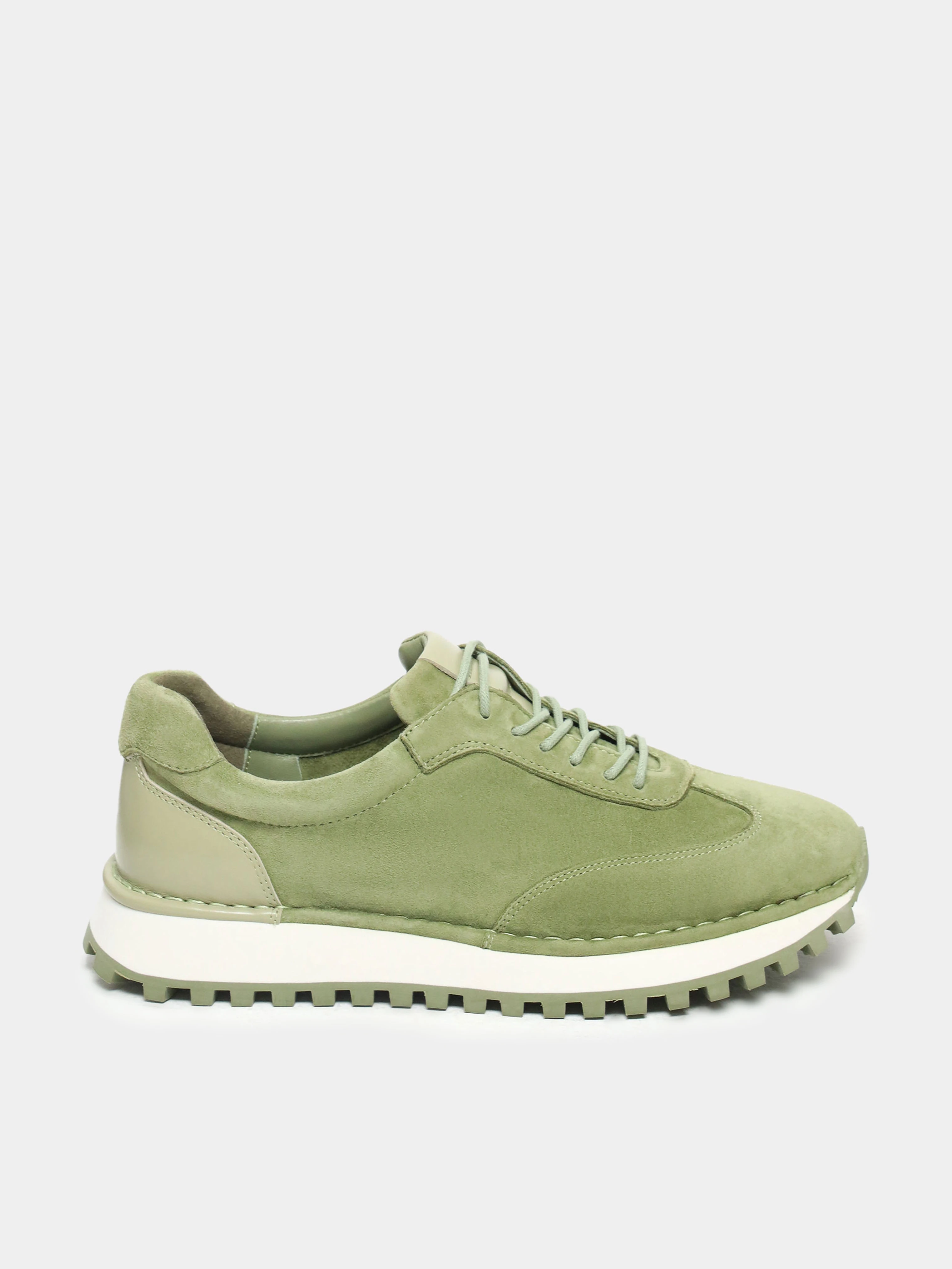 Кроссовки женские летние, цвет салатовый, натуральный велюр/натуральная кожа