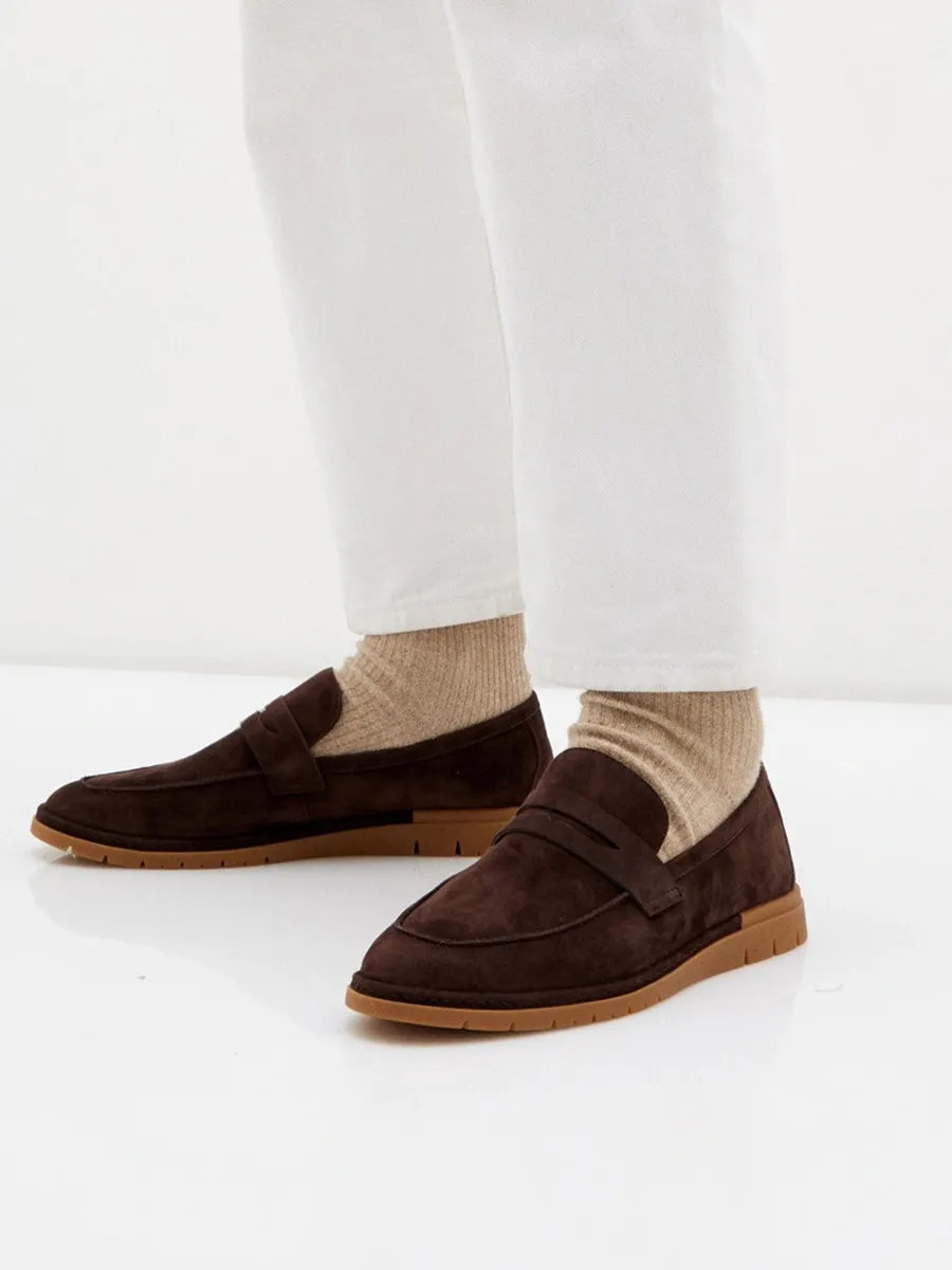 Лоферы женские всесезонные, цвет коричневый, натуральный велюр