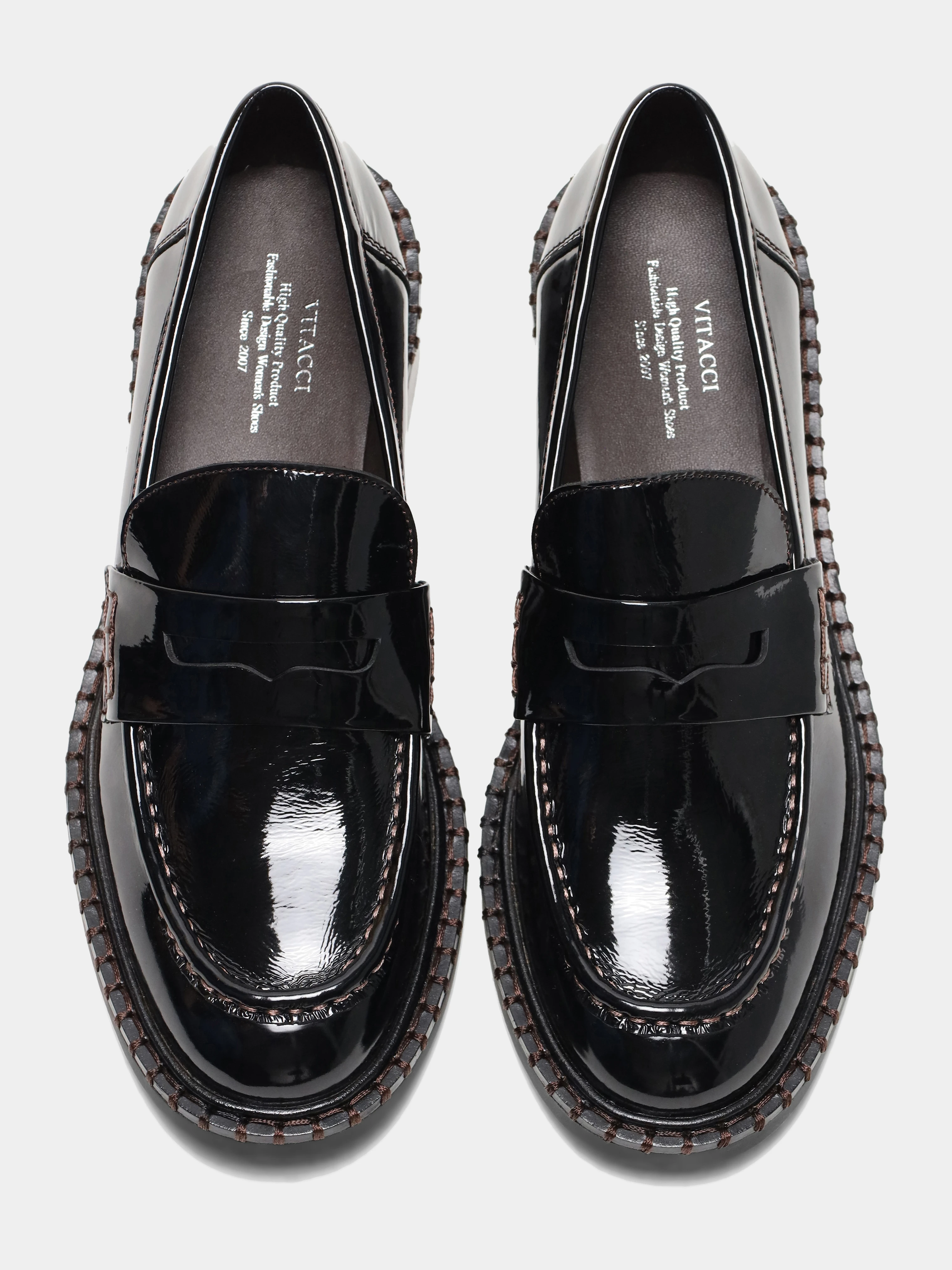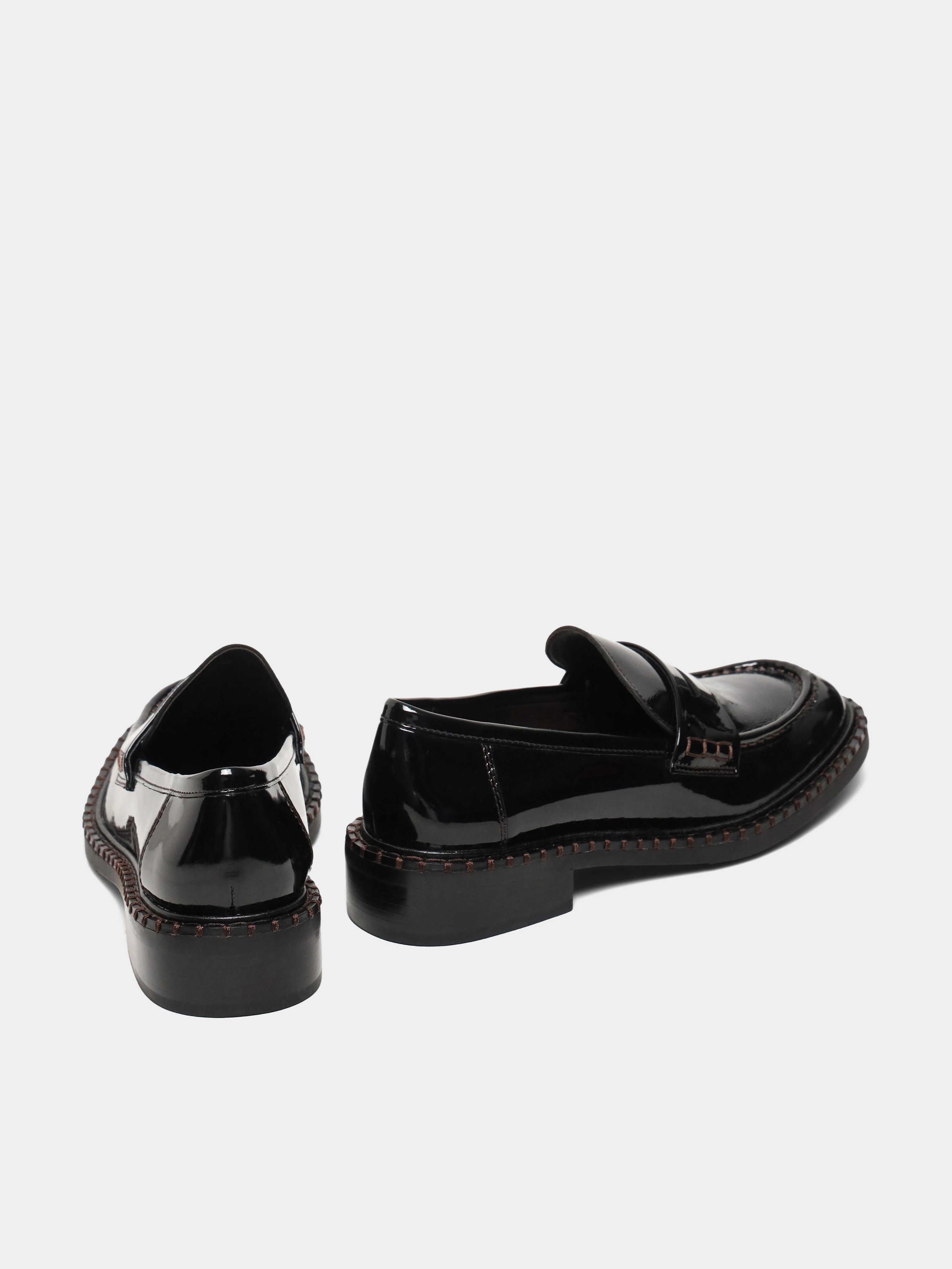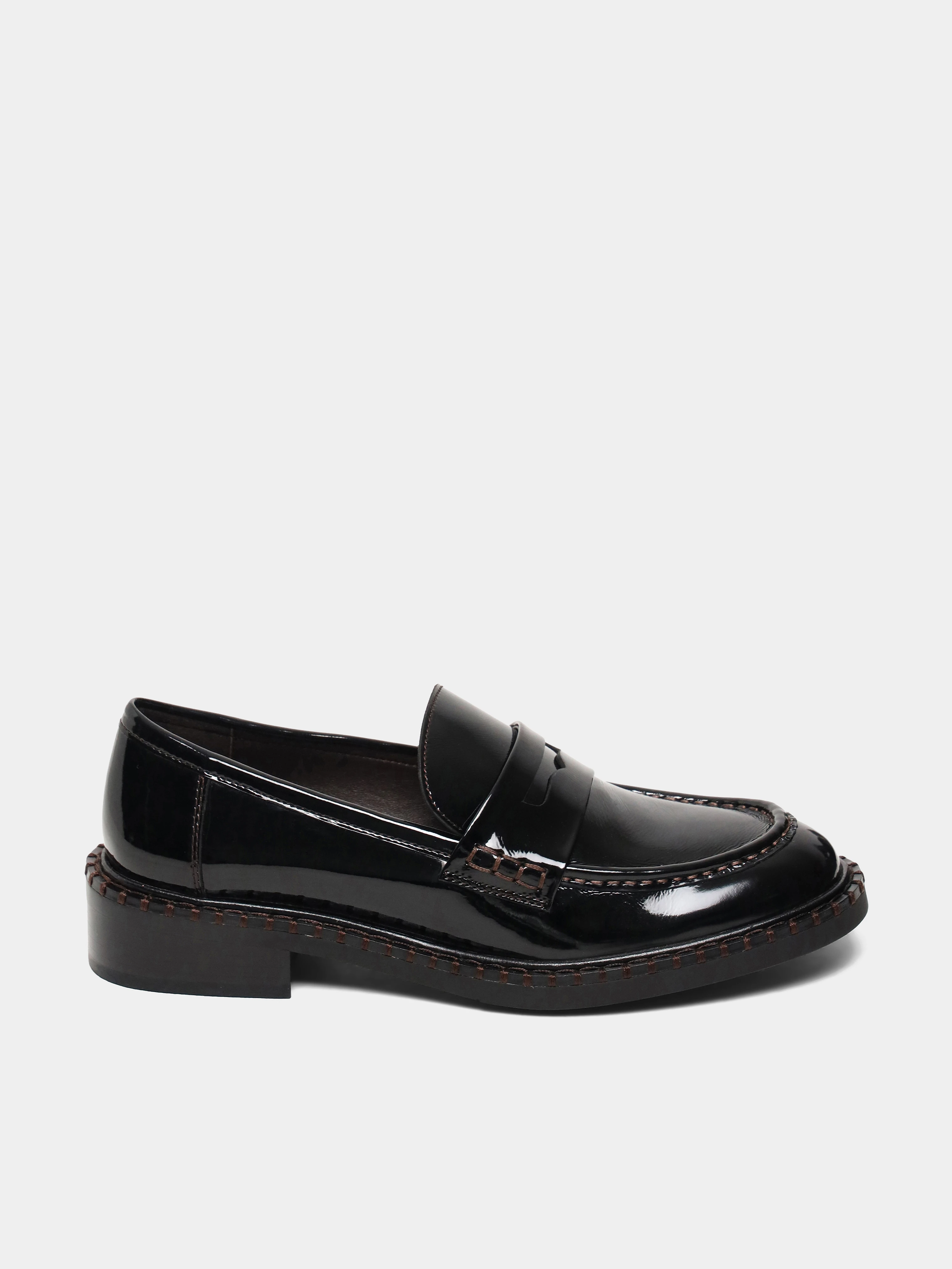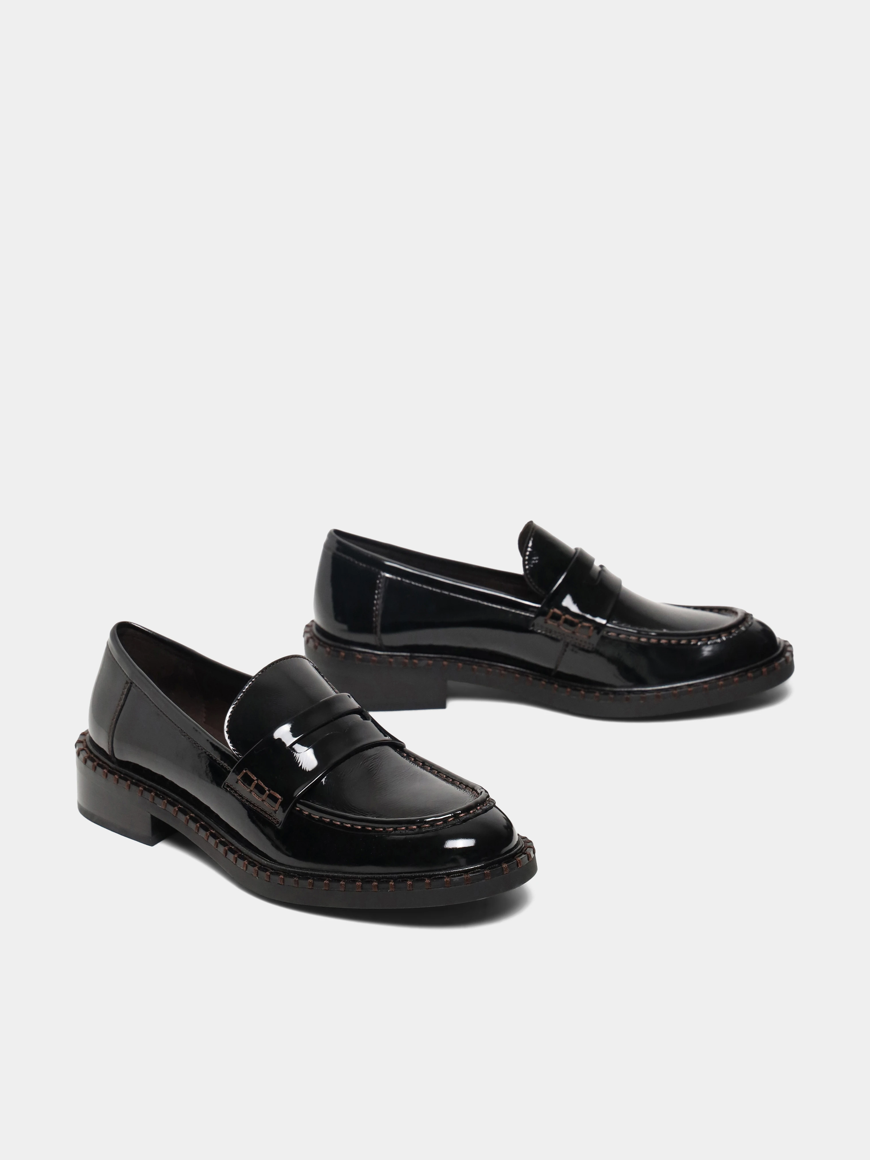 Лоферы женские всесезонные, цвет черный, натуральная лаковая кожа