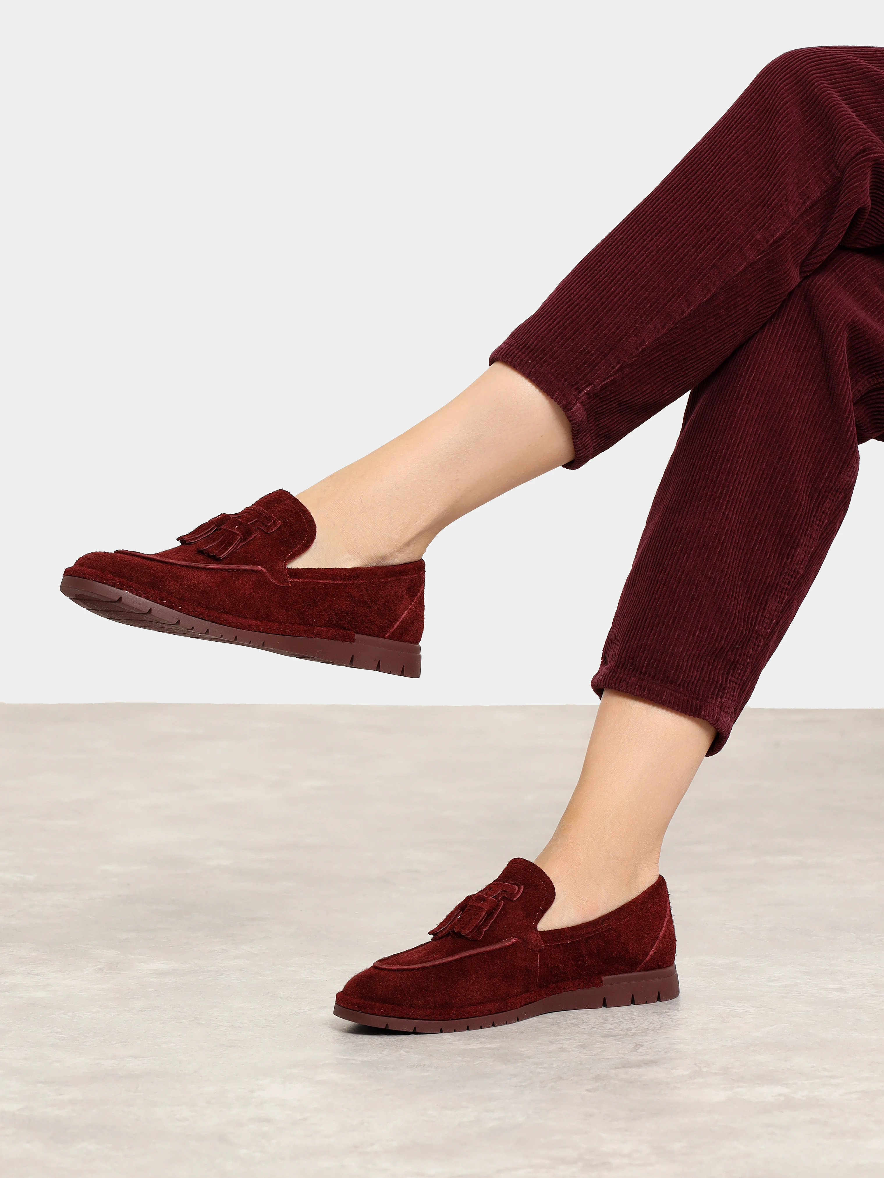 Лоферы женские всесезонные, цвет бордовый, натуральный спилок