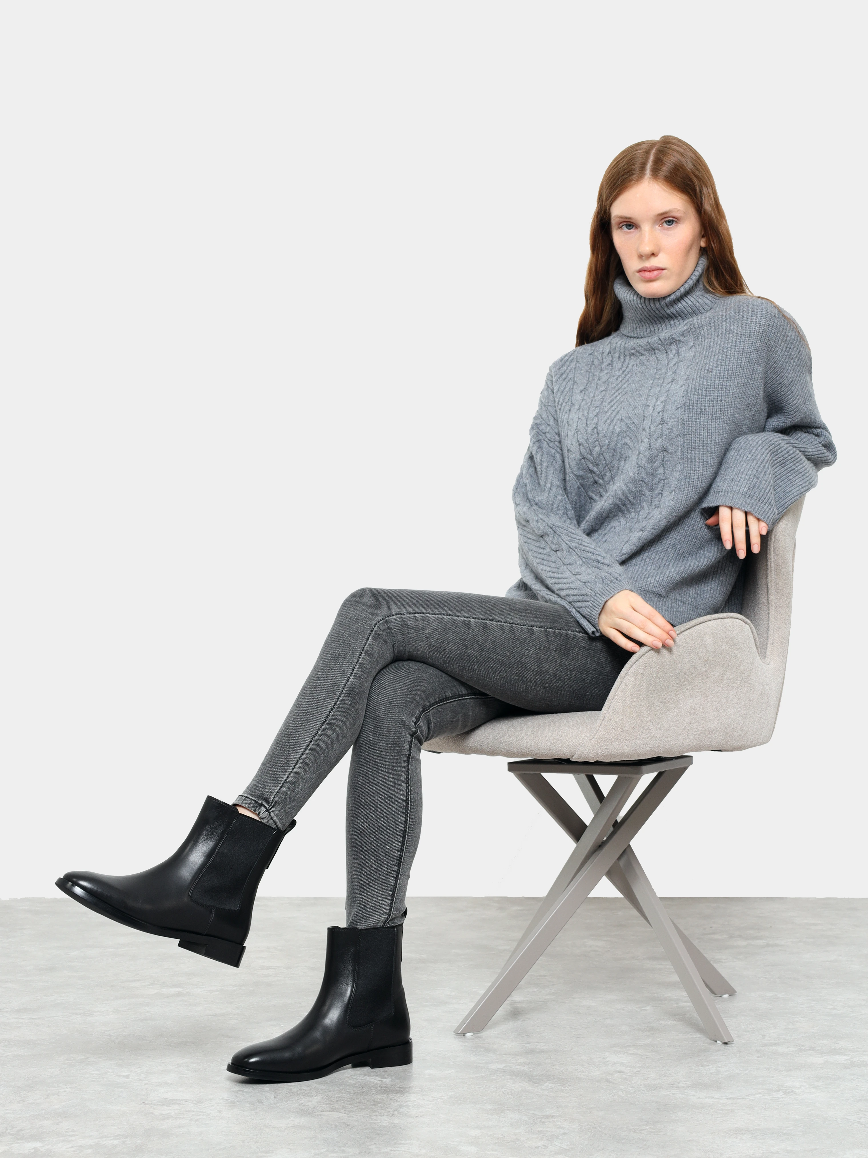 Ботинки женские зимние, цвет черный, натуральная кожа