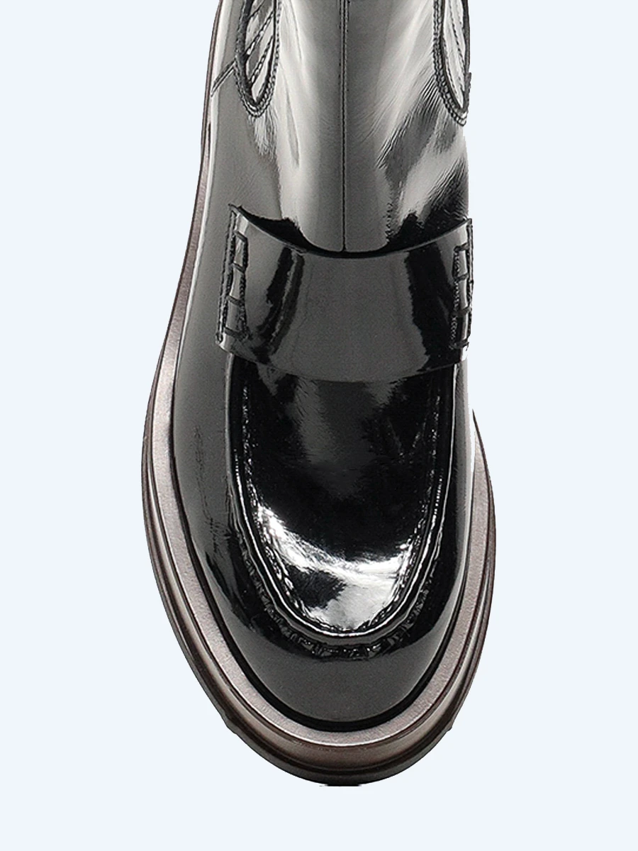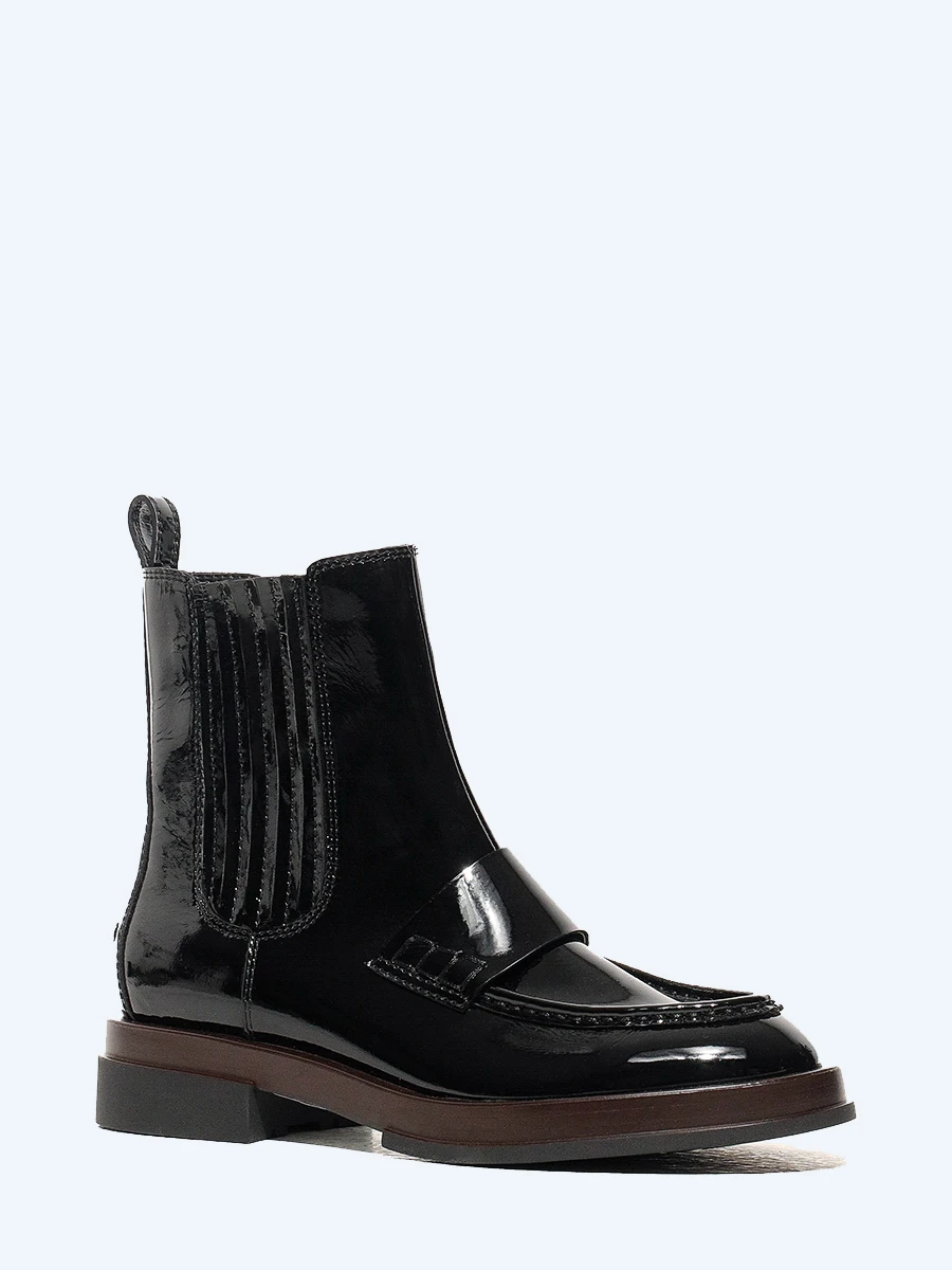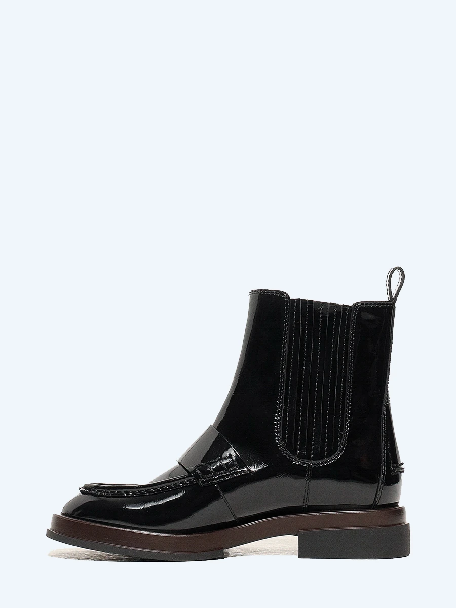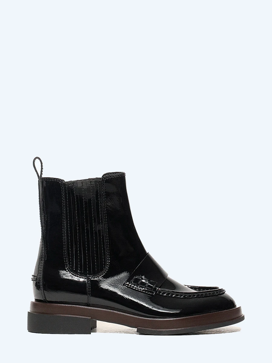 Ботинки женские демисезонные, цвет черный, натуральная лаковая кожа