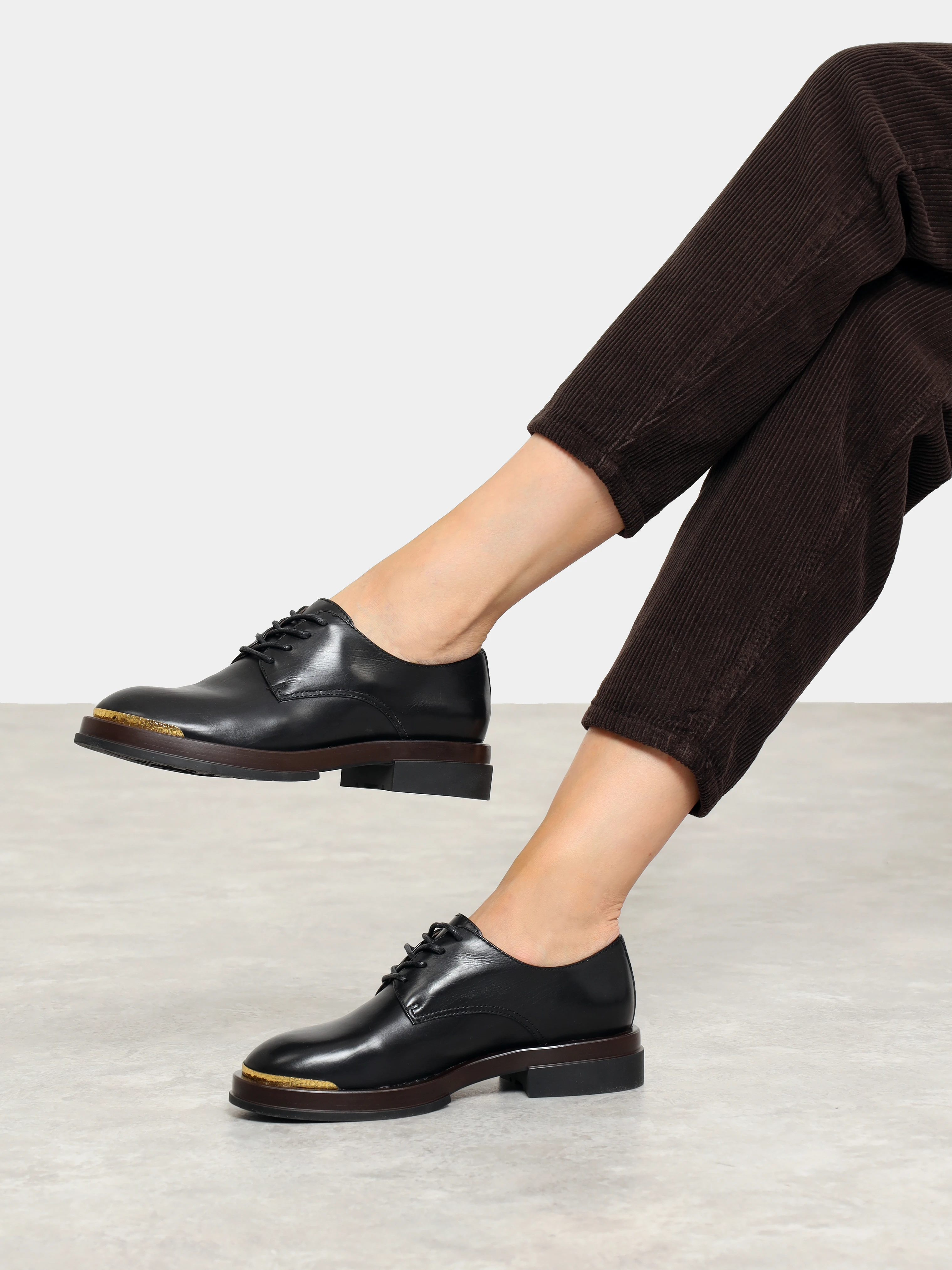 Полуботинки женские всесезонные, цвет черный, натуральная кожа