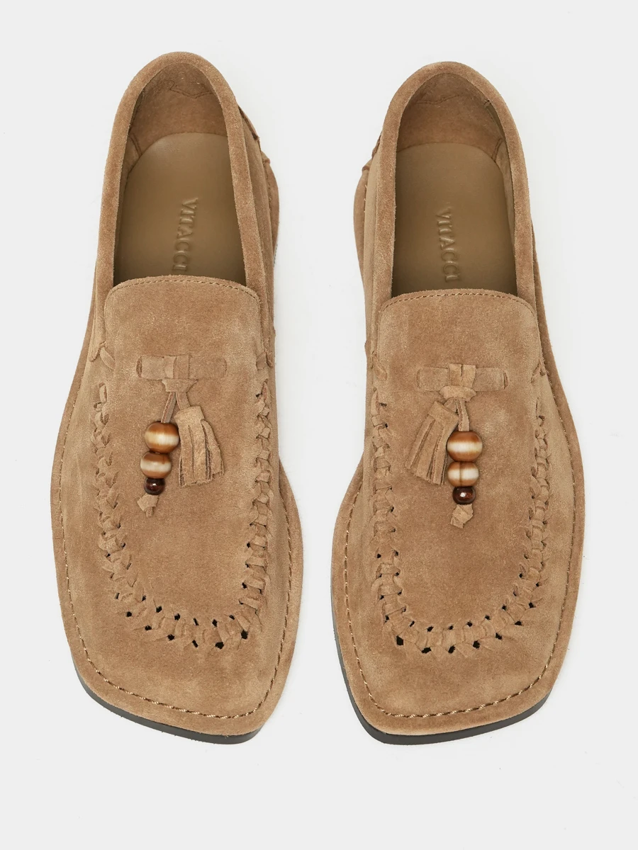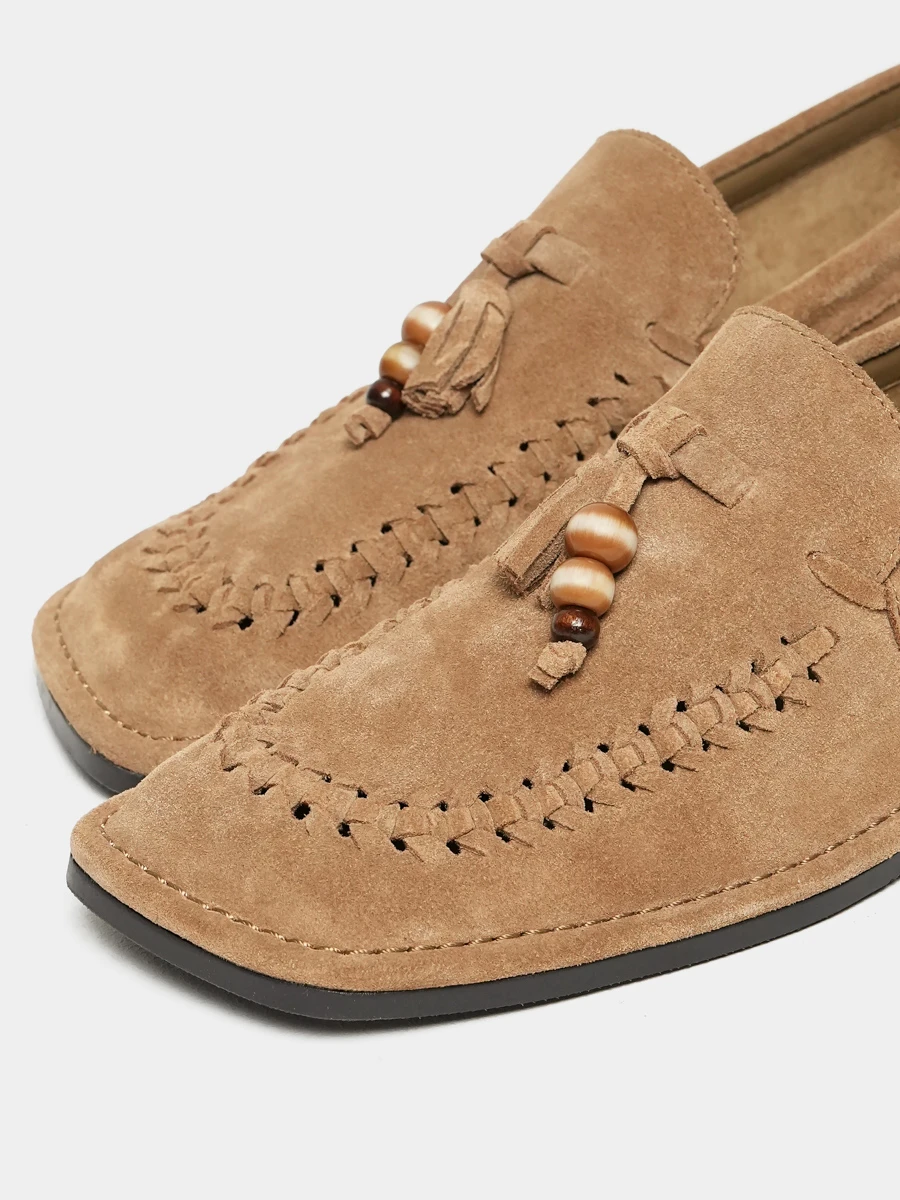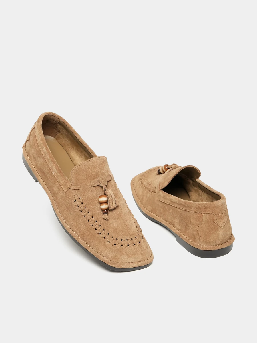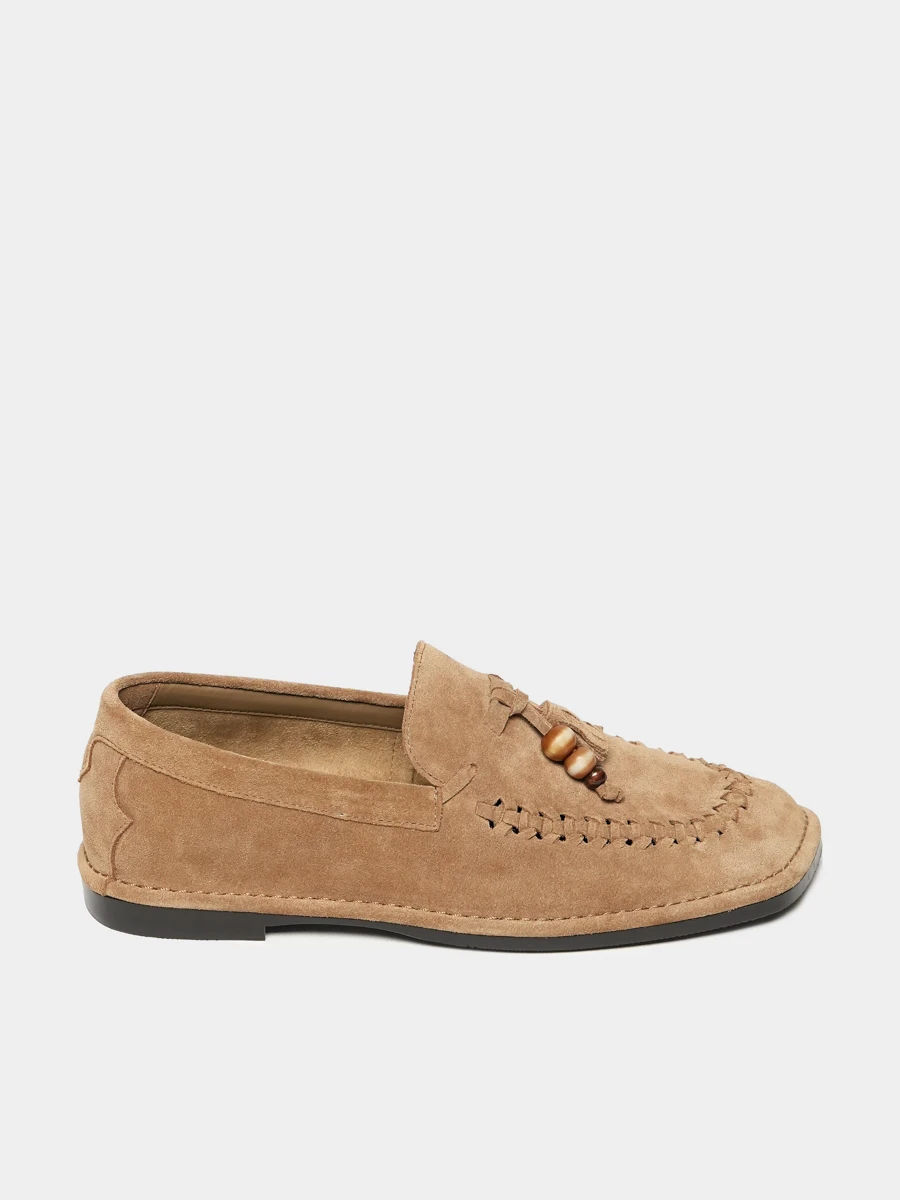 Лоферы женские летние, цвет бежевый, натуральный спилок
