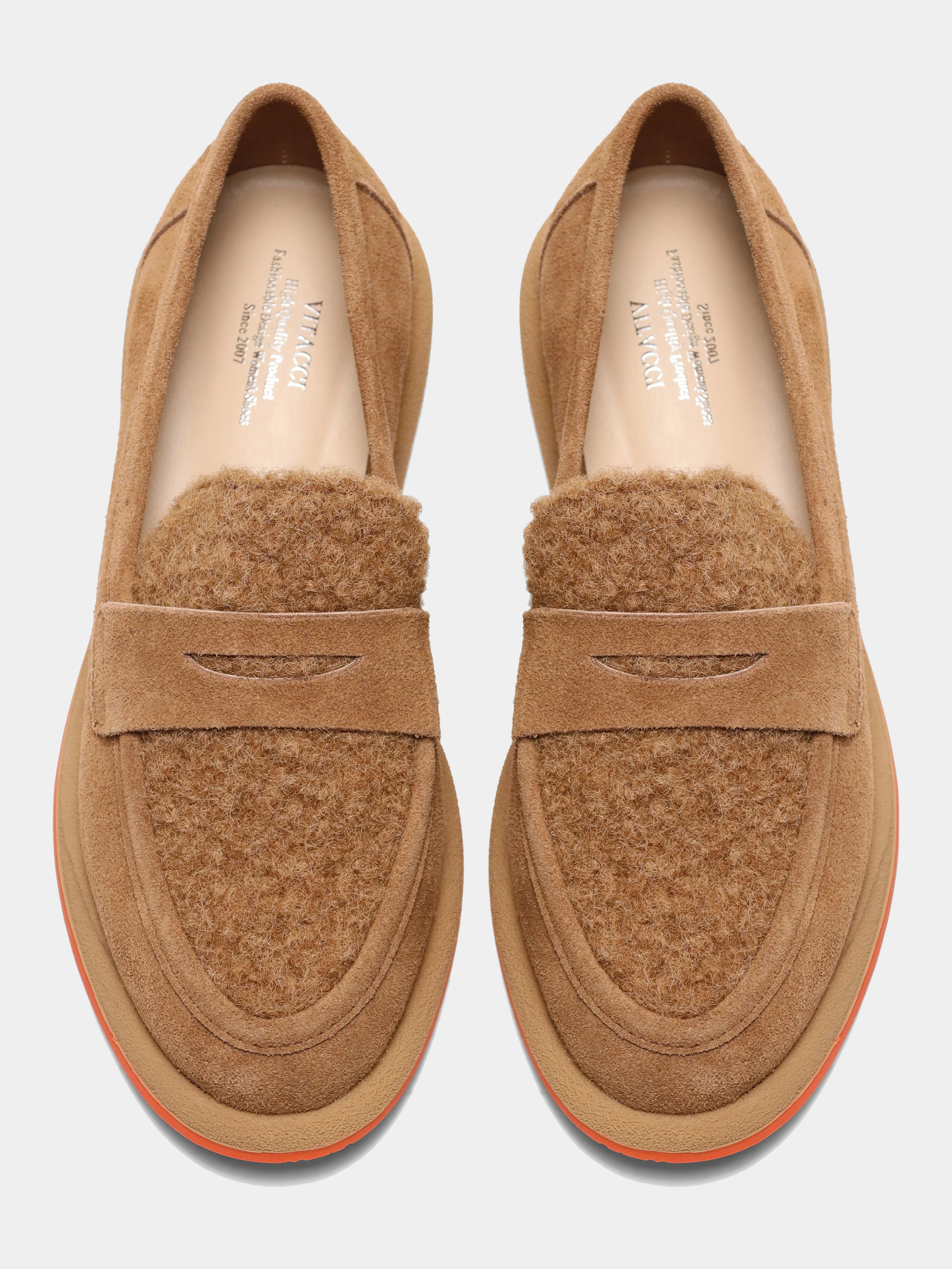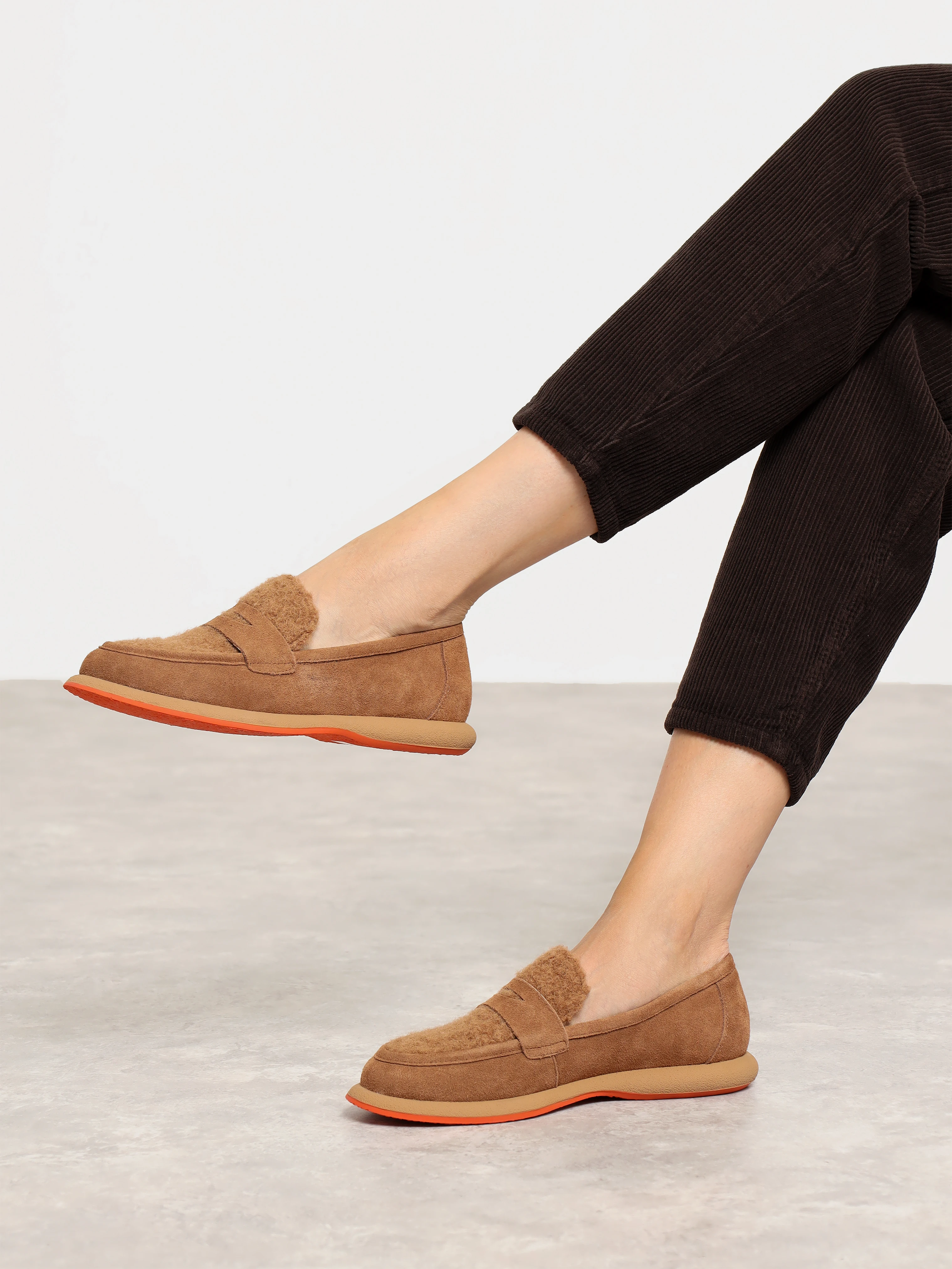 Лоферы женские всесезонные, цвет бежевый, натуральный спилок