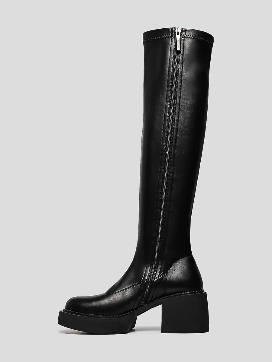 Ботфорты женские демисезонные, цвет черный, искусственная кожа