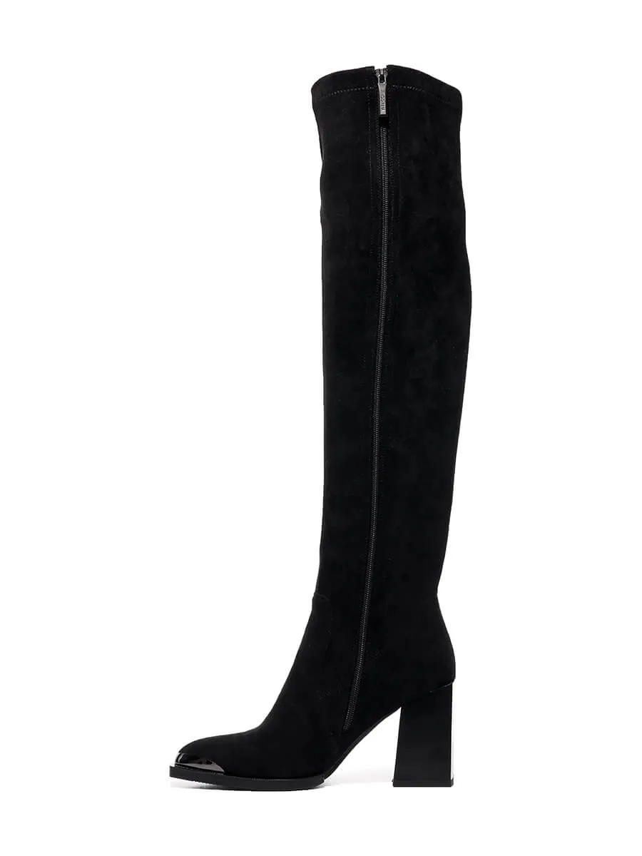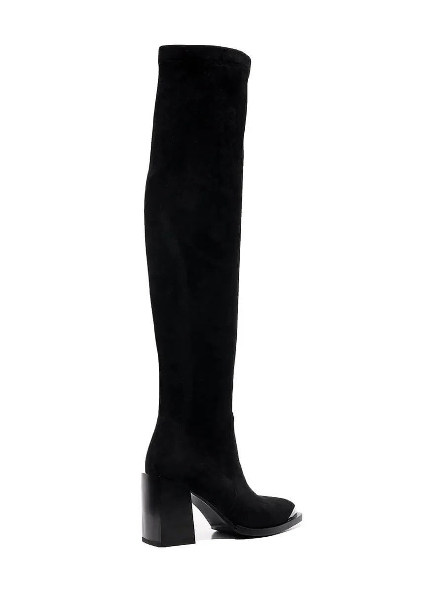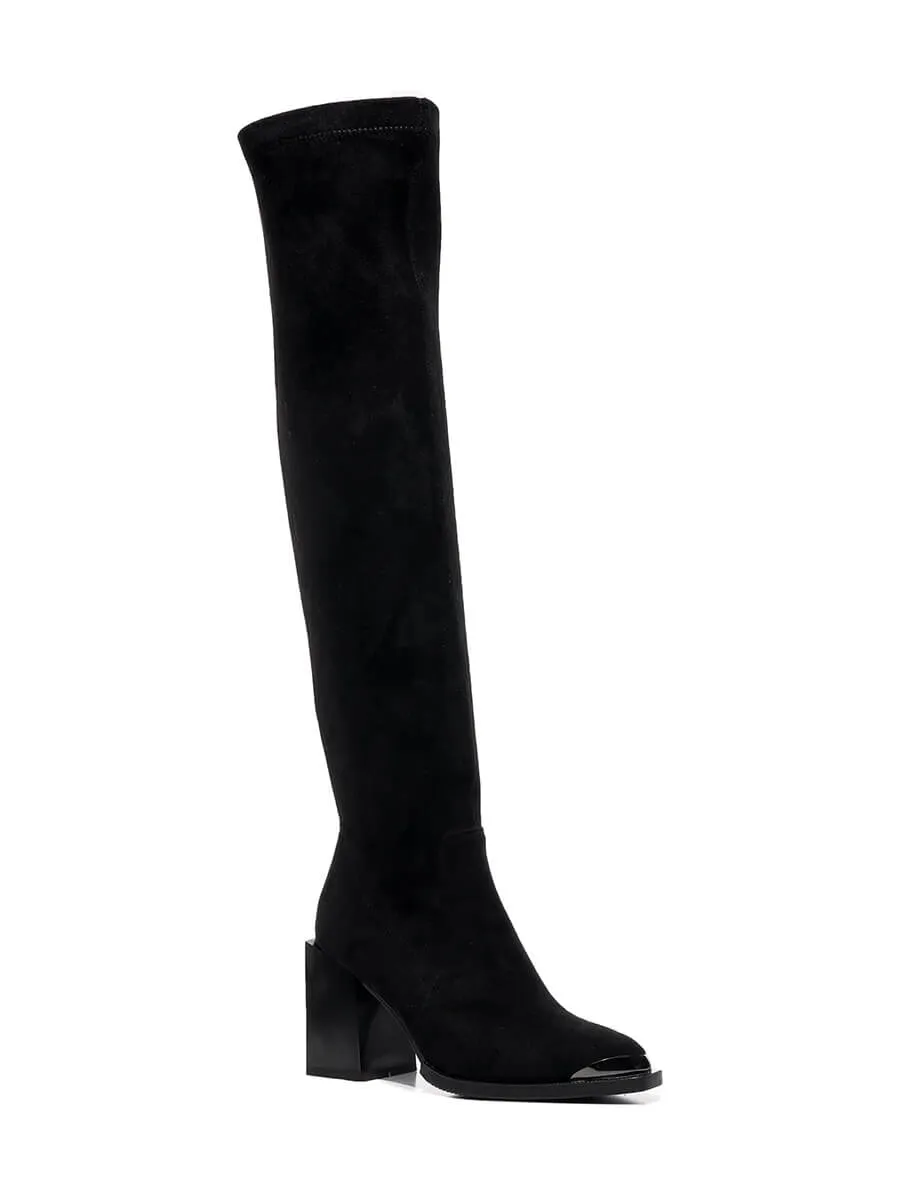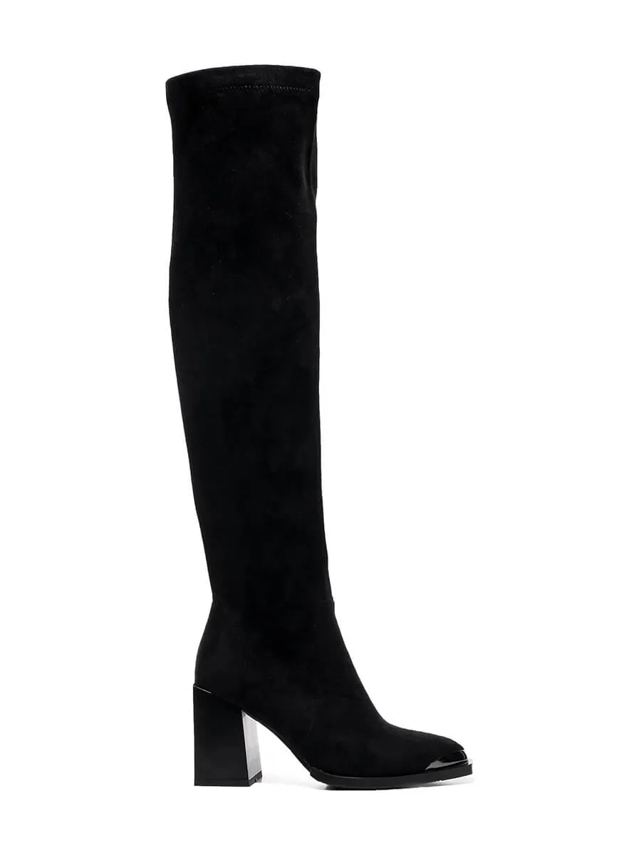 Ботфорты женские демисезонные, цвет черный, искусственный велюр