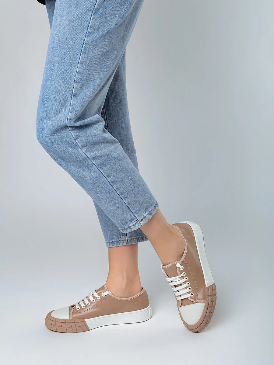 Кеды 1845282 женские цвет бежевый, искусственная кожа
