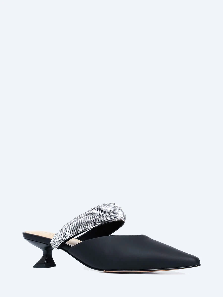 Мюли из натуральной кожи от бренда VITACCI. Необычные вечерние лодочки со стразами на устойчивом каблуке с открытой пяткой. Подойдут как для повседневной носки, так и на выпускной, торжество, праздник.