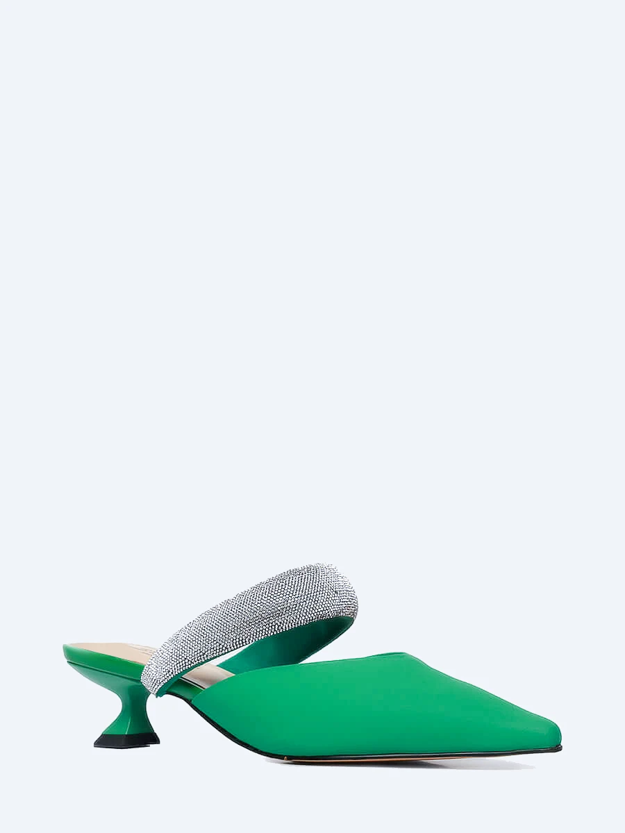 Мюли женские летние, цвет зеленый, натуральная кожа