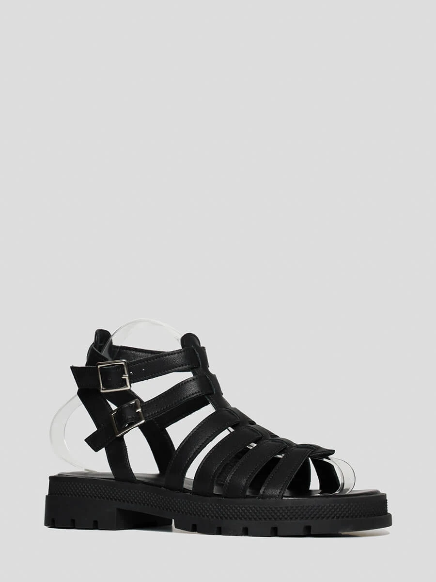 Сандалии женские летние, цвет черный, натуральная кожа и полимерные материалы