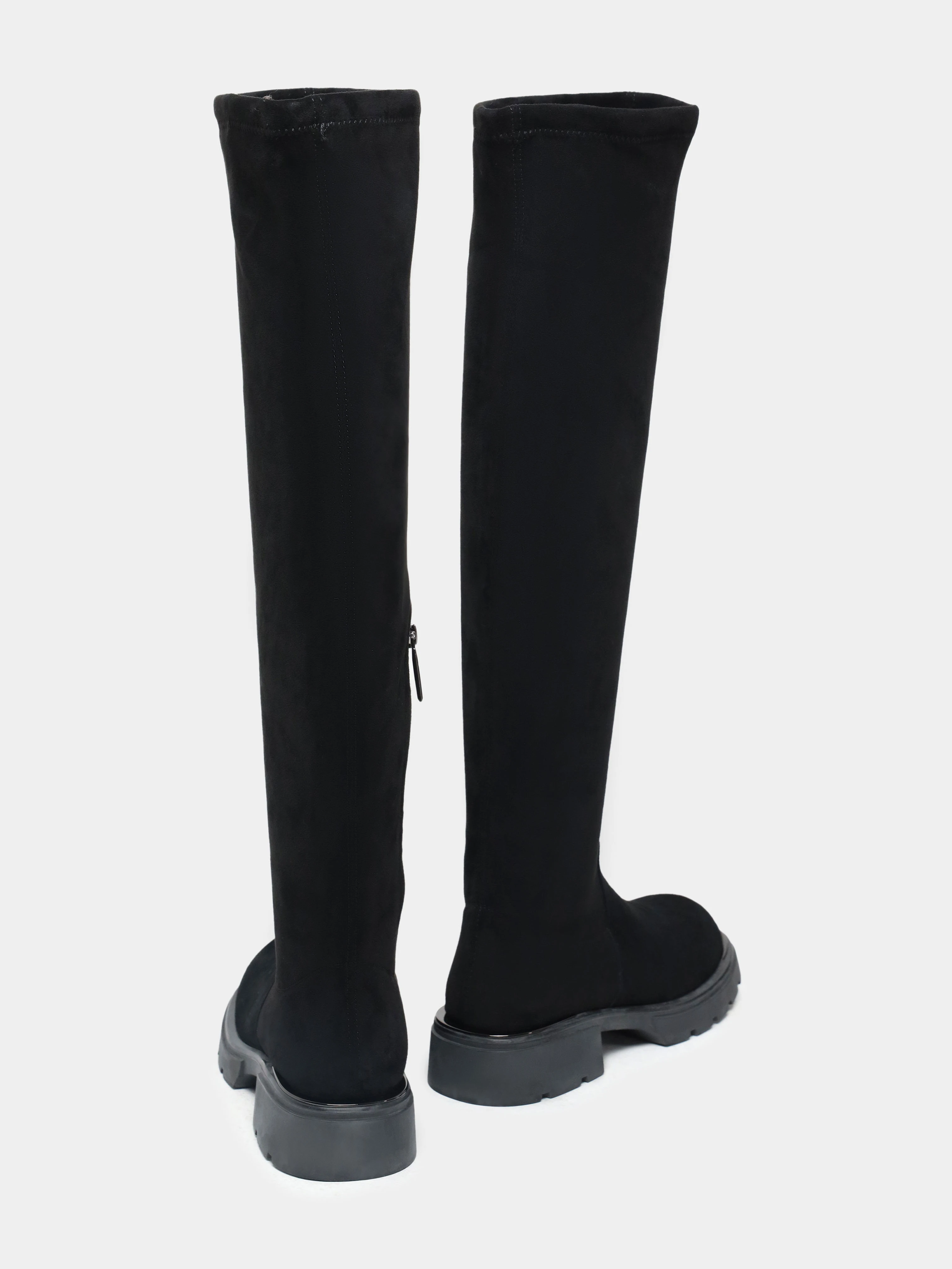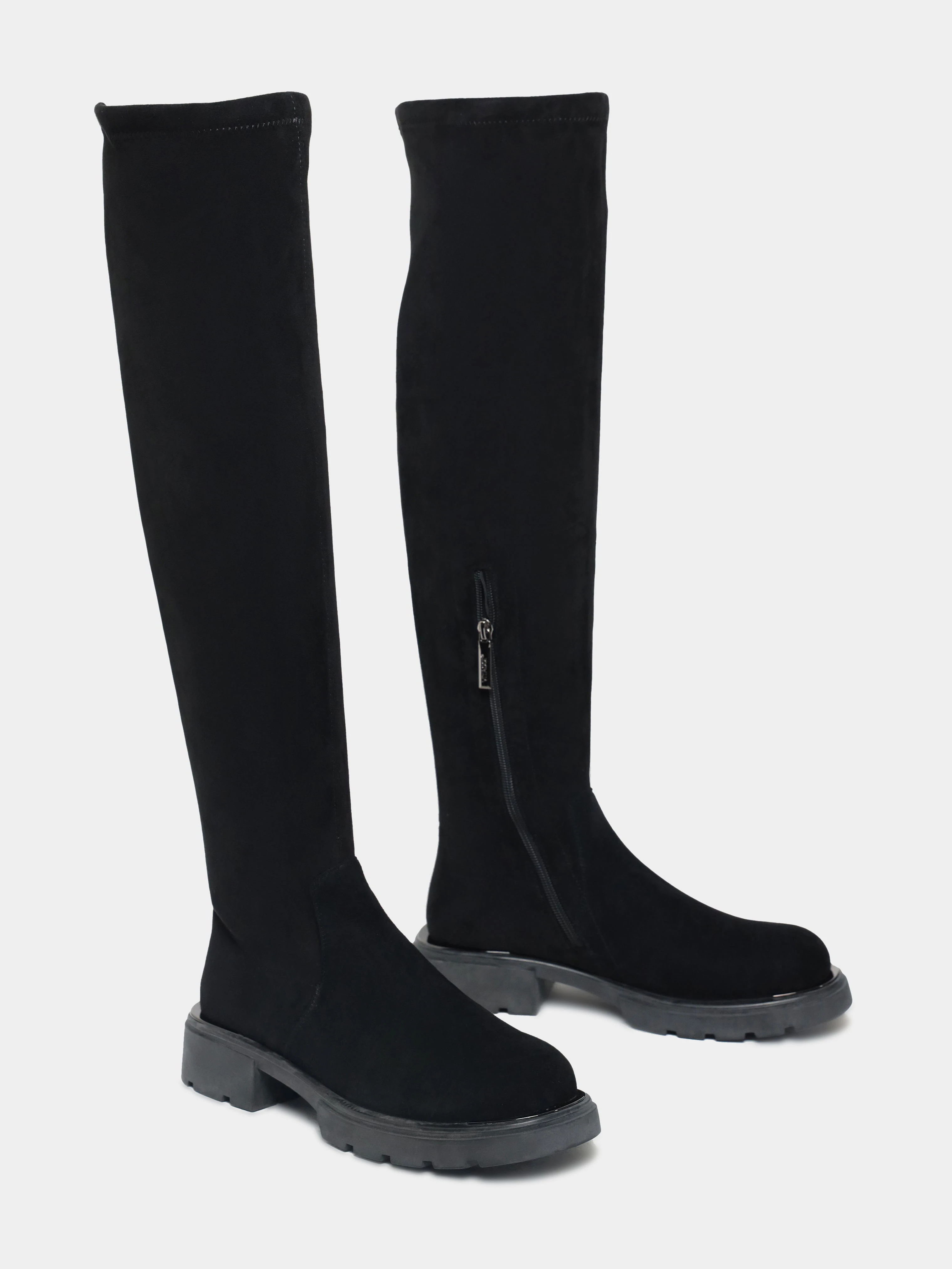 Ботфорты женские демисезонные, цвет черный, текстиль/натуральный велюр