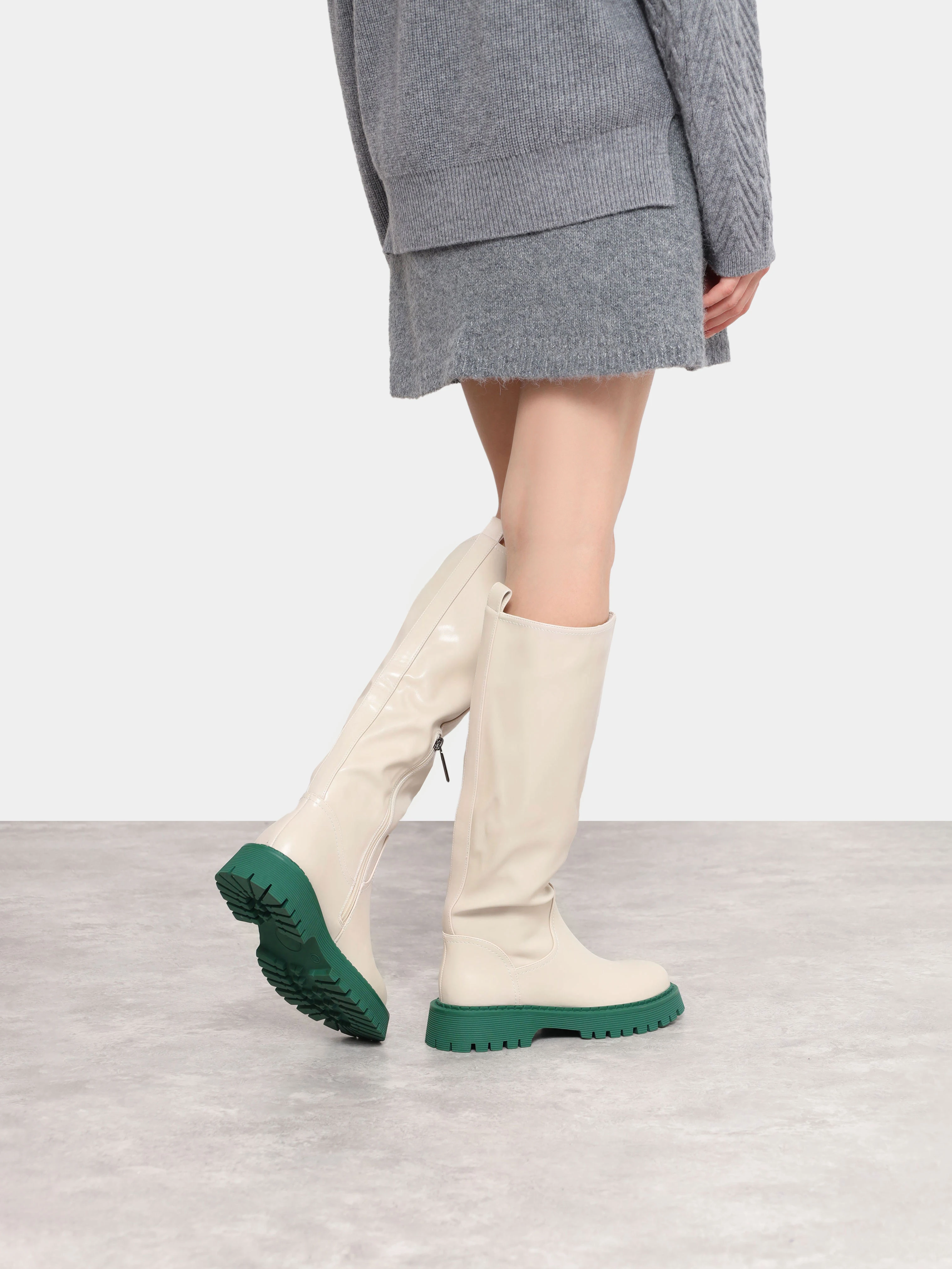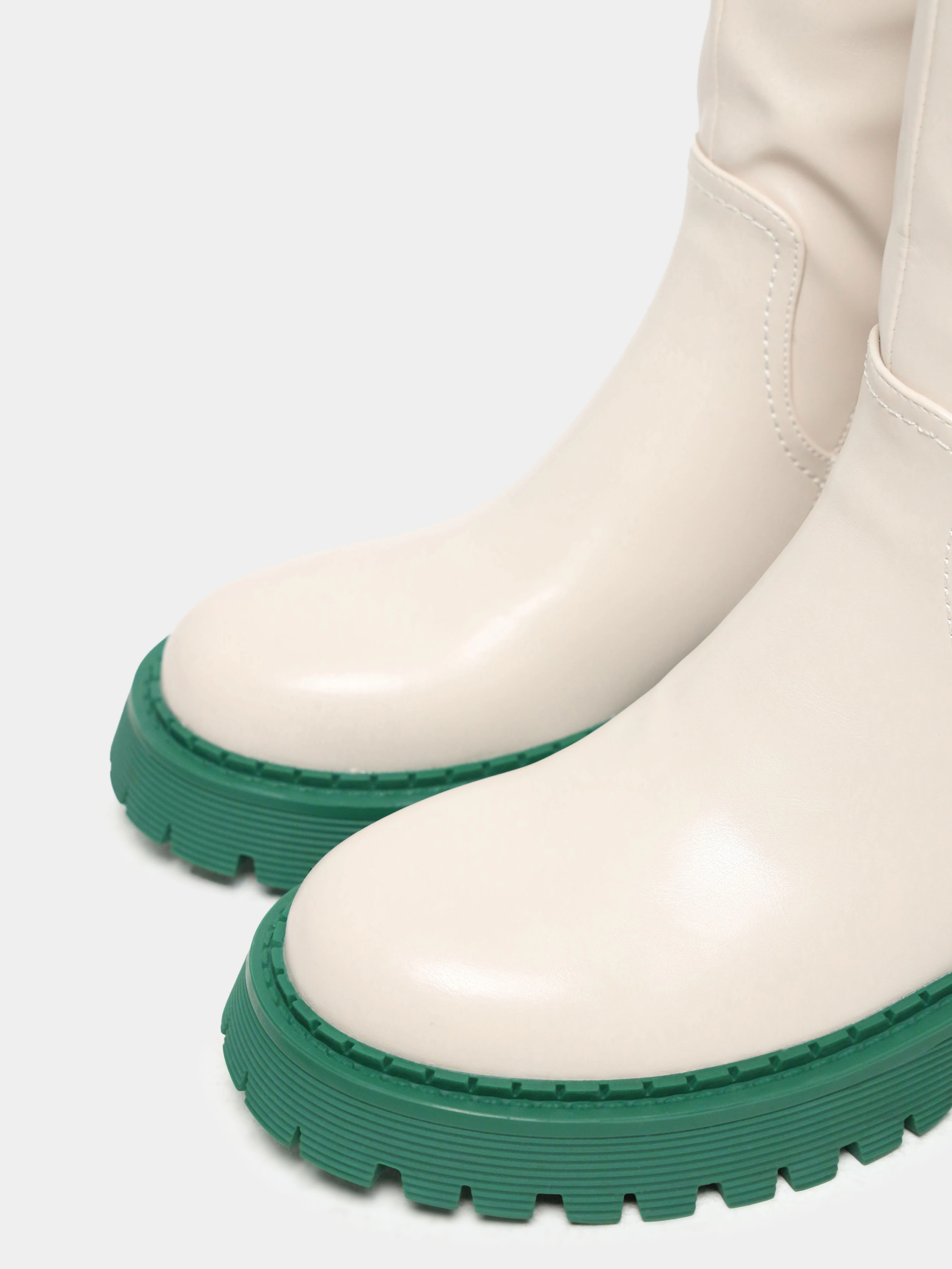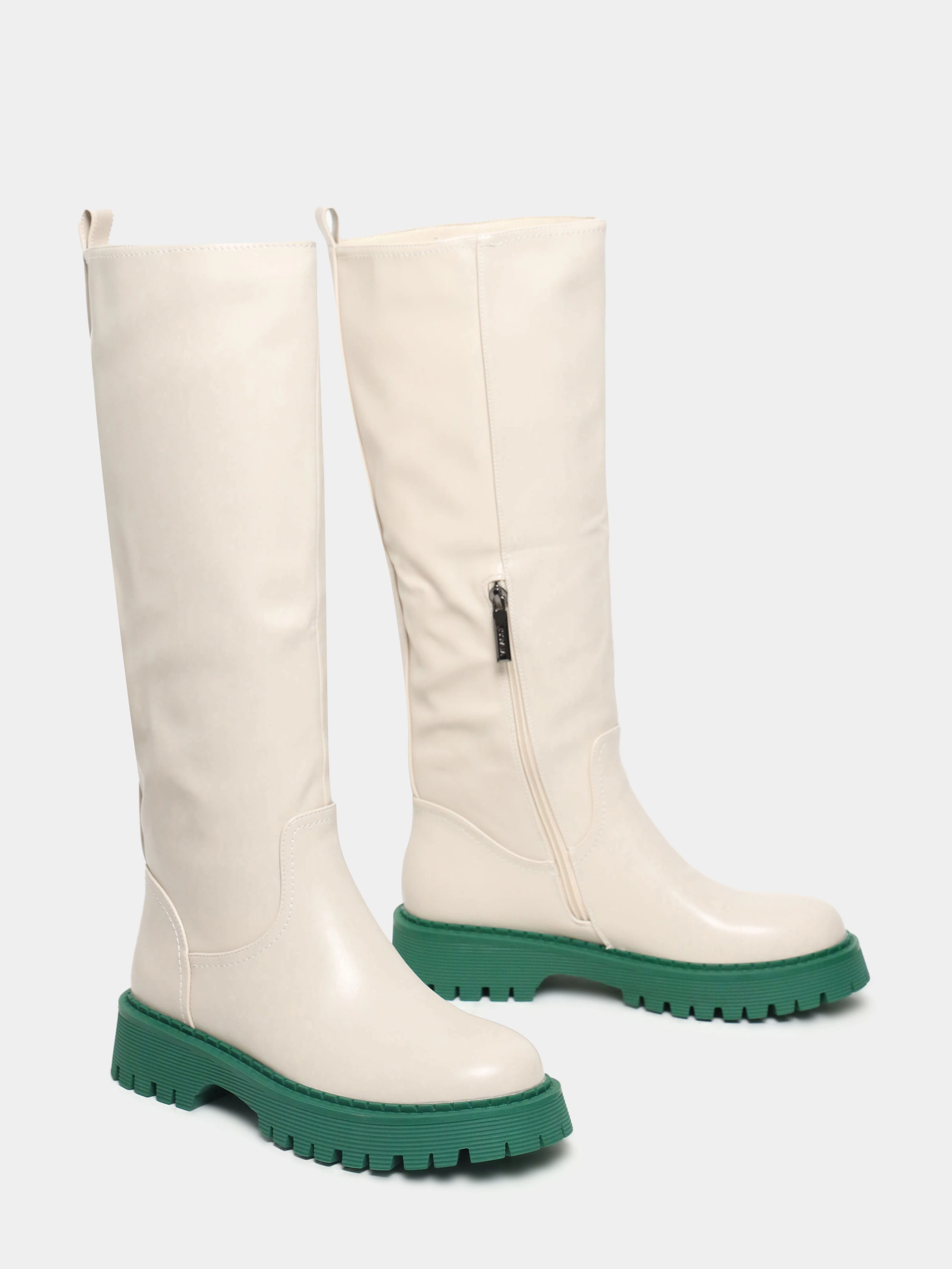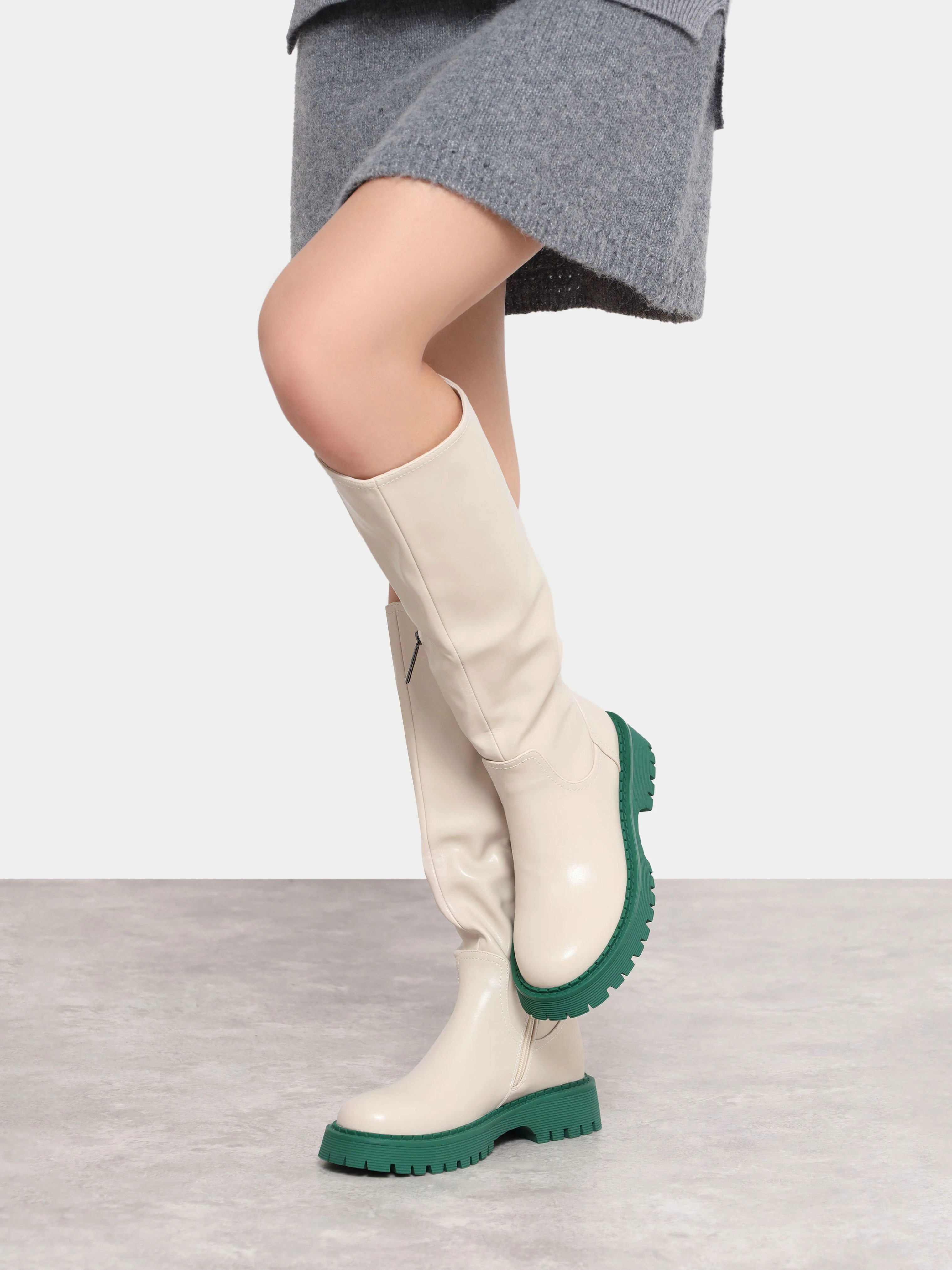Сапоги женские демисезонные, цвет молочный, искусственная кожа