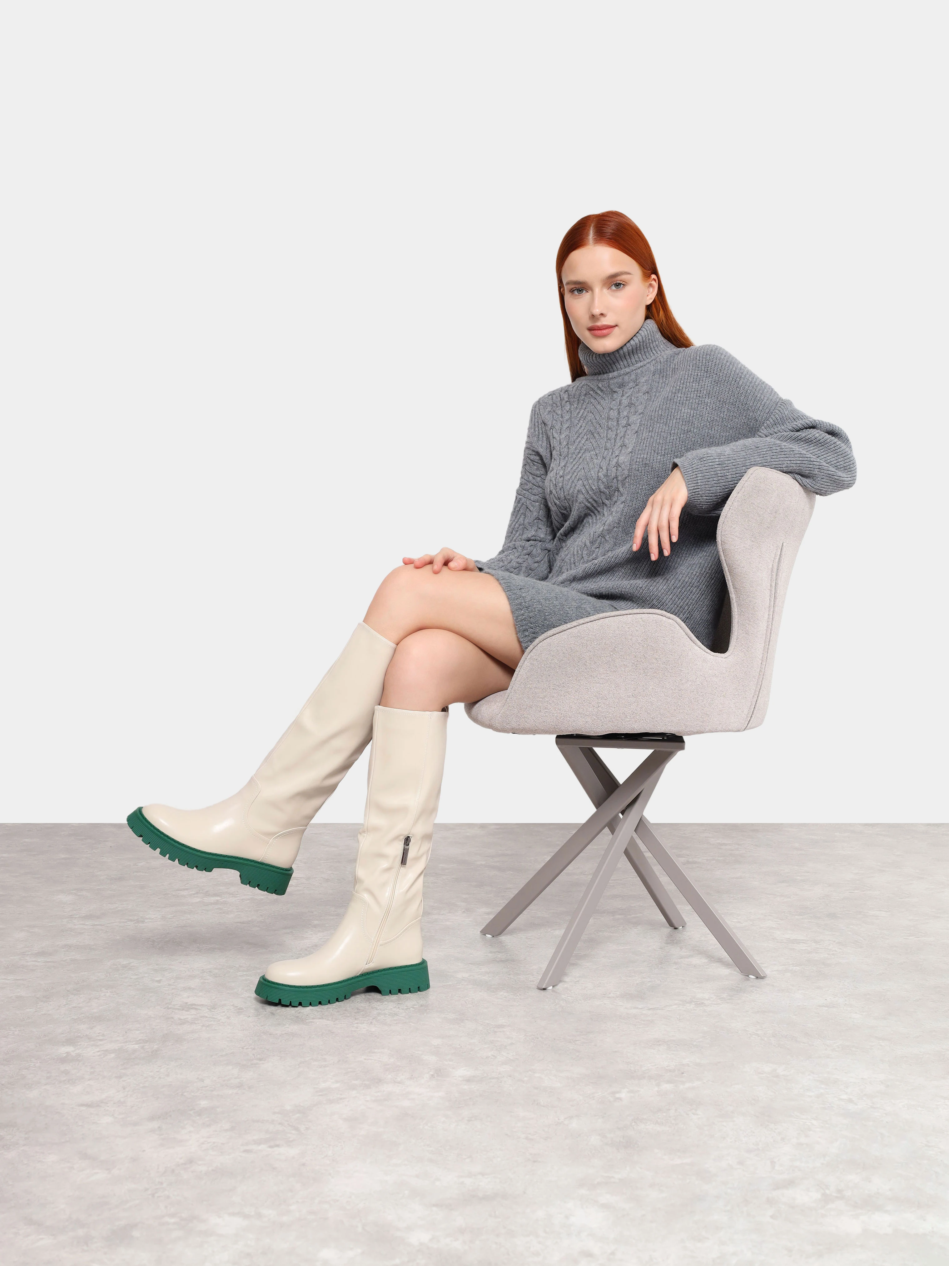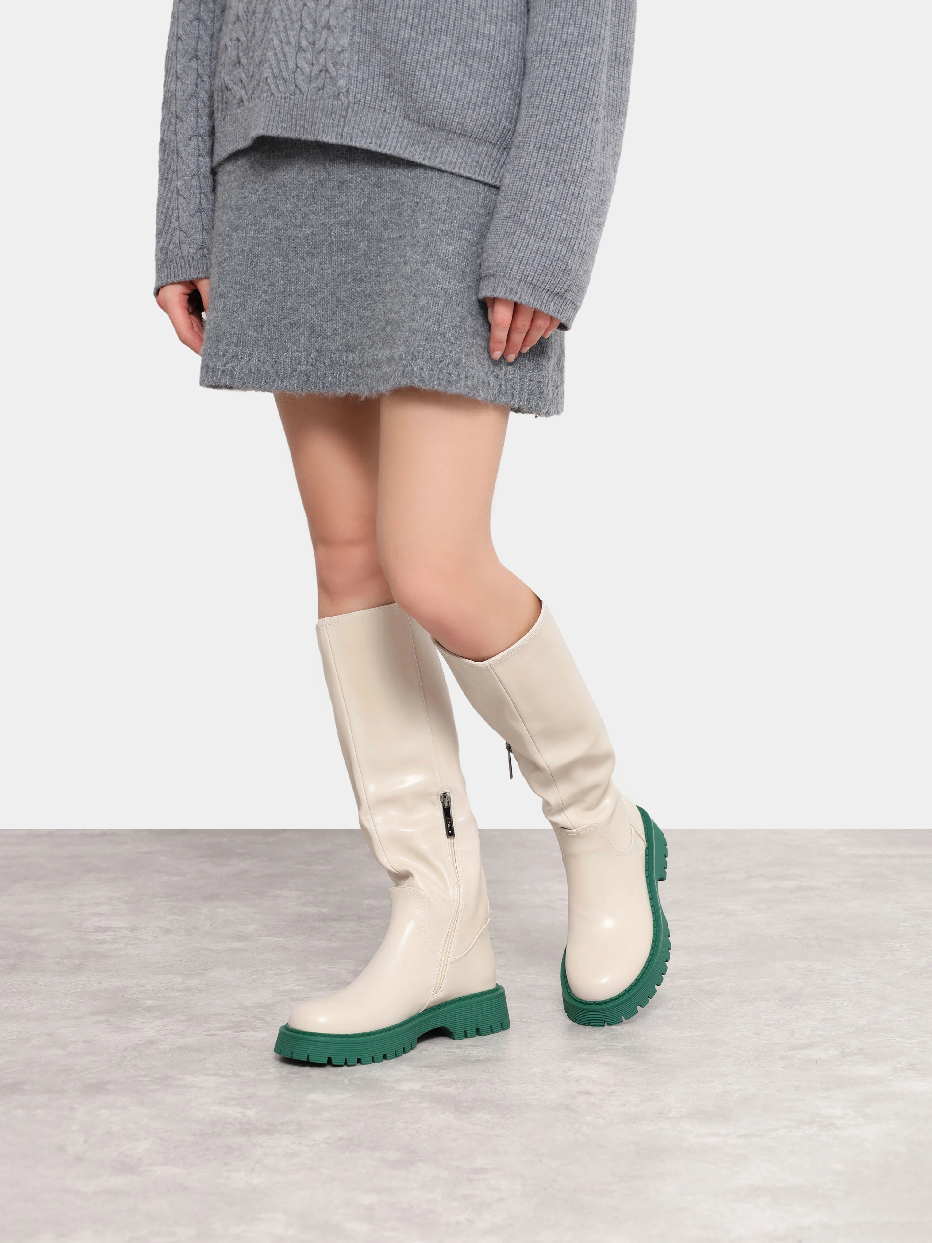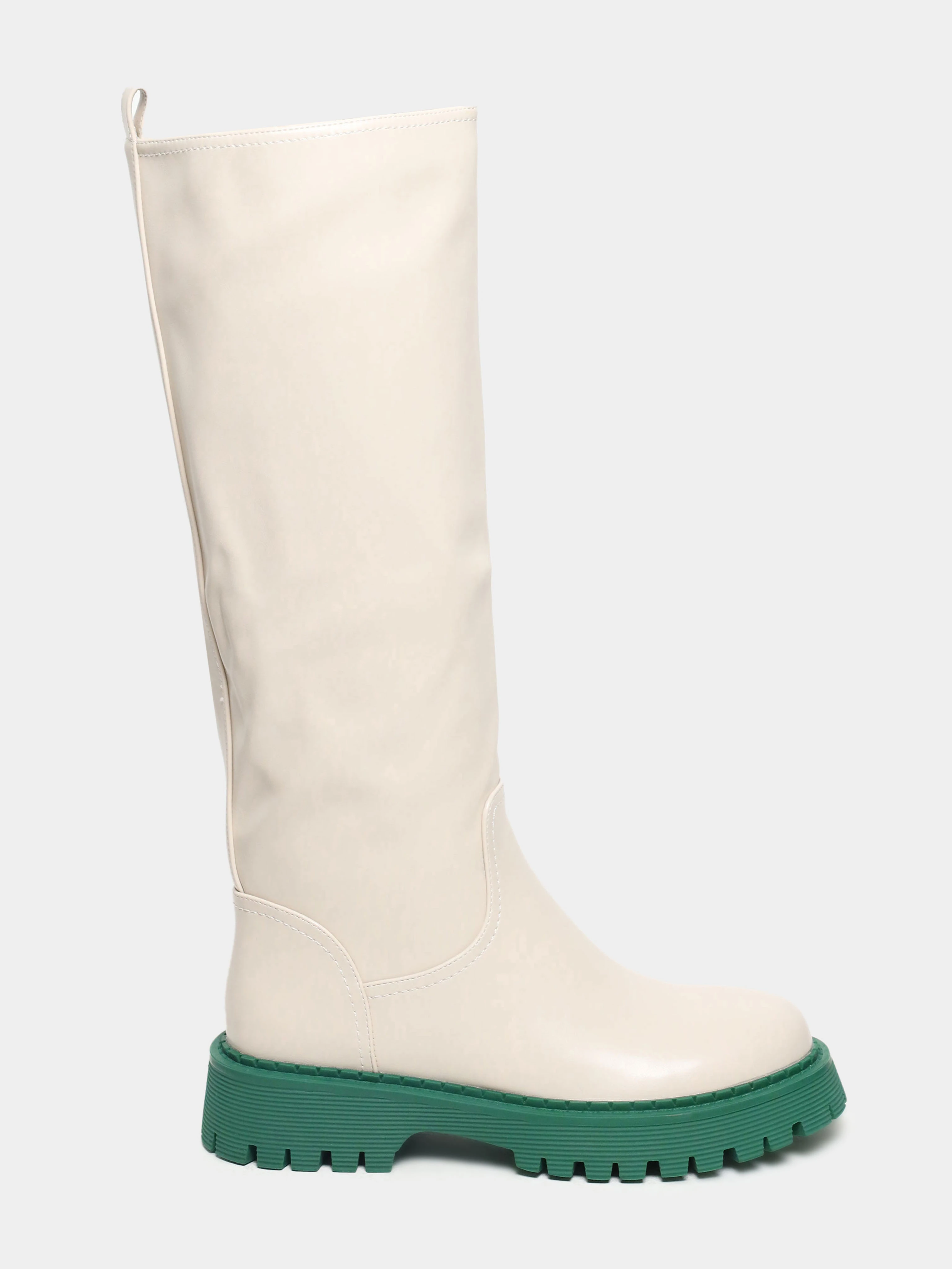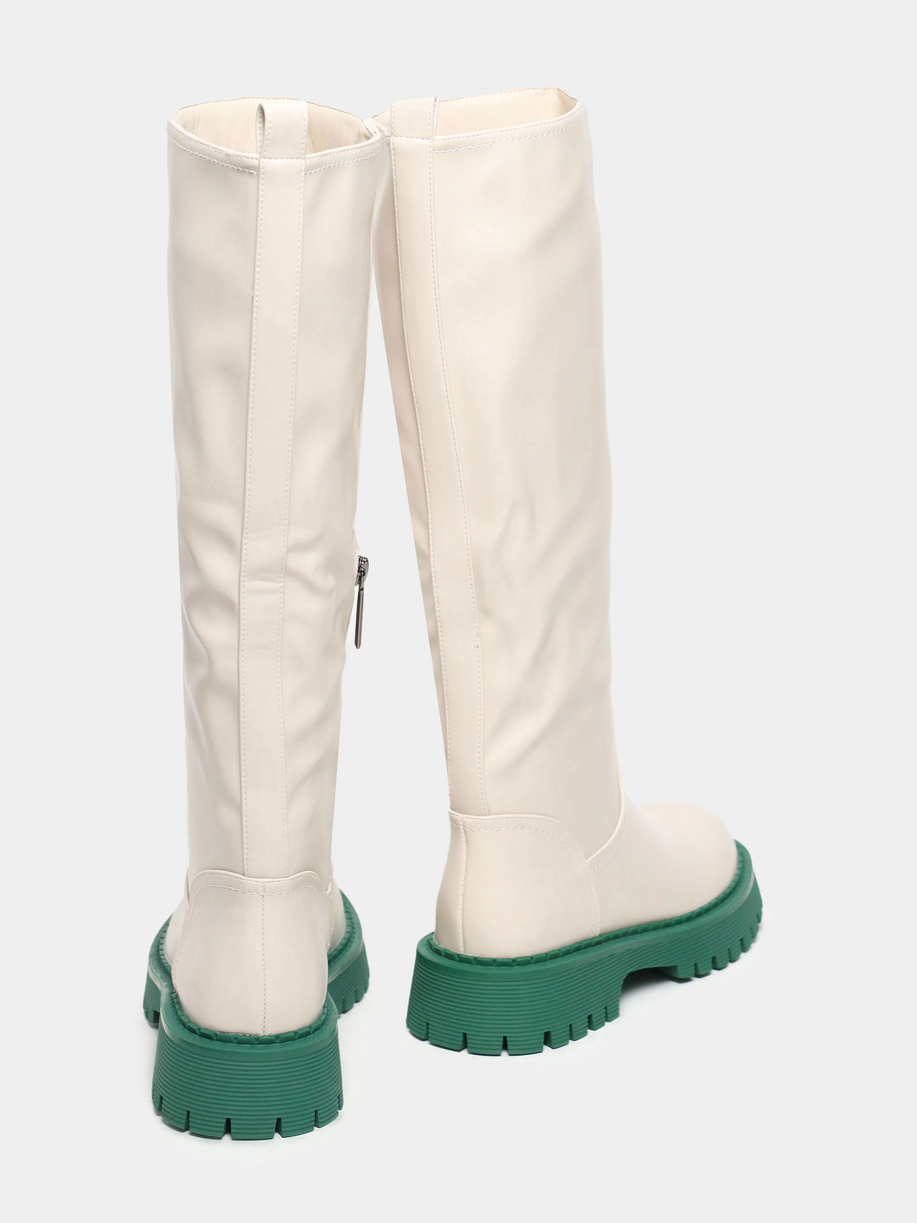 Сапоги женские демисезонные, цвет молочный, искусственная кожа