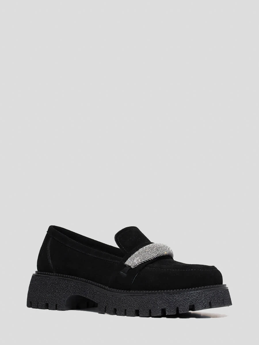 Лоферы женские всесезонные, цвет черный, натуральный спилок