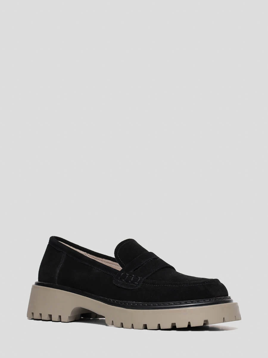 Лоферы женские всесезонные, цвет черный, натуральный спилок