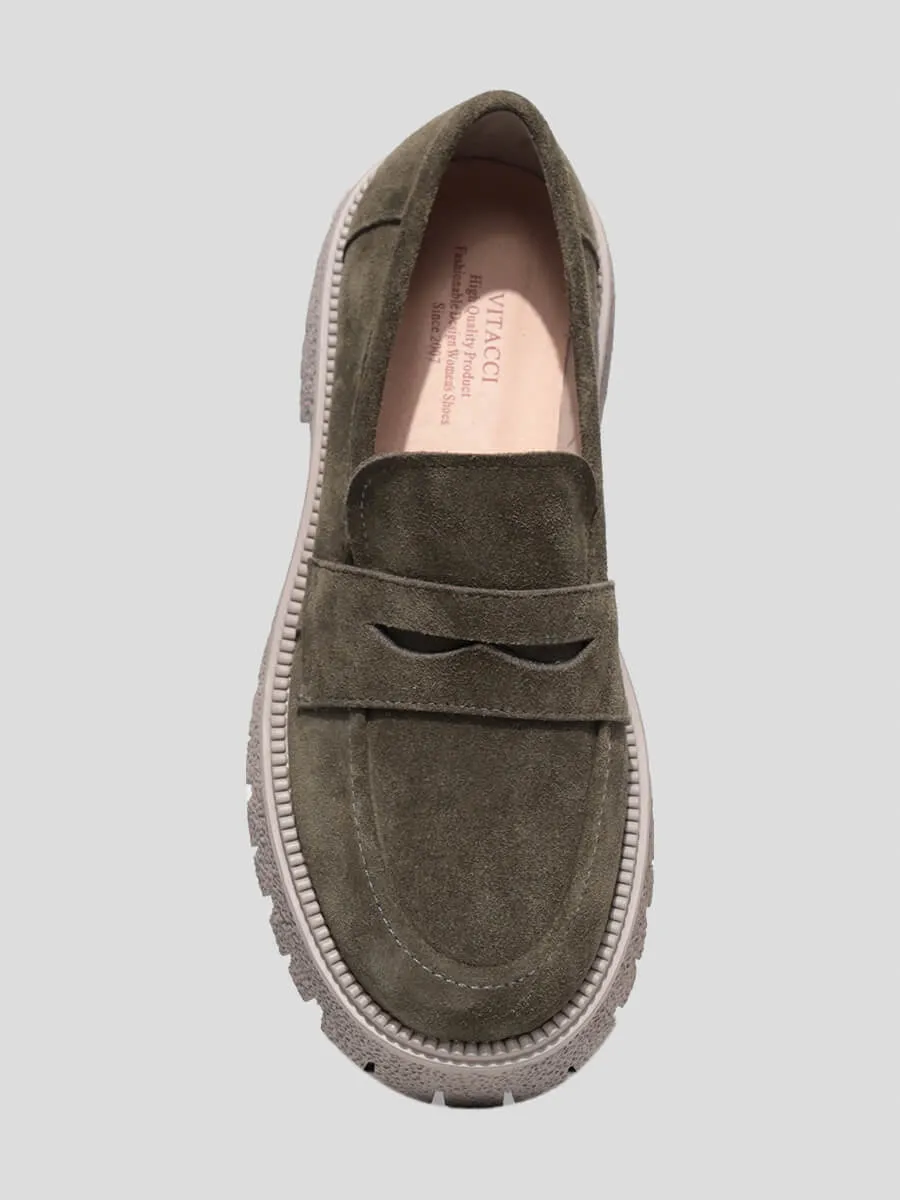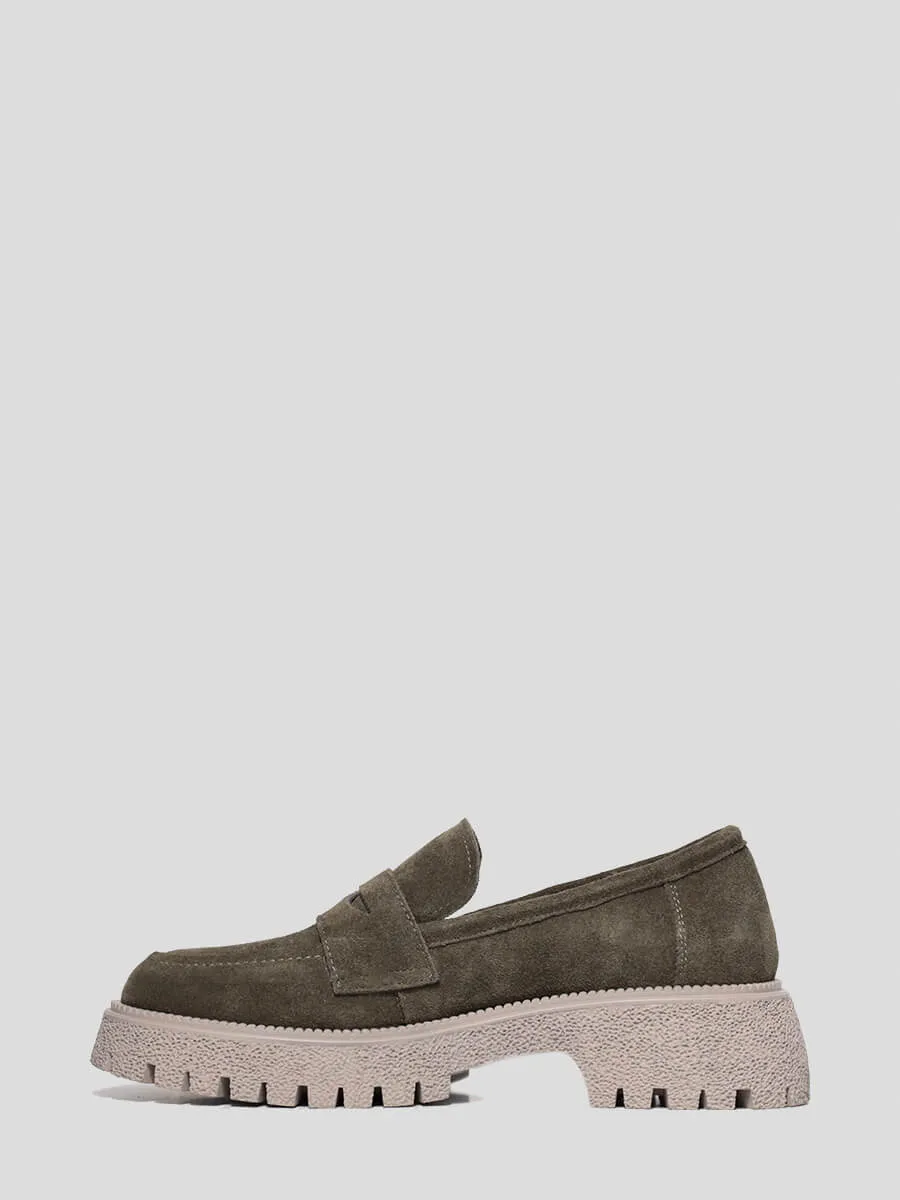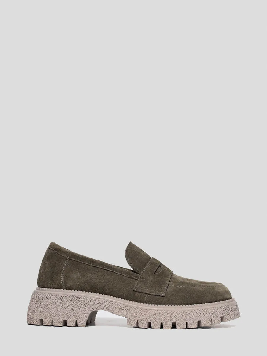 Лоферы женские всесезонные, цвет хаки, натуральный спилок 1847602 | 2