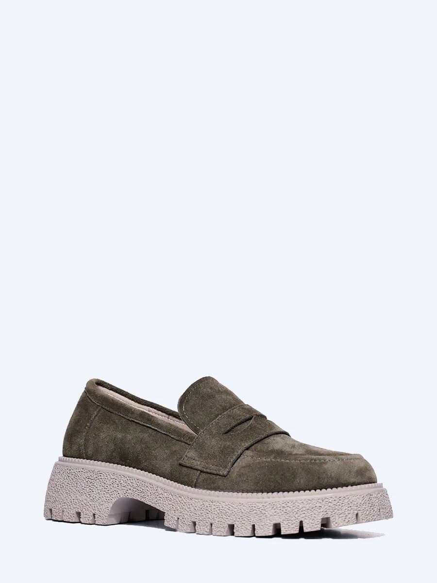 Лоферы женские всесезонные, цвет хаки, натуральный спилок 1847602 | 1