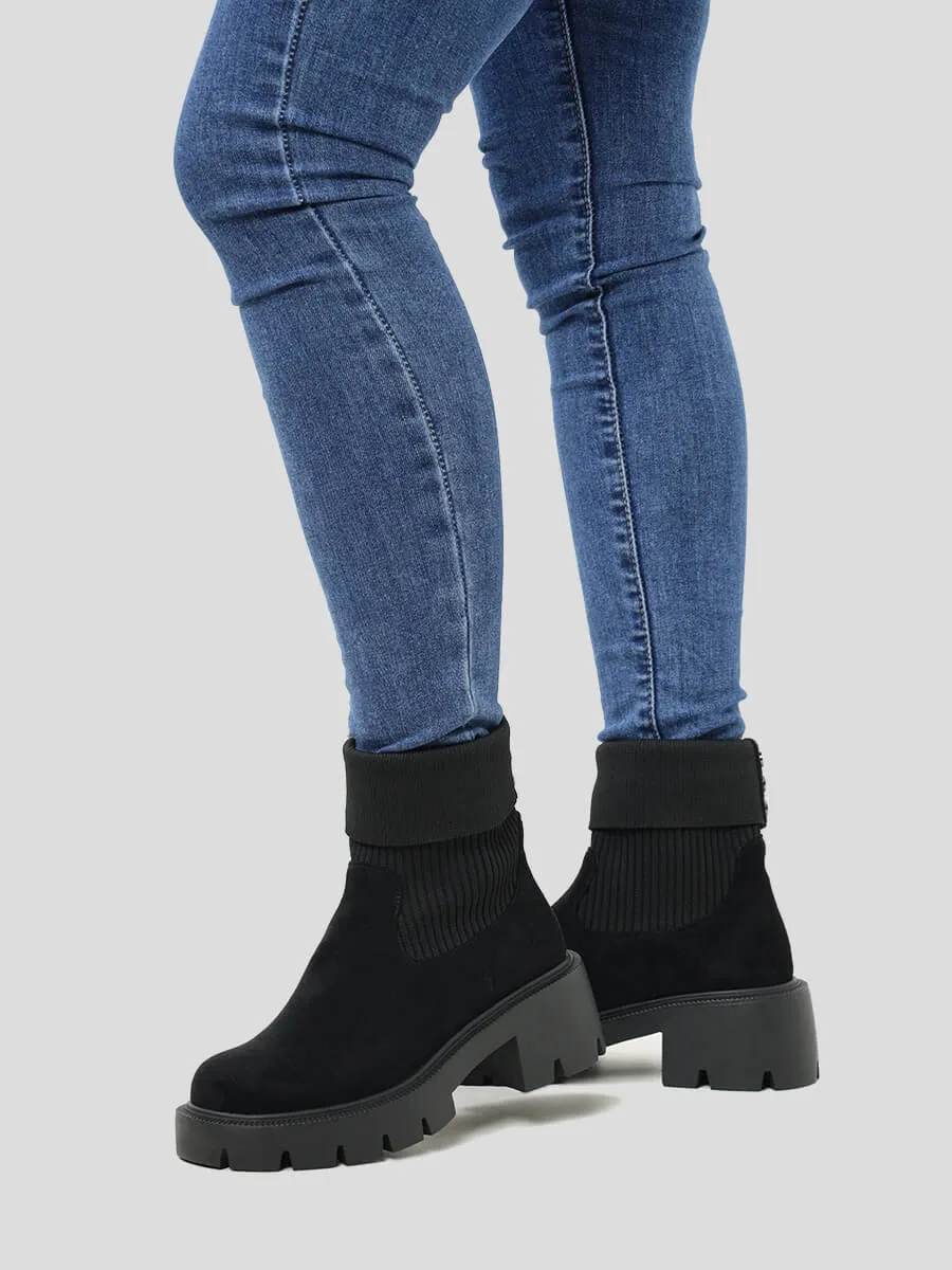 Полусапоги женские демисезонные, цвет черный, искусственный велюр