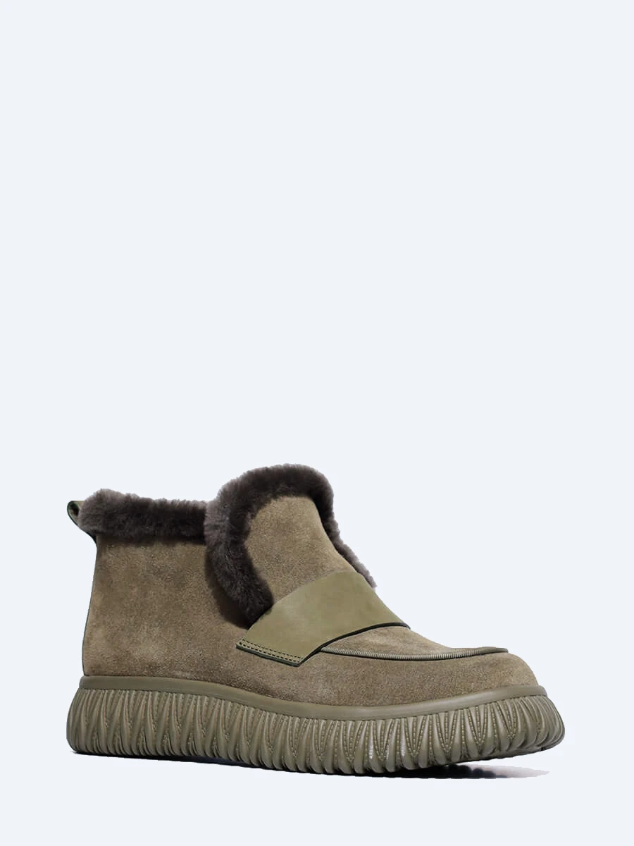 Ботинки женские зимние, цвет хаки, натуральный спилок/натуральная кожа