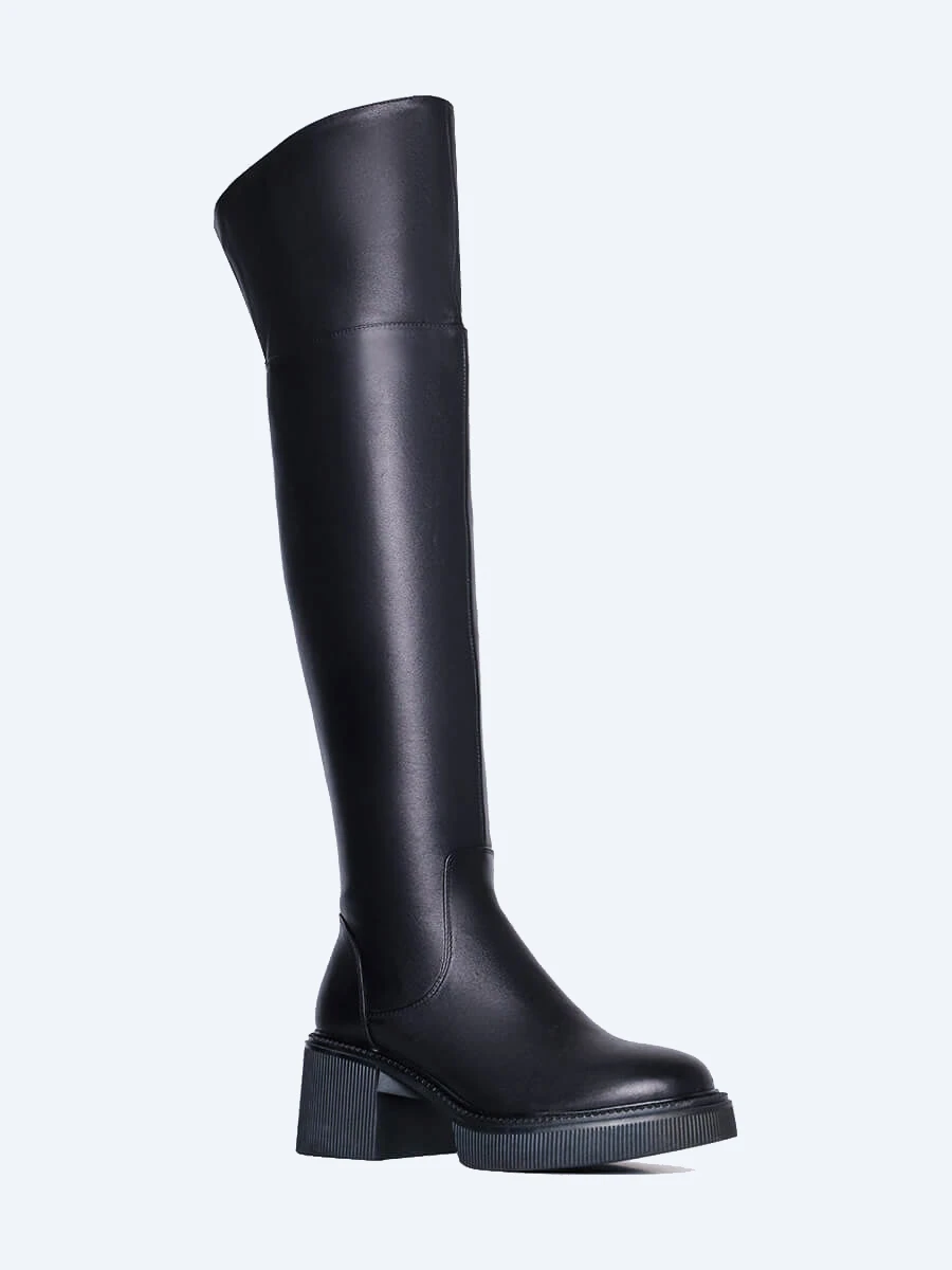Ботфорты женские зимние, цвет черный, натуральная кожа