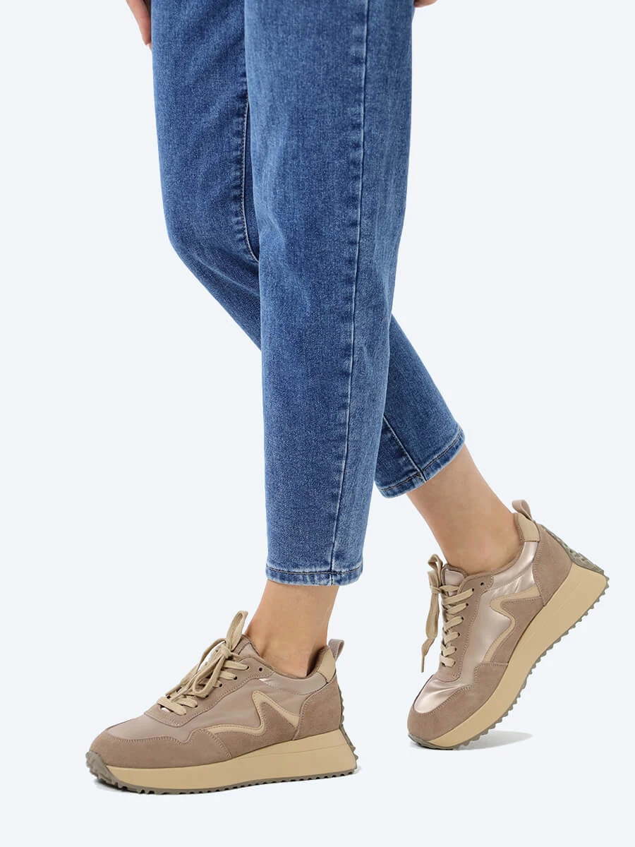 Кроссовки женские демисезонные, цвет коричневый, текстиль/натуральная кожа и полимерные материалы