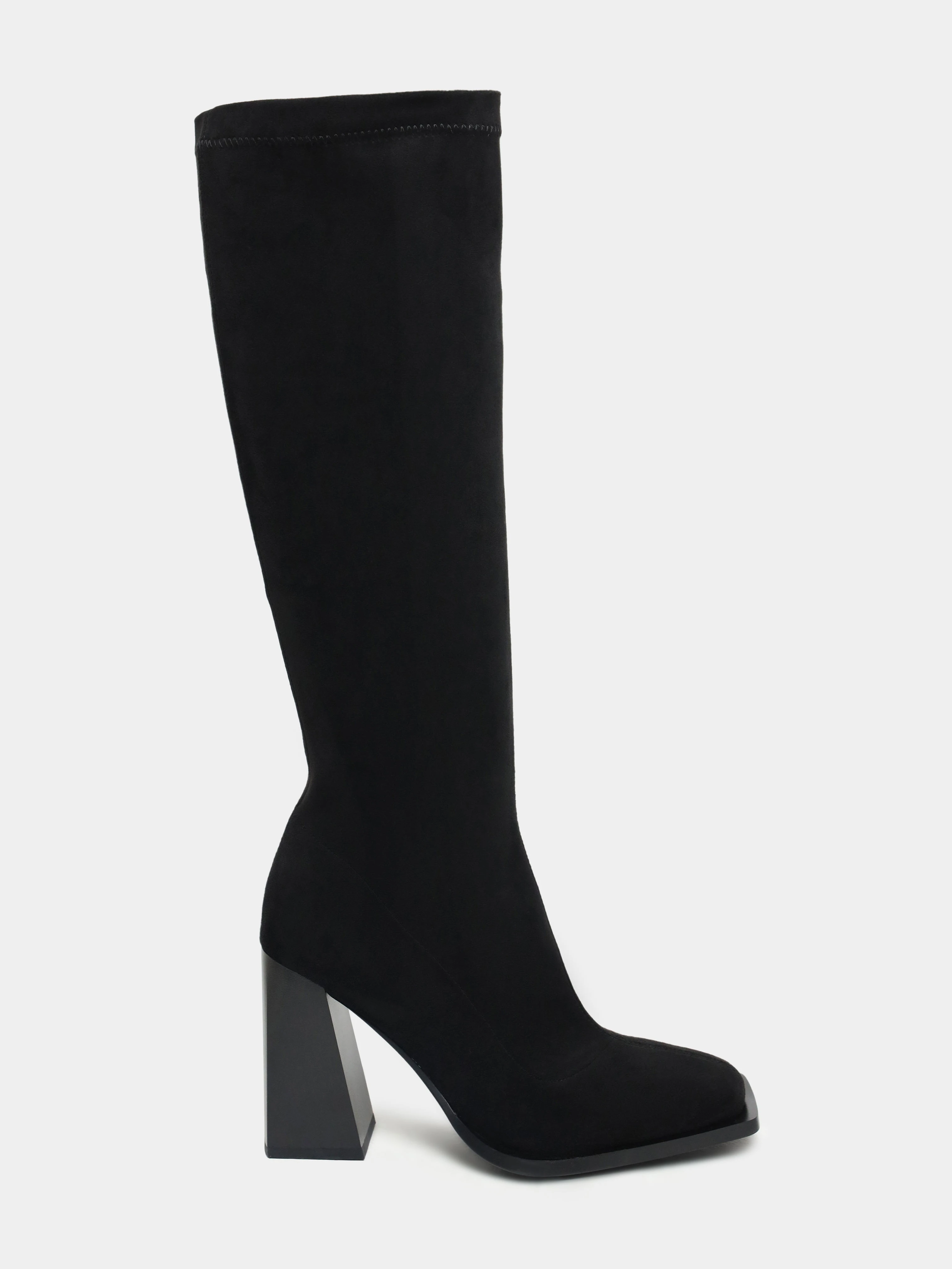 Сапоги женские демисезонные, цвет черный, искусственный велюр