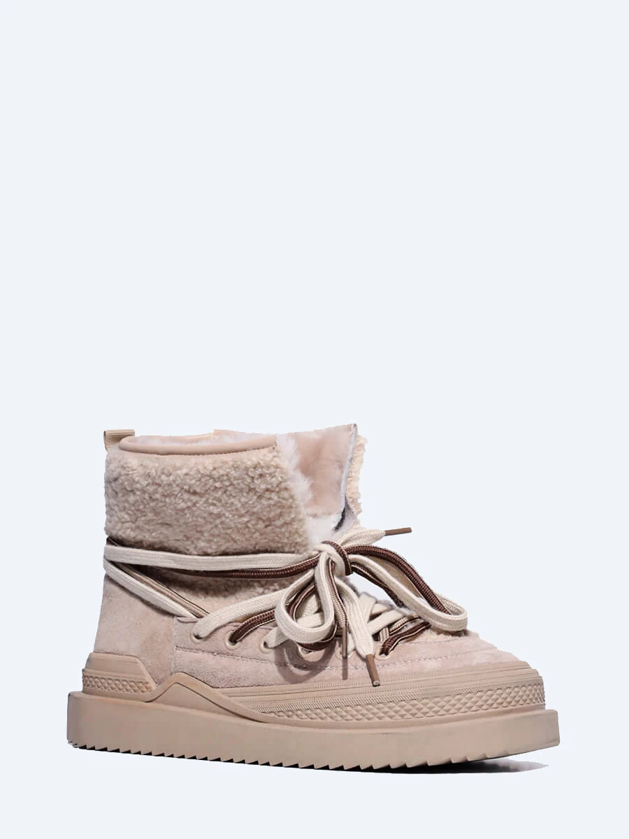 Полусапоги женские зимние, цвет бежевый, натуральный спилок/текстиль