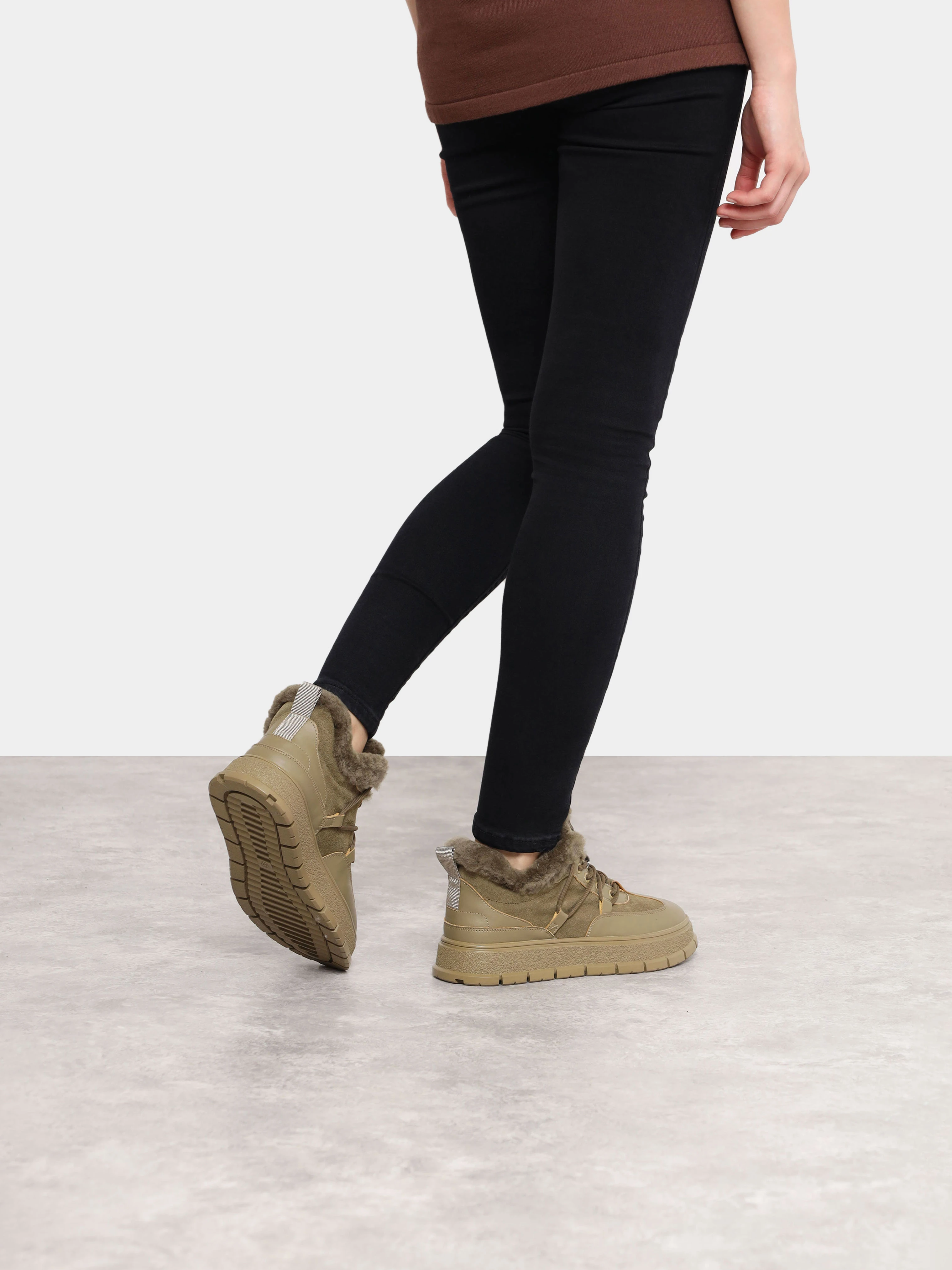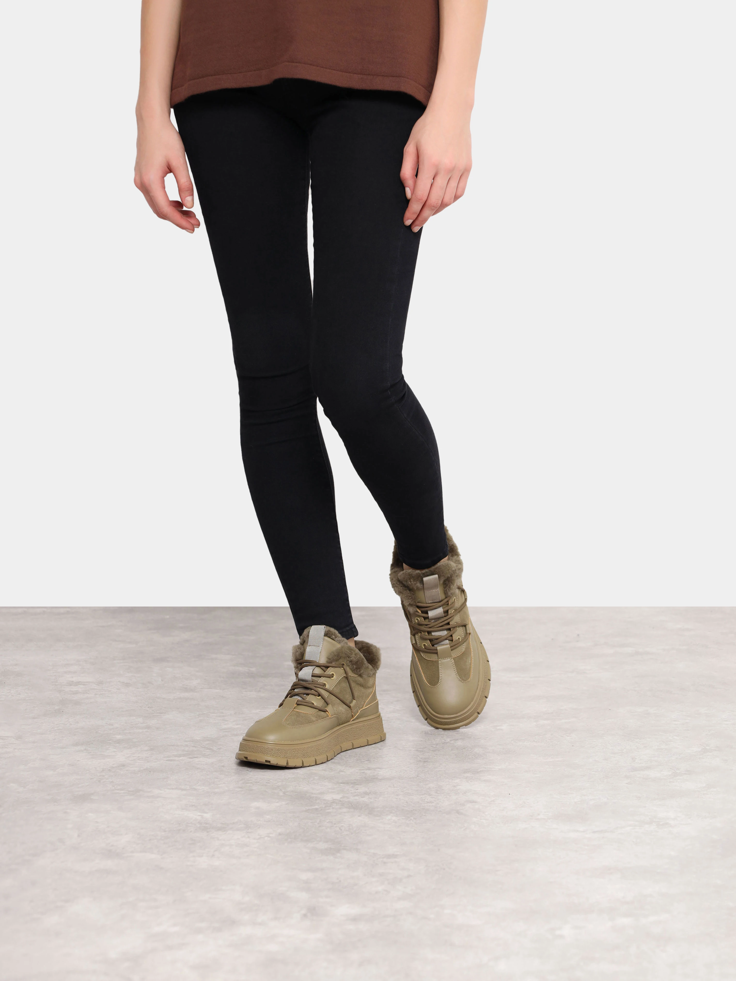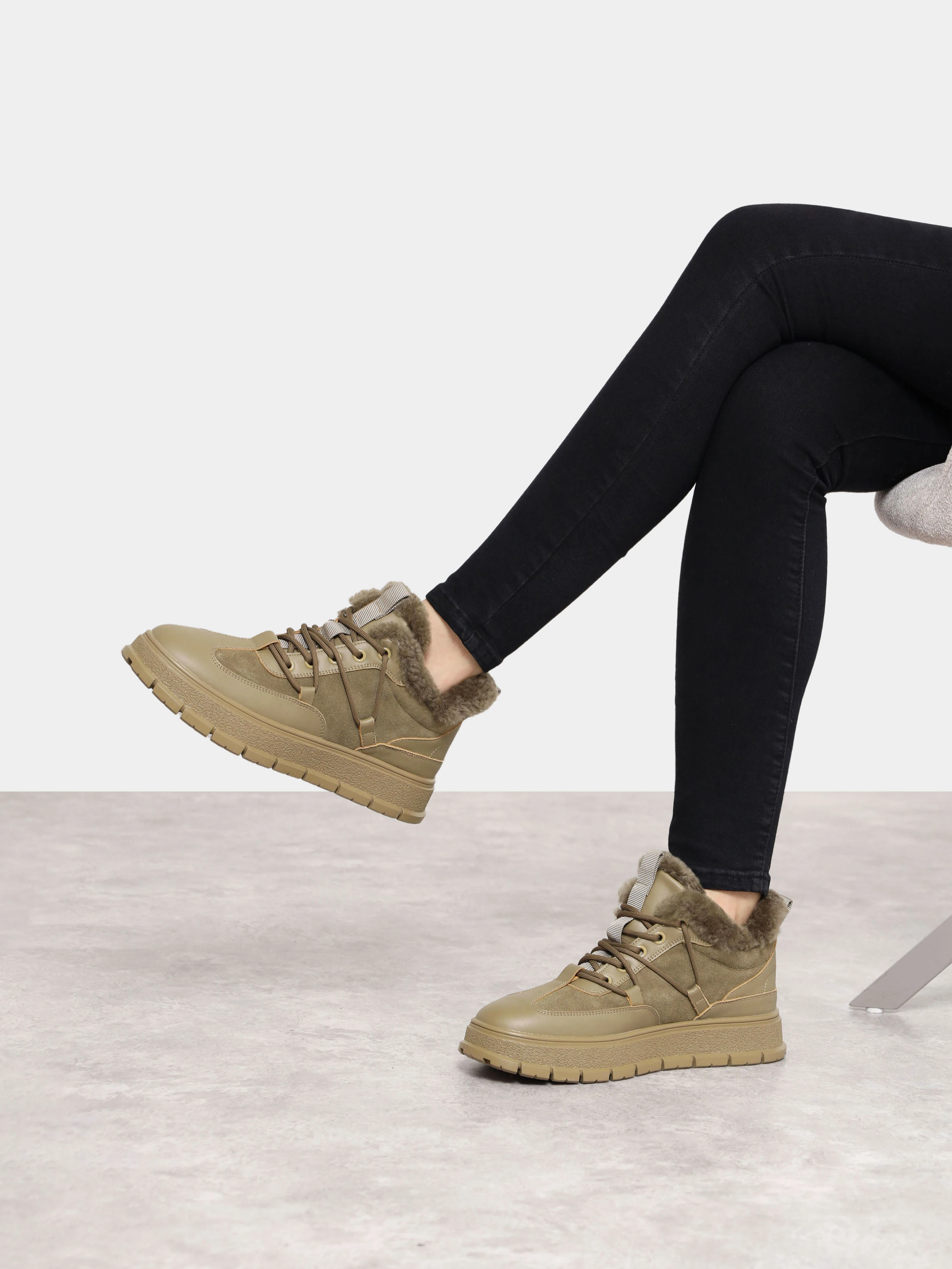 Кеды женские зимние, цвет хаки, натуральная кожа и полимерные материалы/натуральный спилок