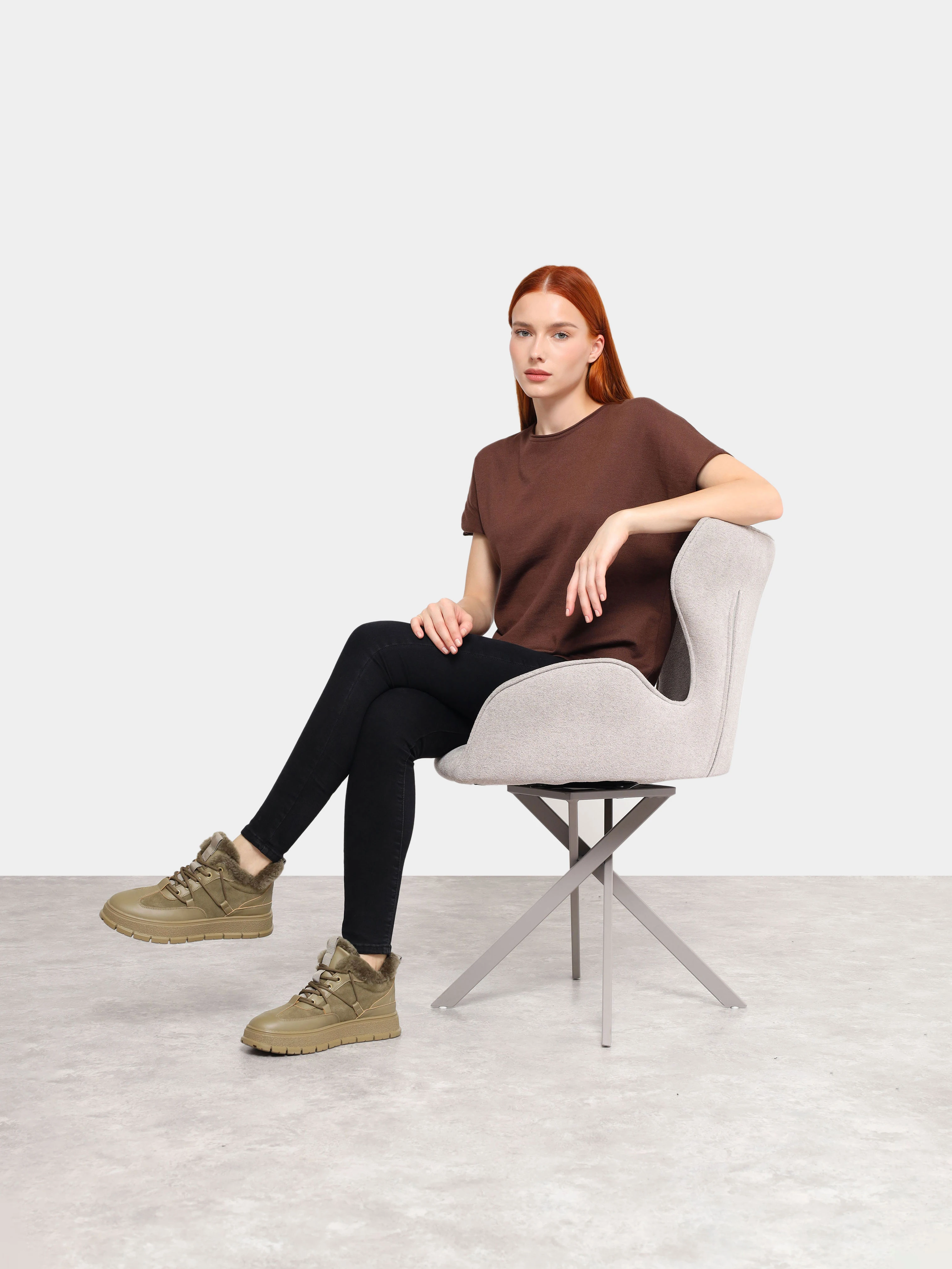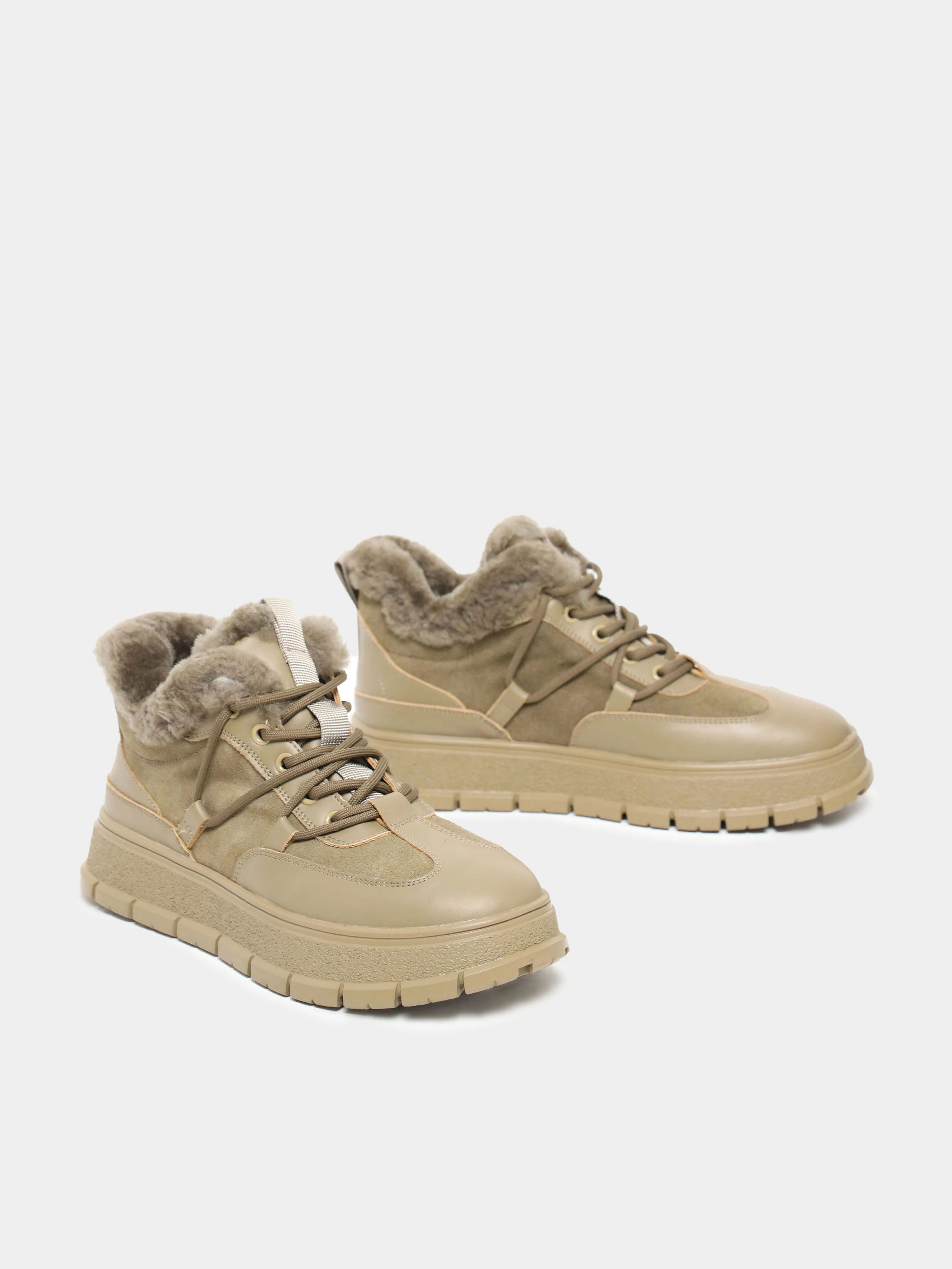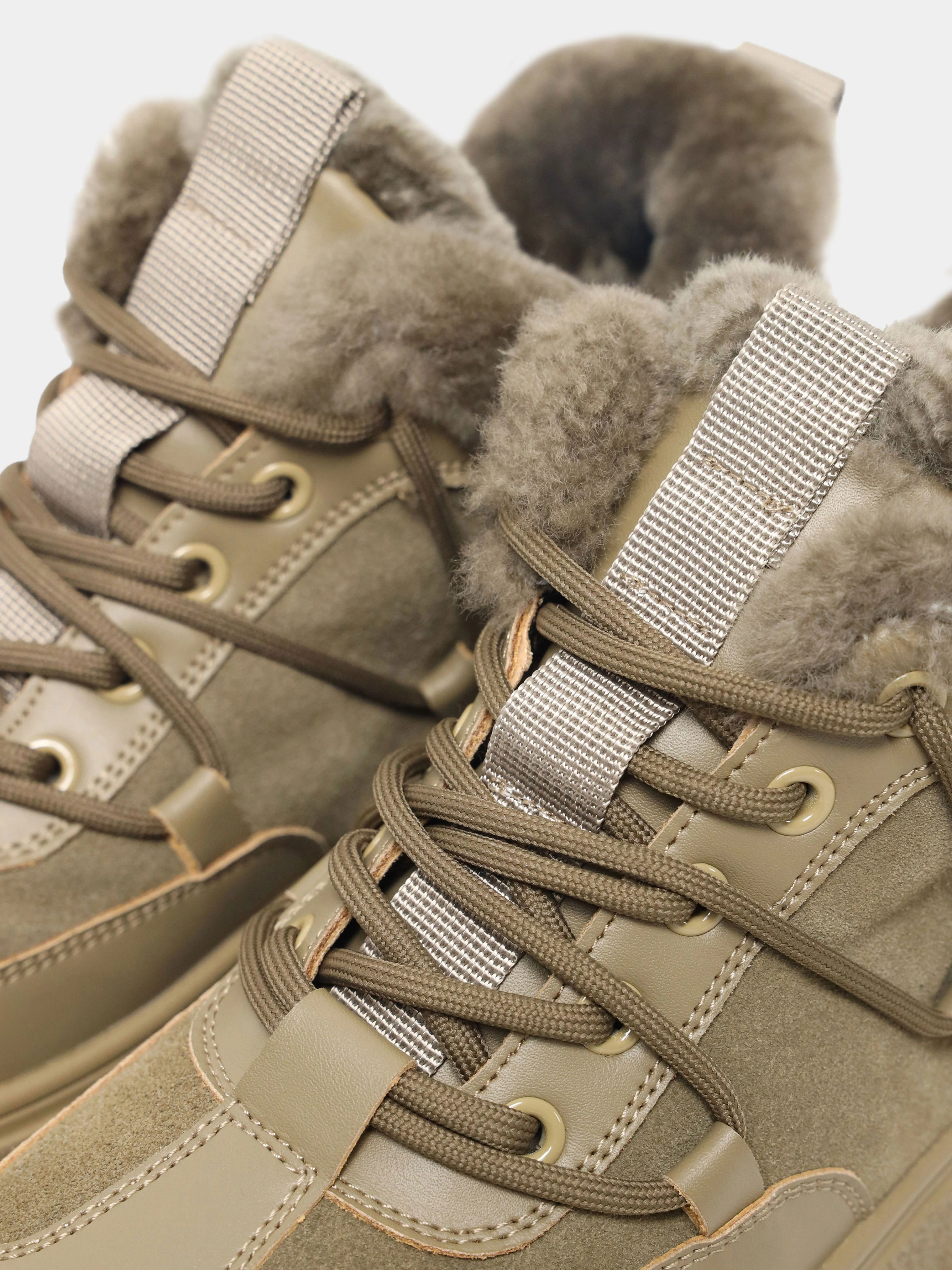 Кеды женские зимние, цвет хаки, натуральная кожа и полимерные материалы/натуральный спилок