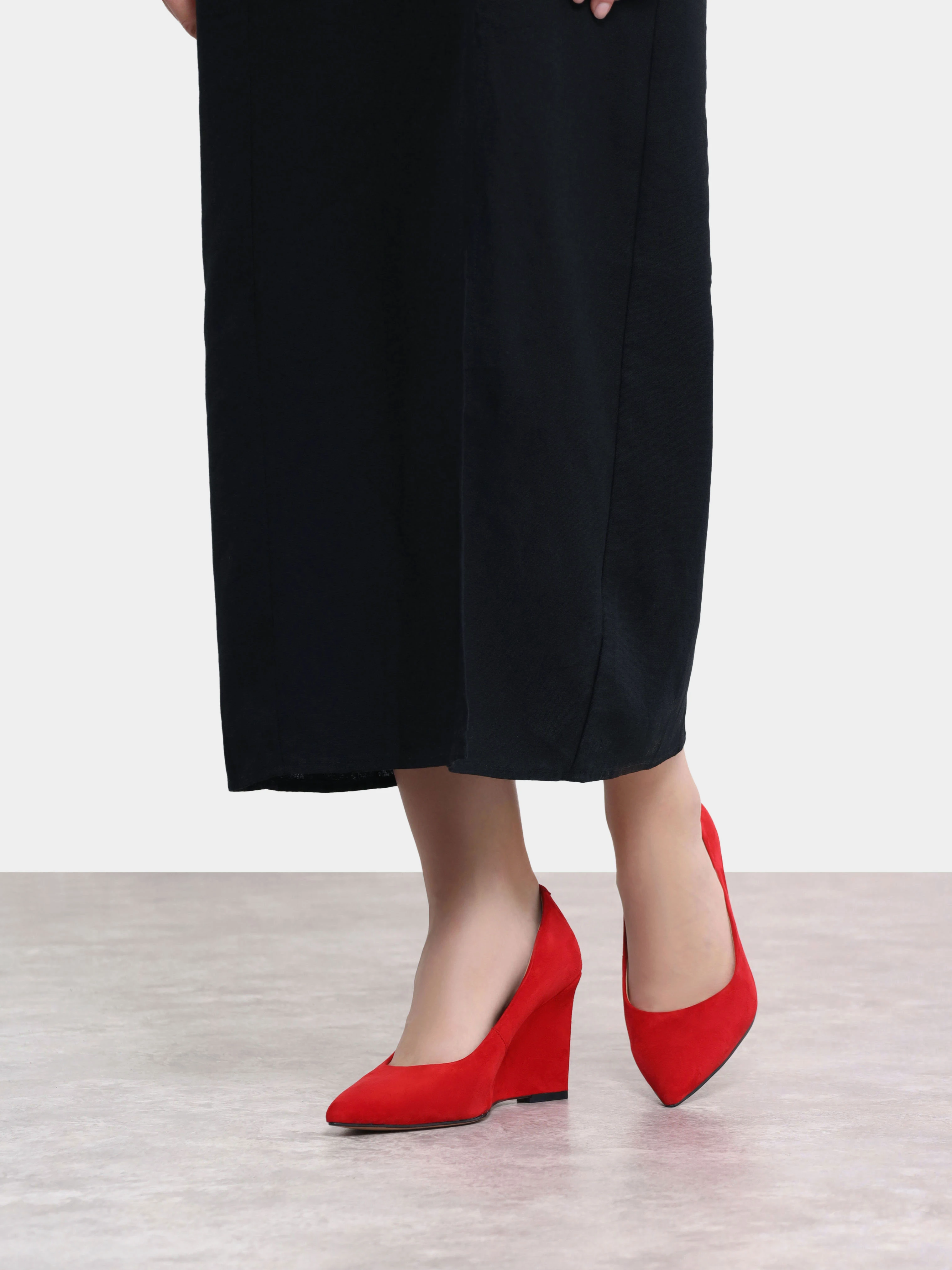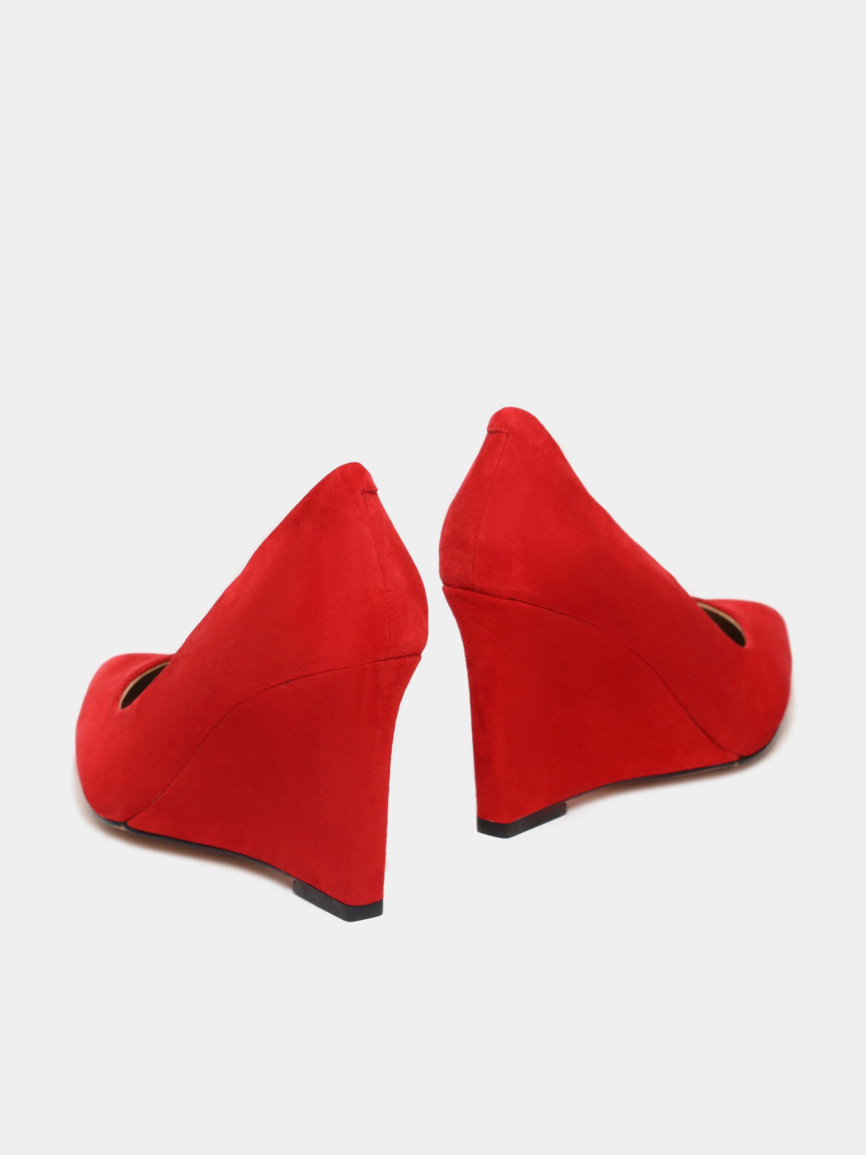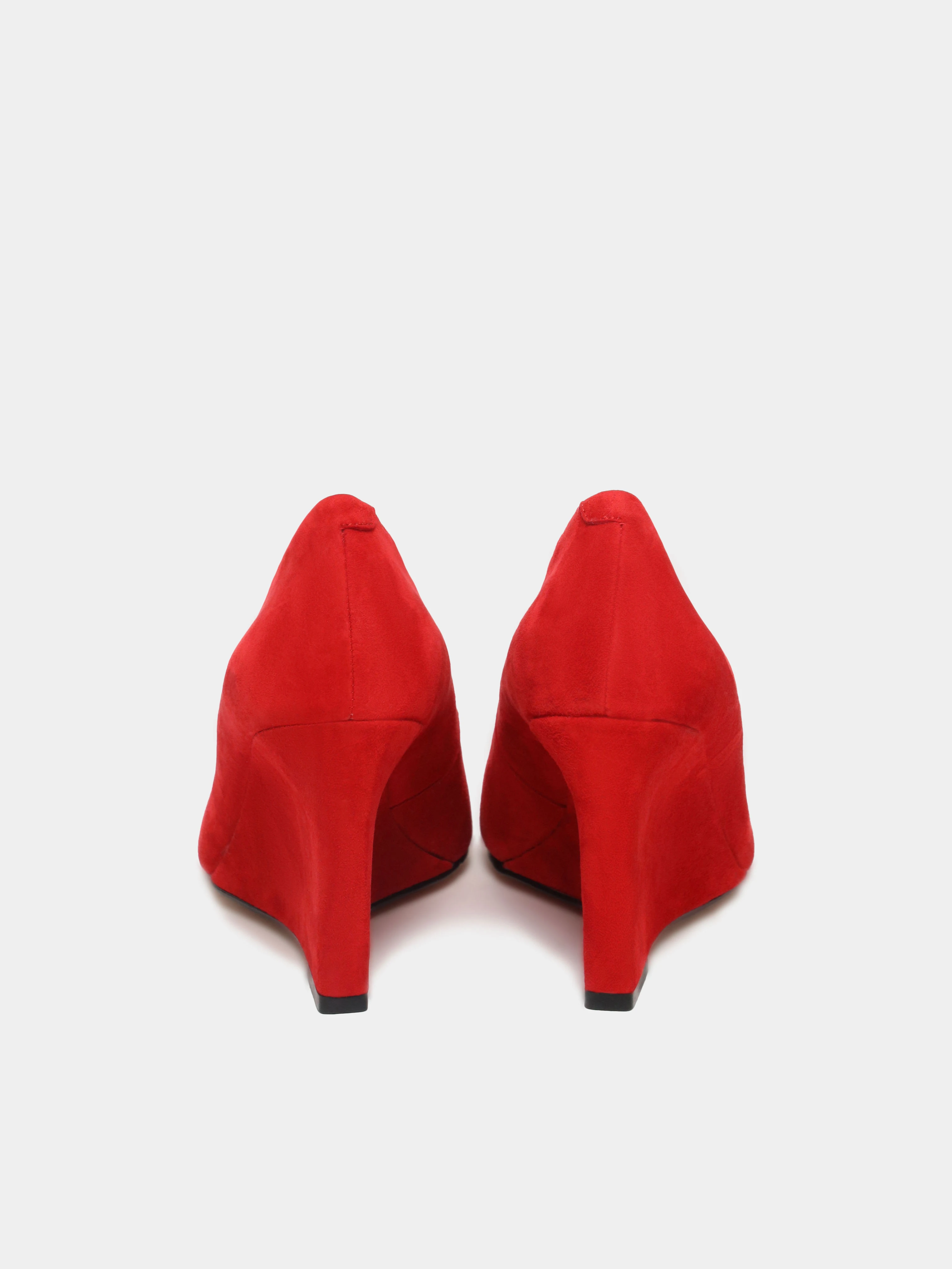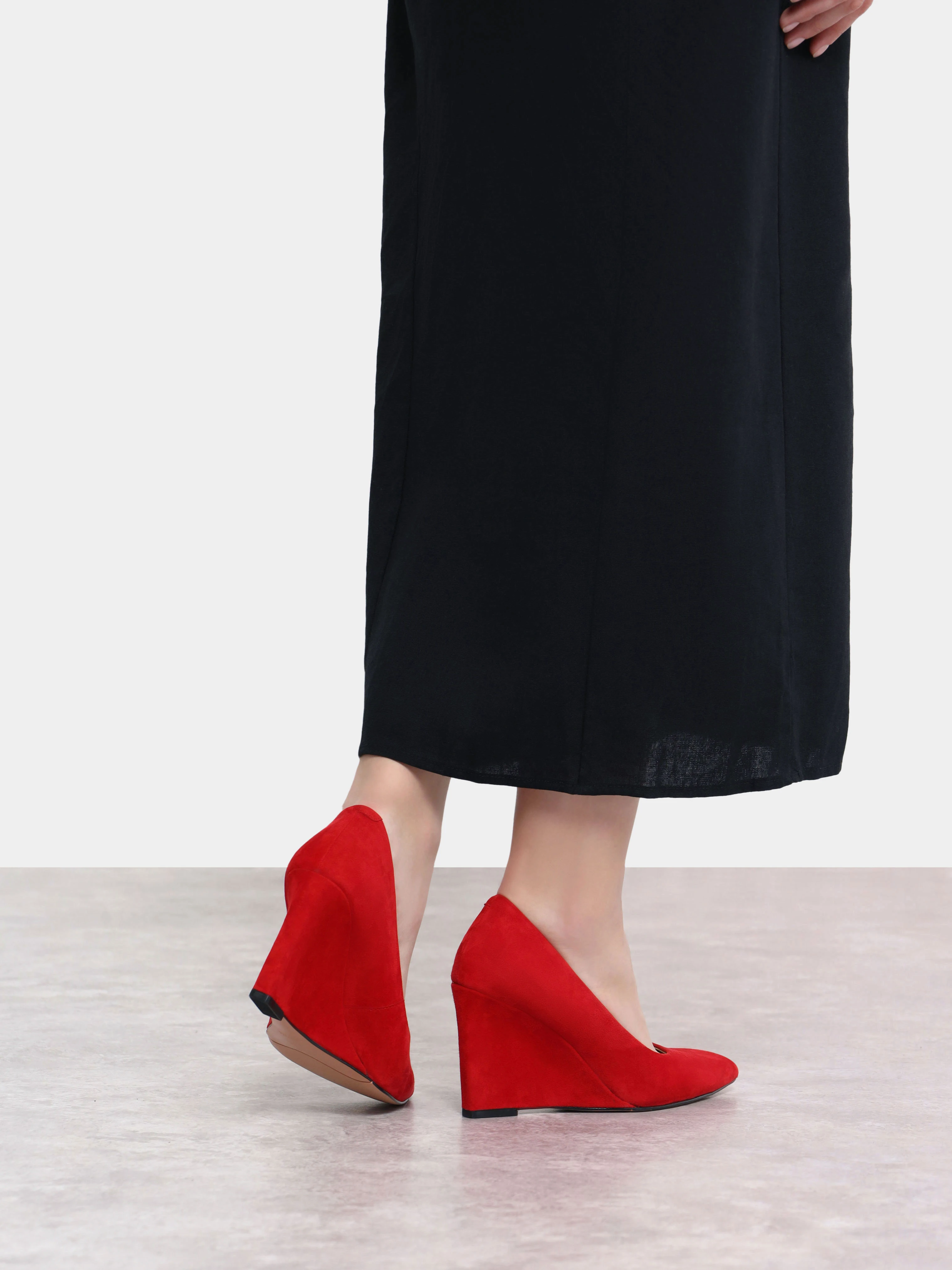 Туфли-лодочки из натурального велюра снаружи и со стелькой из натуральной кожи внутри. Особенности модели: острый носок, танкетка.