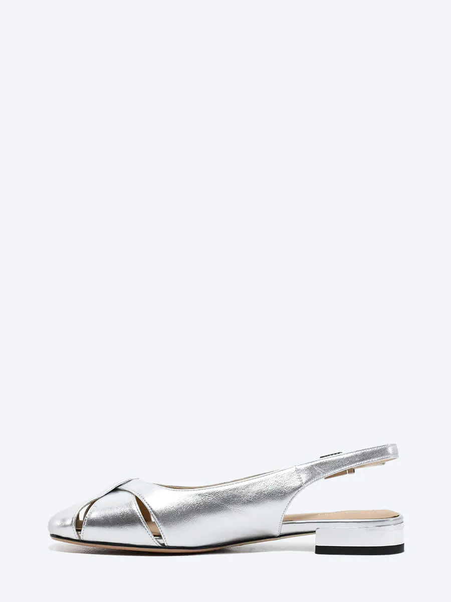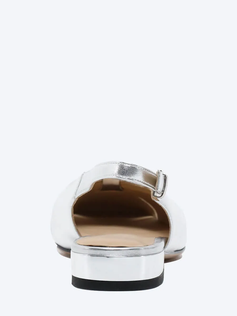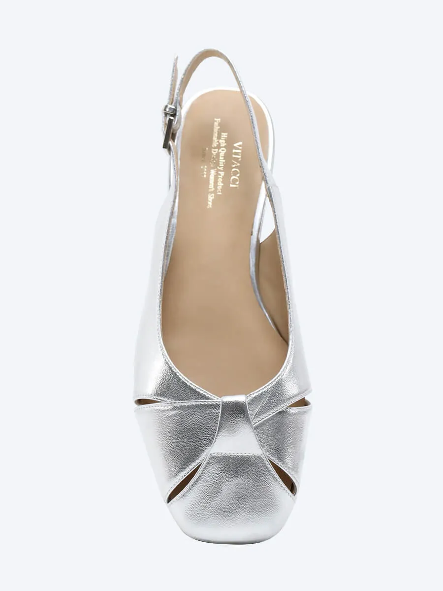 Туфли на плоском низком каблуке и открытой пяткой. Модель подойдет и для свадебного торжества, и для классического элегантного образа тем, кто предпочитает обувь без высокого каблука.