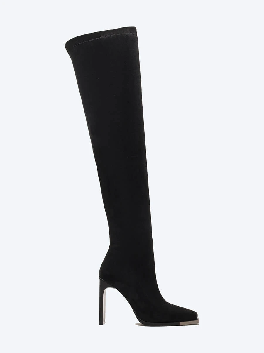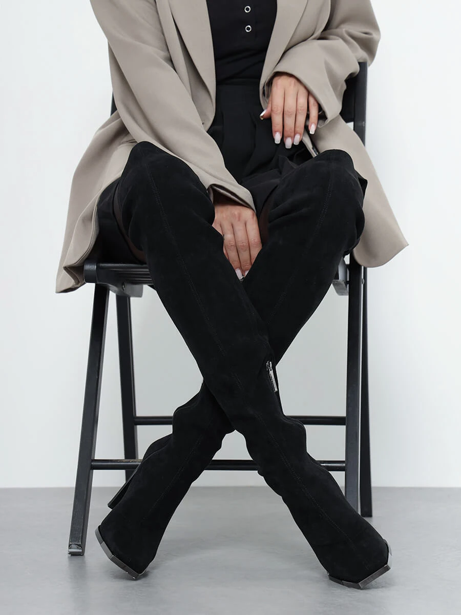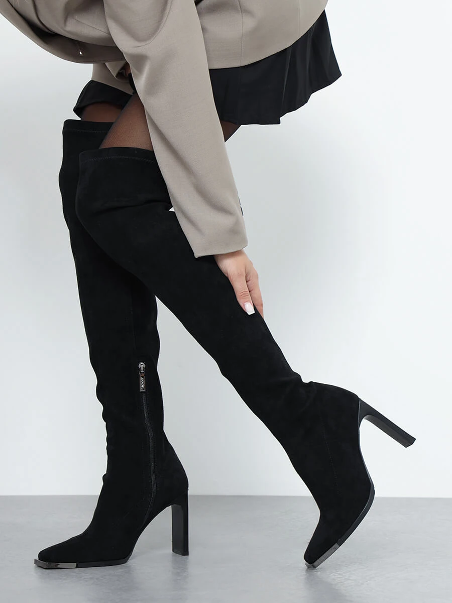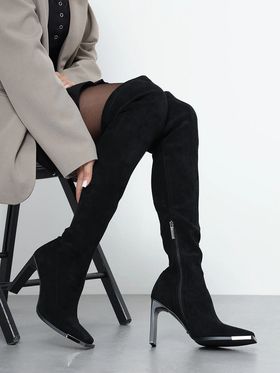 Ботфорты женские демисезонные, цвет черный, искусственный велюр