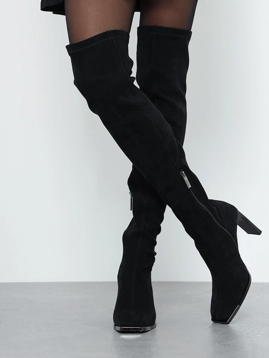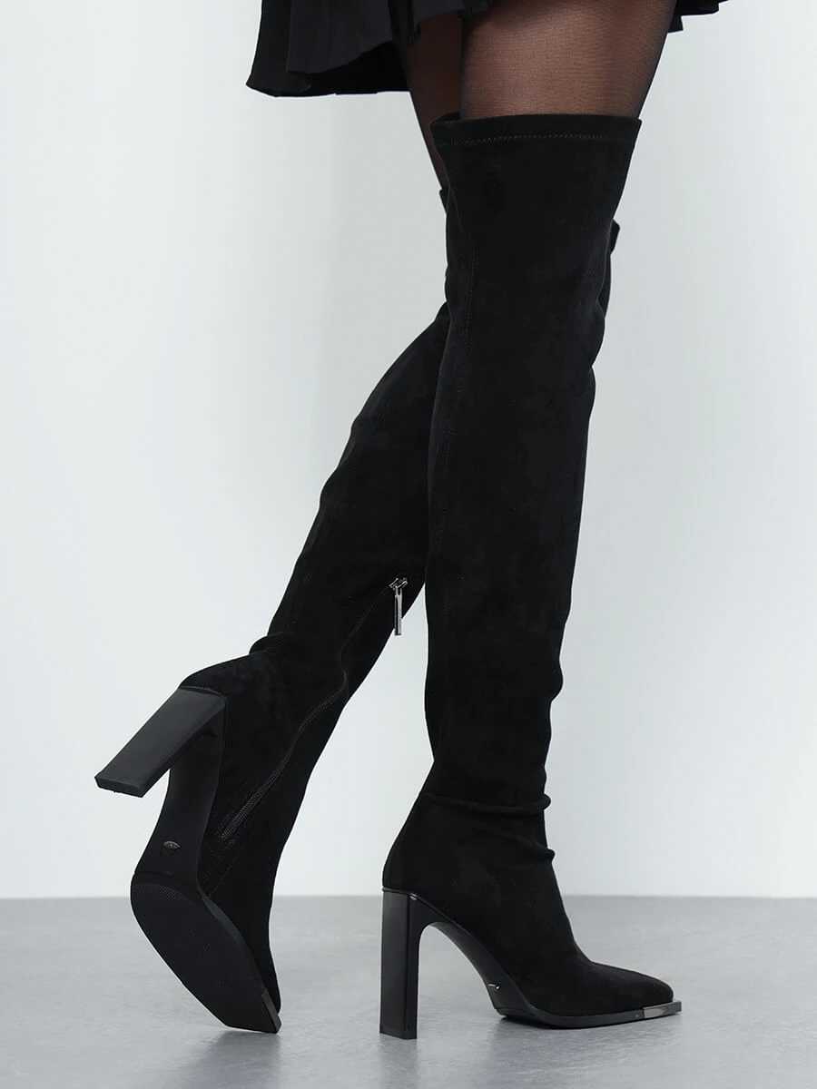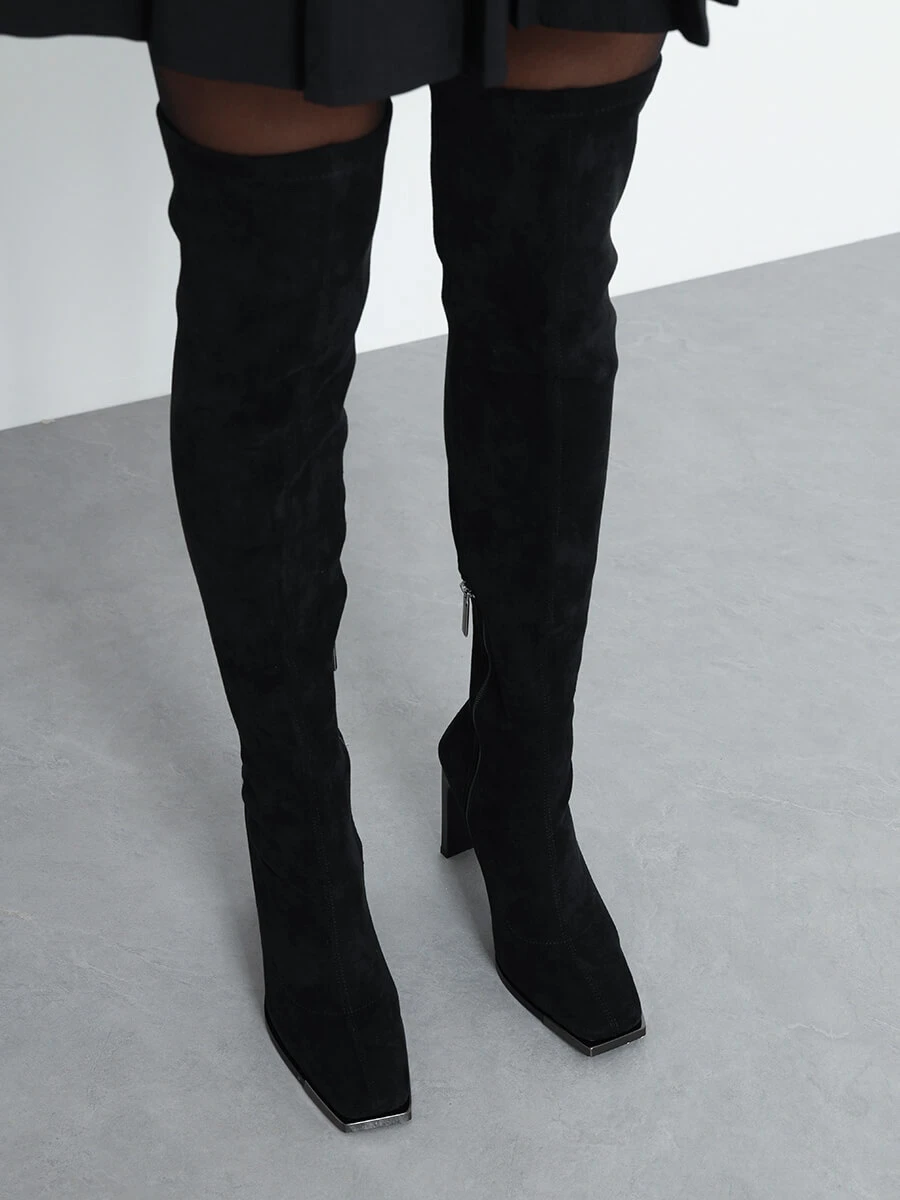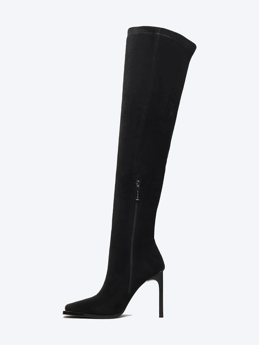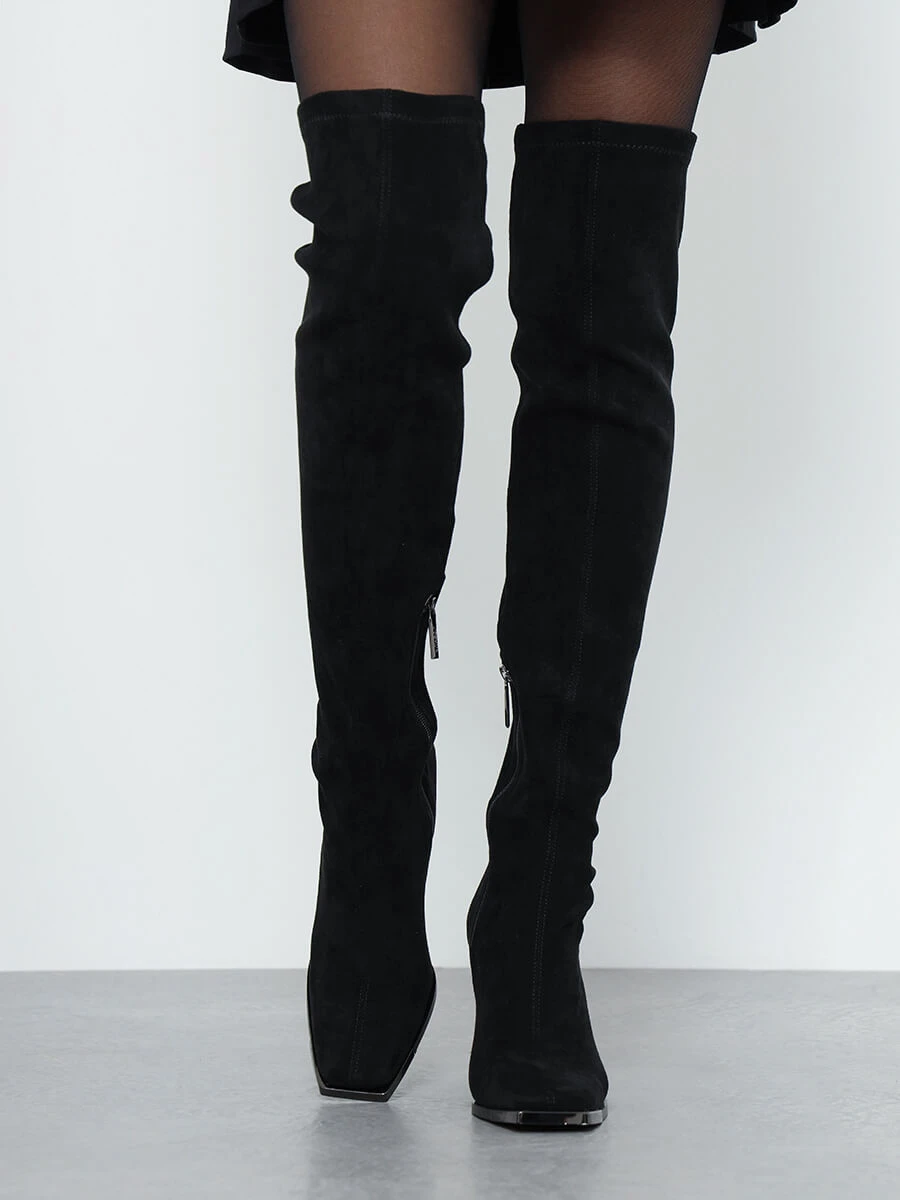 Ботфорты женские демисезонные, цвет черный, искусственный велюр