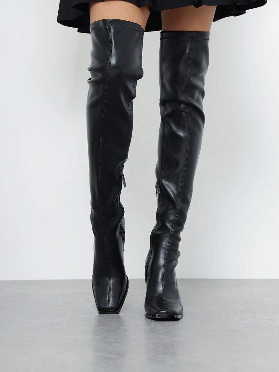 Ботфорты женские демисезонные, цвет черный, искусственная кожа